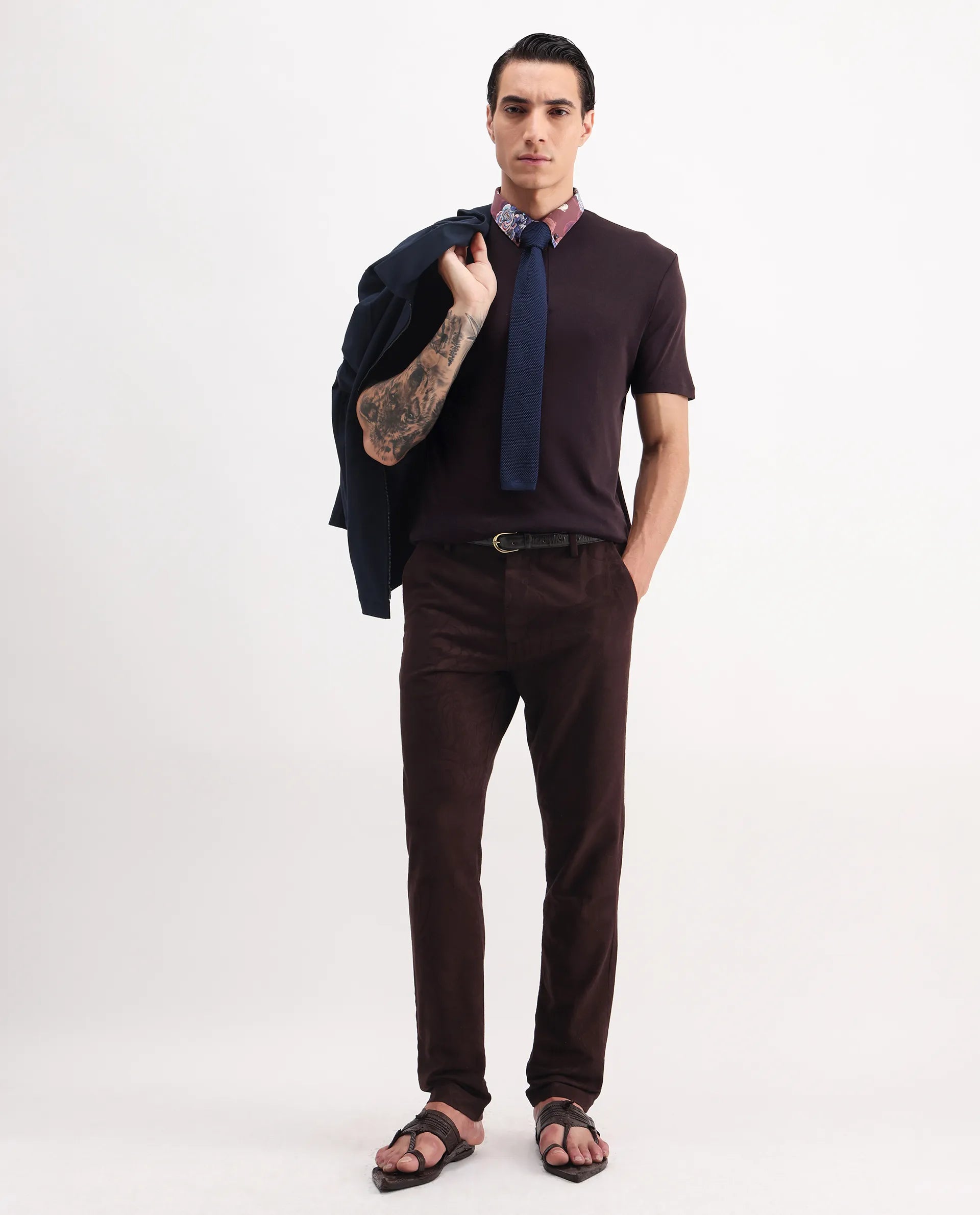 Rare Rabbit Men's Ringer 2 Dark Purple Cotton Printed Regular Fit Half Sleeve Polo