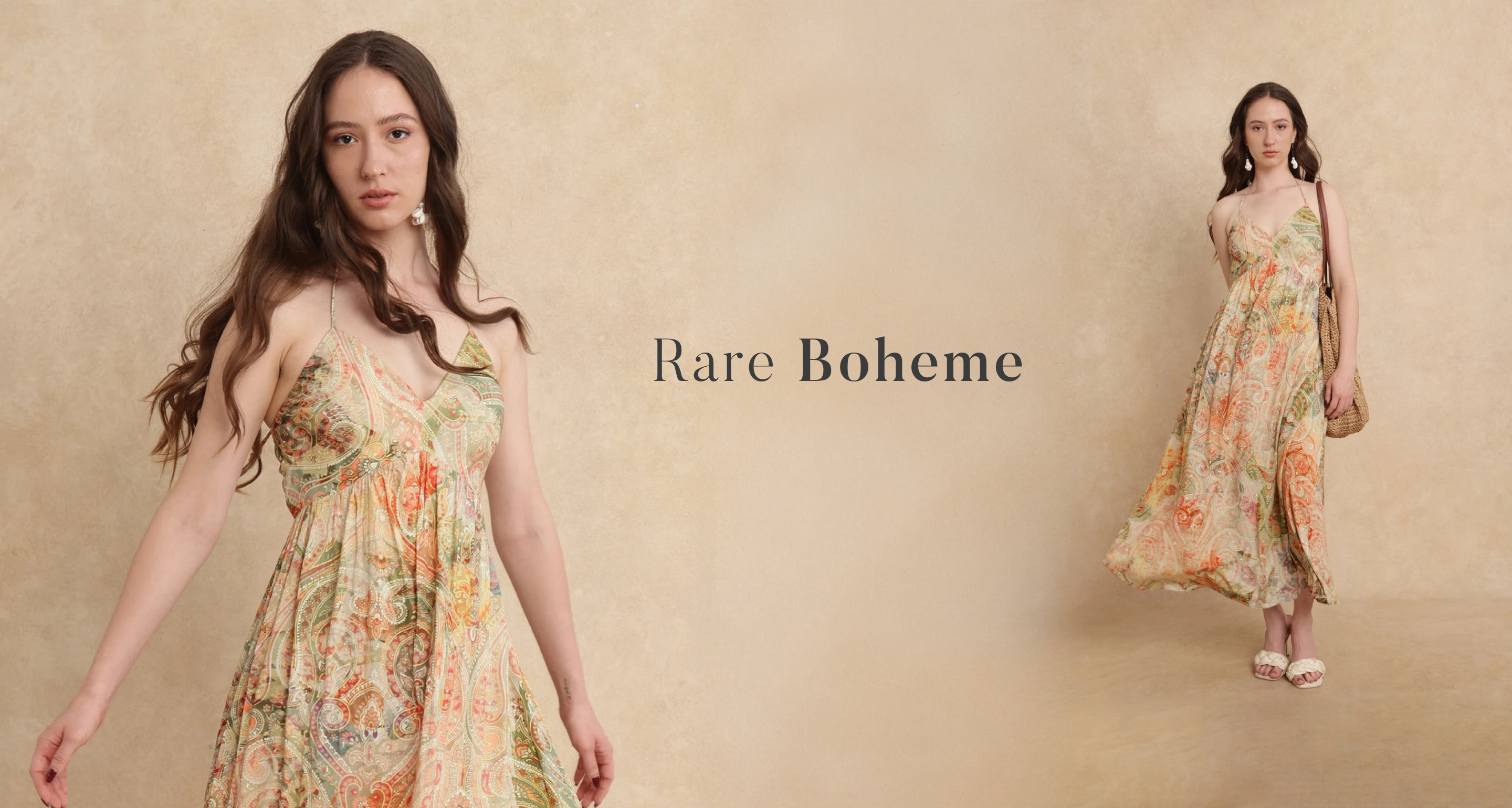 The Bohemian-inspired collection embraces shades of olive and brown, featuring flowy fabrics and earthy, eclectic prints. Effortlessly chic, it captures the free-spirited essence of boho style with a natural, grounded vibe.