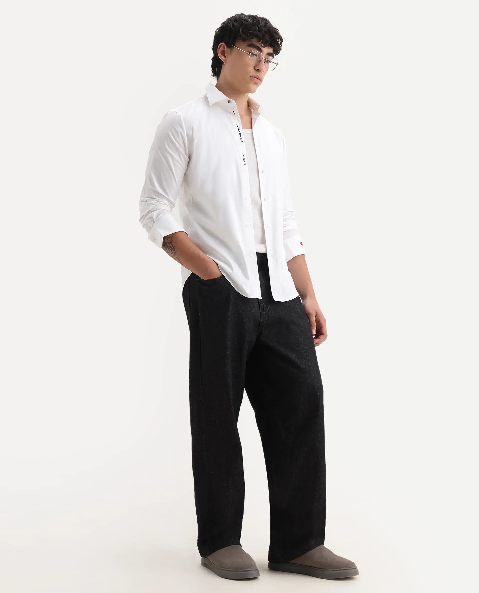 Rare Rabbit Men's I Love U White Cotton Embroidered Regular Fit Full Sleeve Collared Shirt