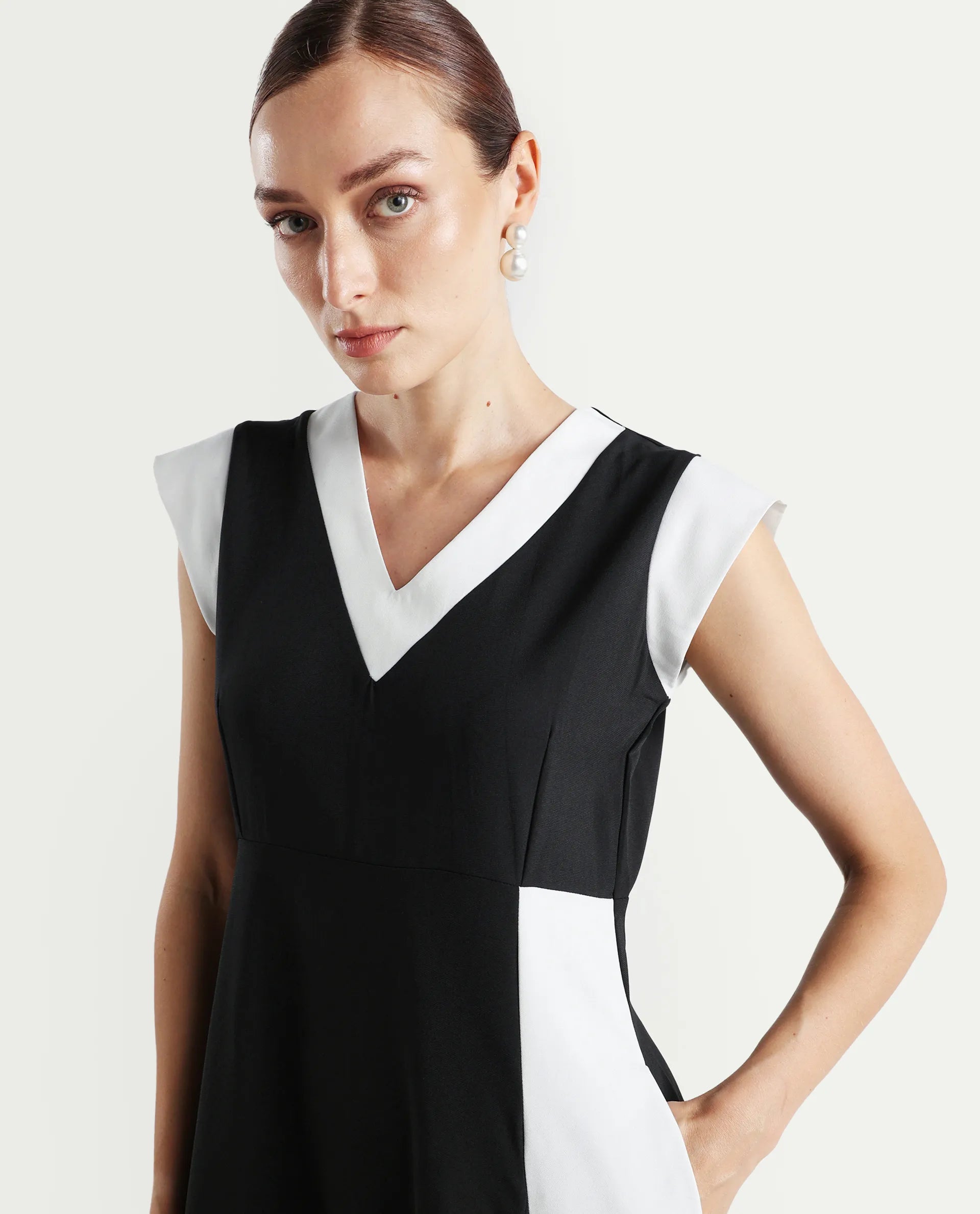 1. This elegant color block dress is designed to make a statement with its modern, chic style.