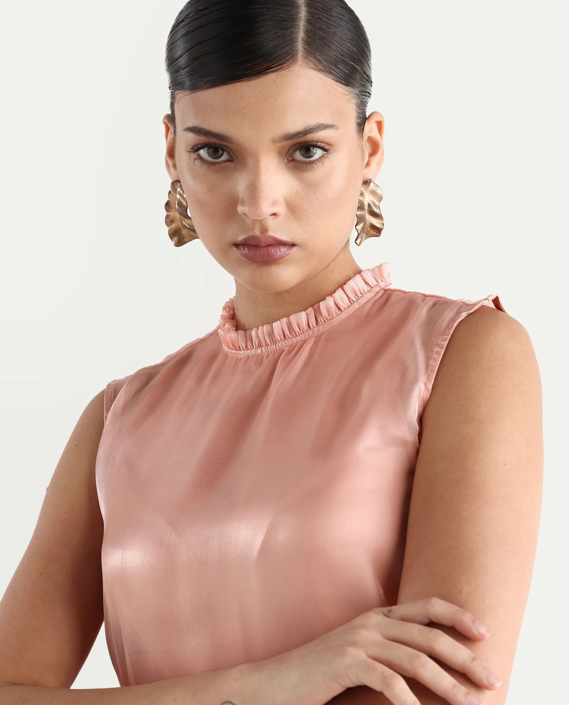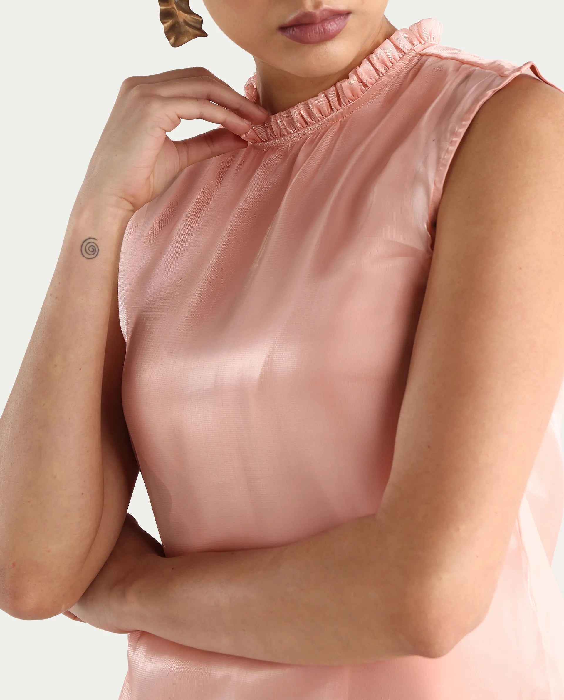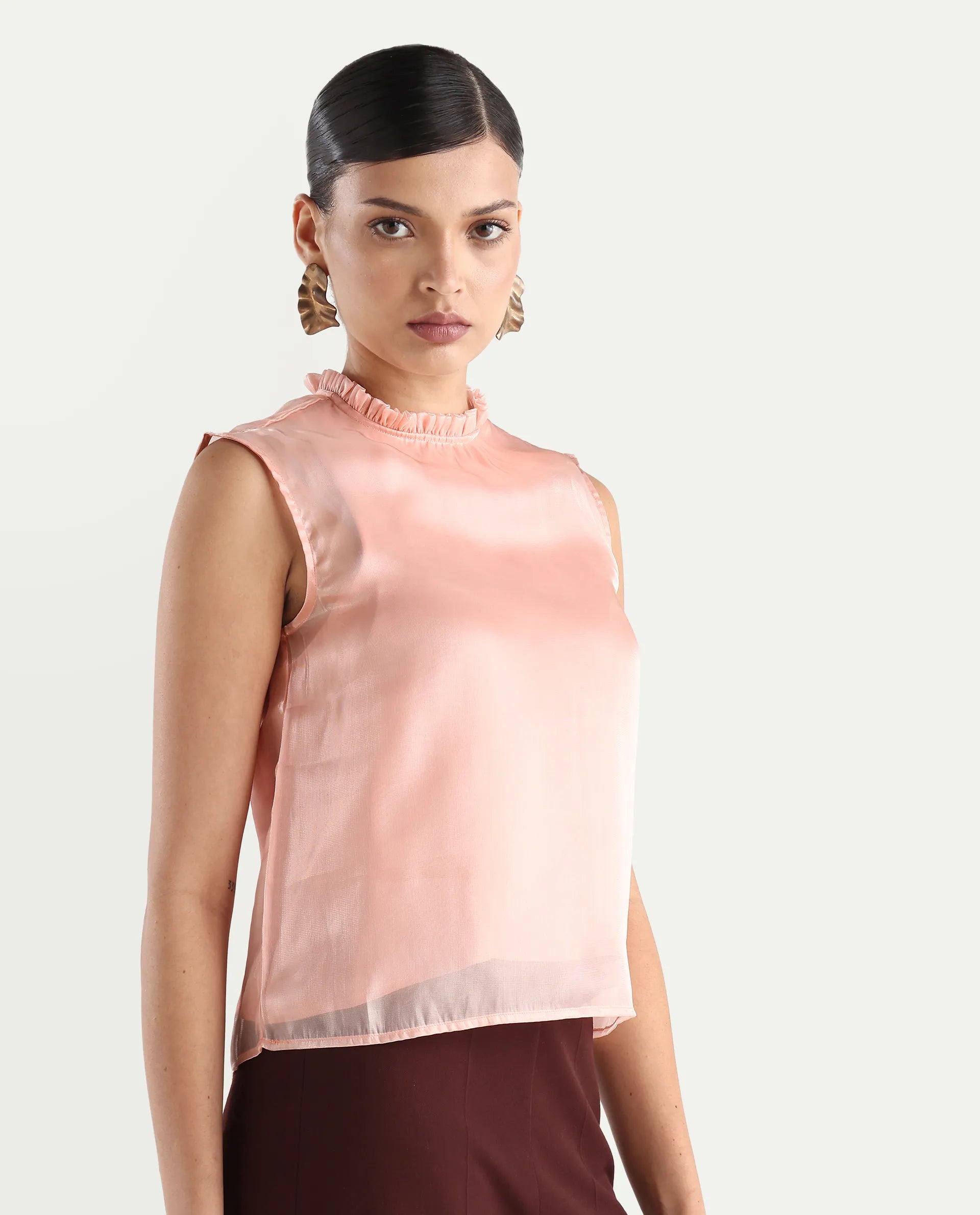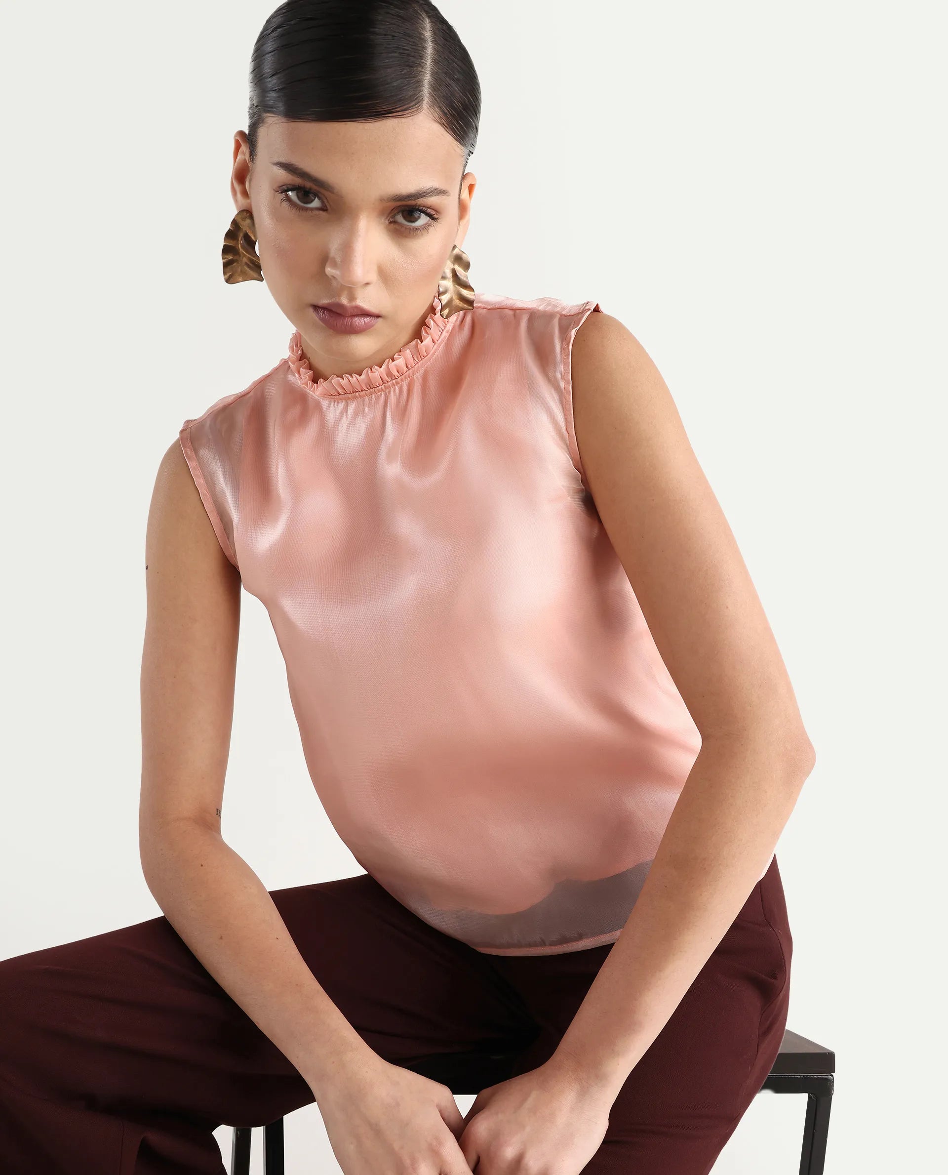 1. Effortlessly chic sleeveless top with a charming ruffle neck design.