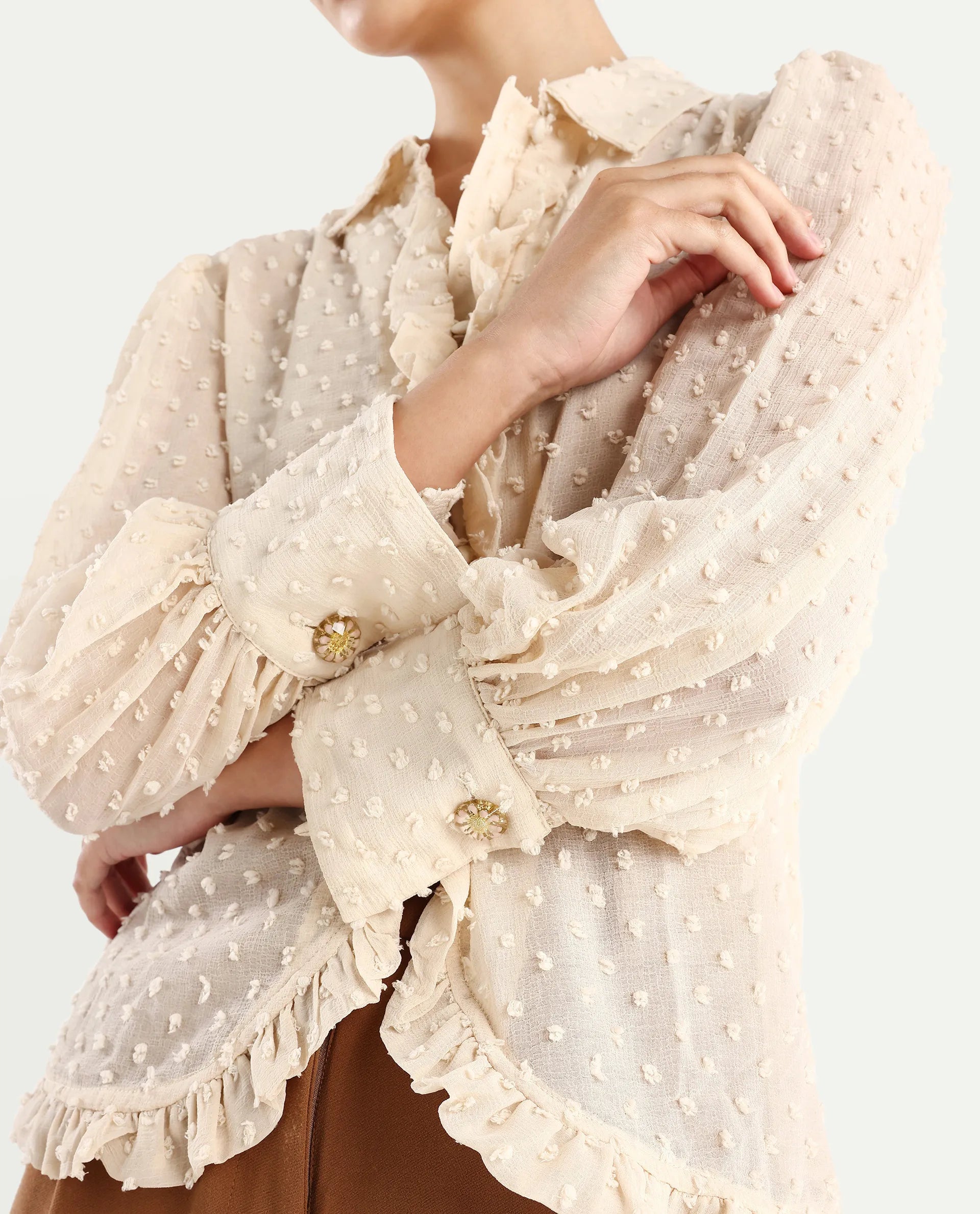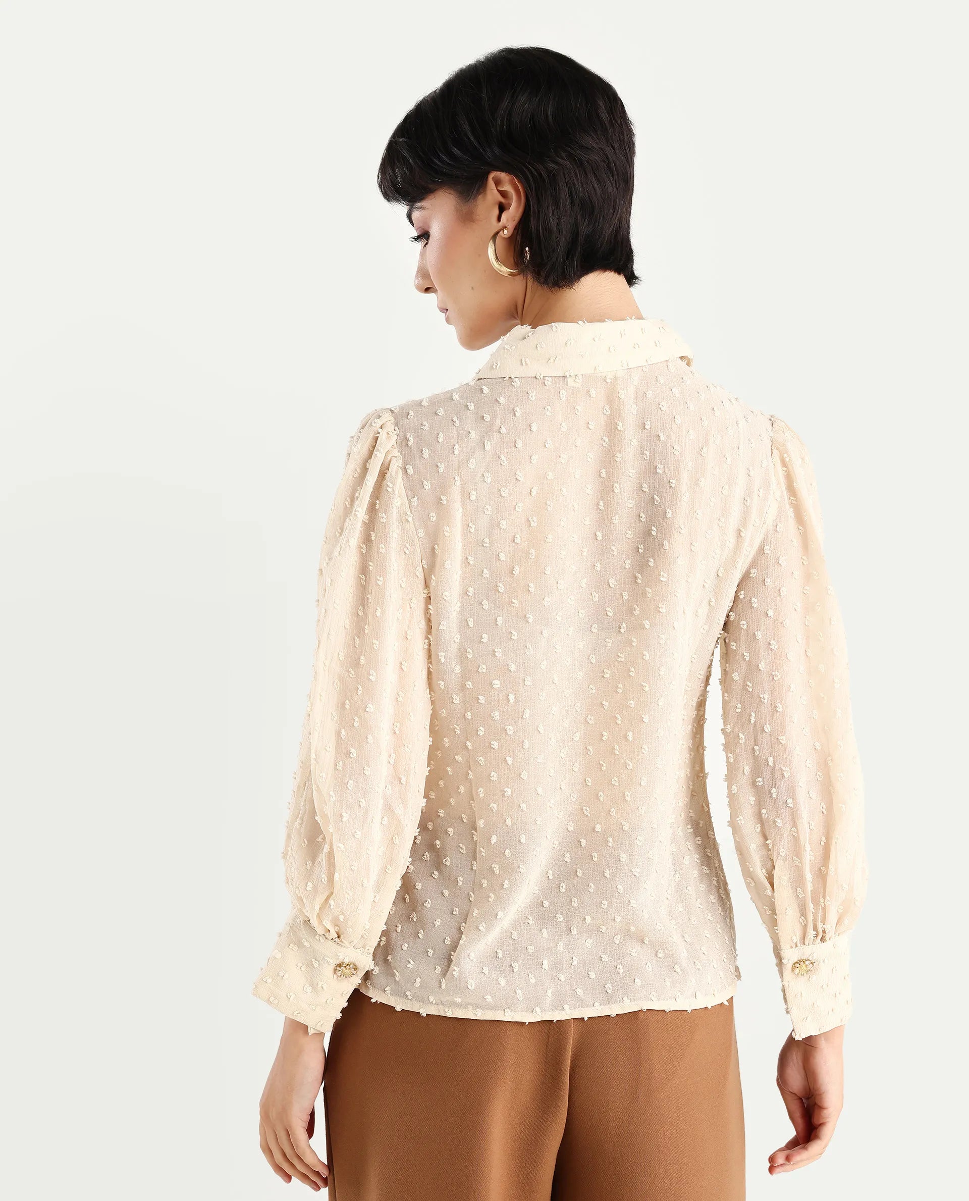1. Textured sheer fabric: Brings a delicate and refined touch to your wardrobe.