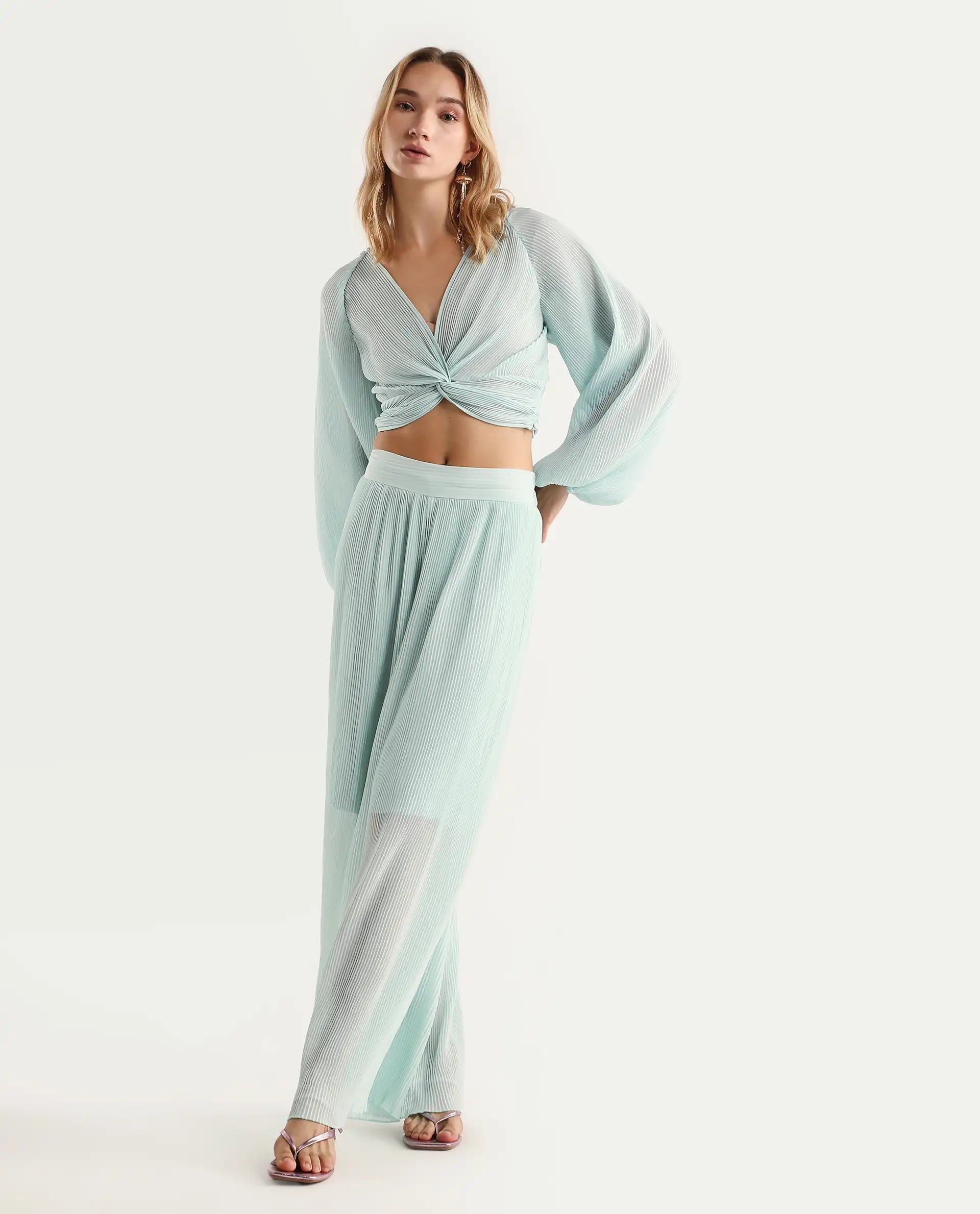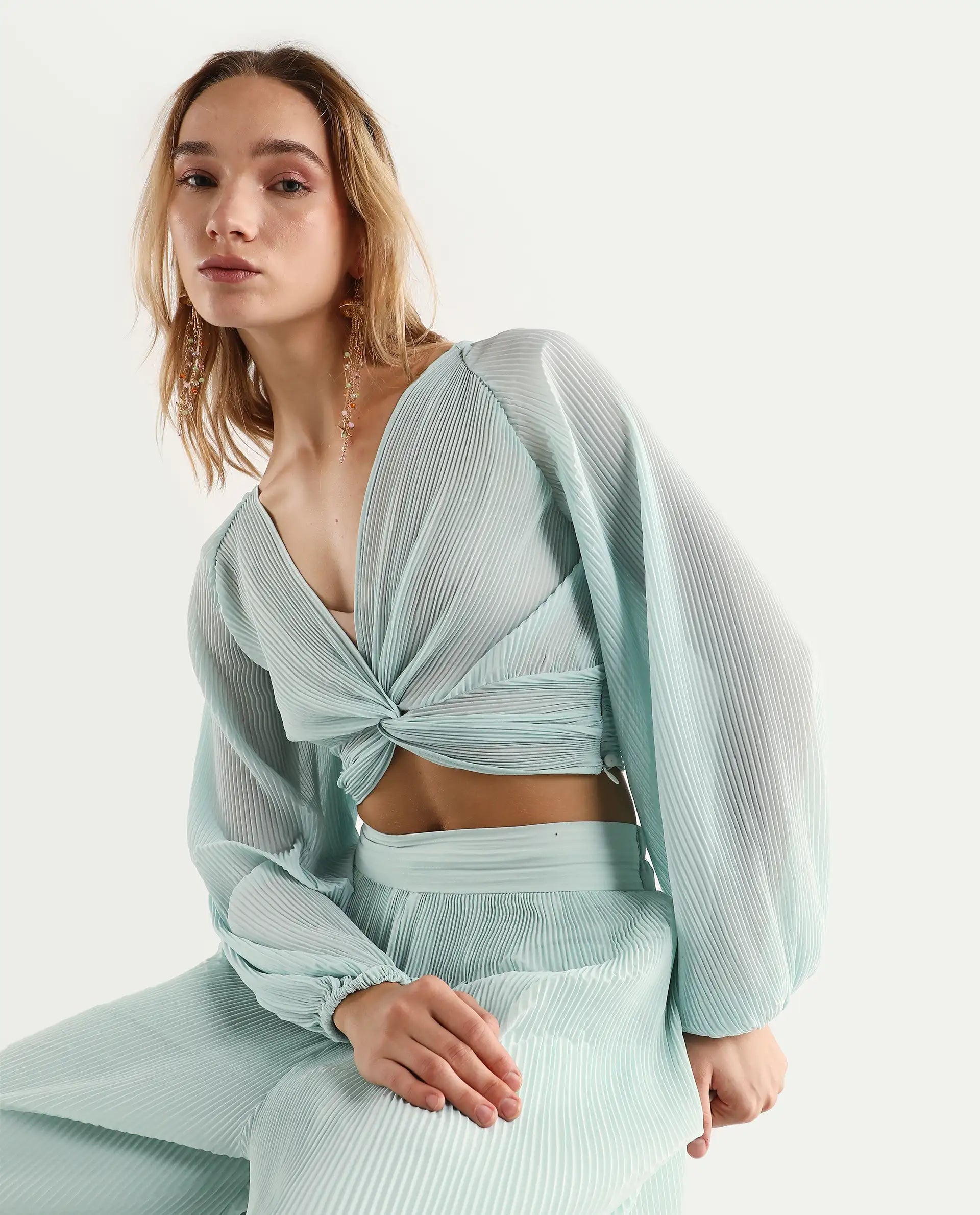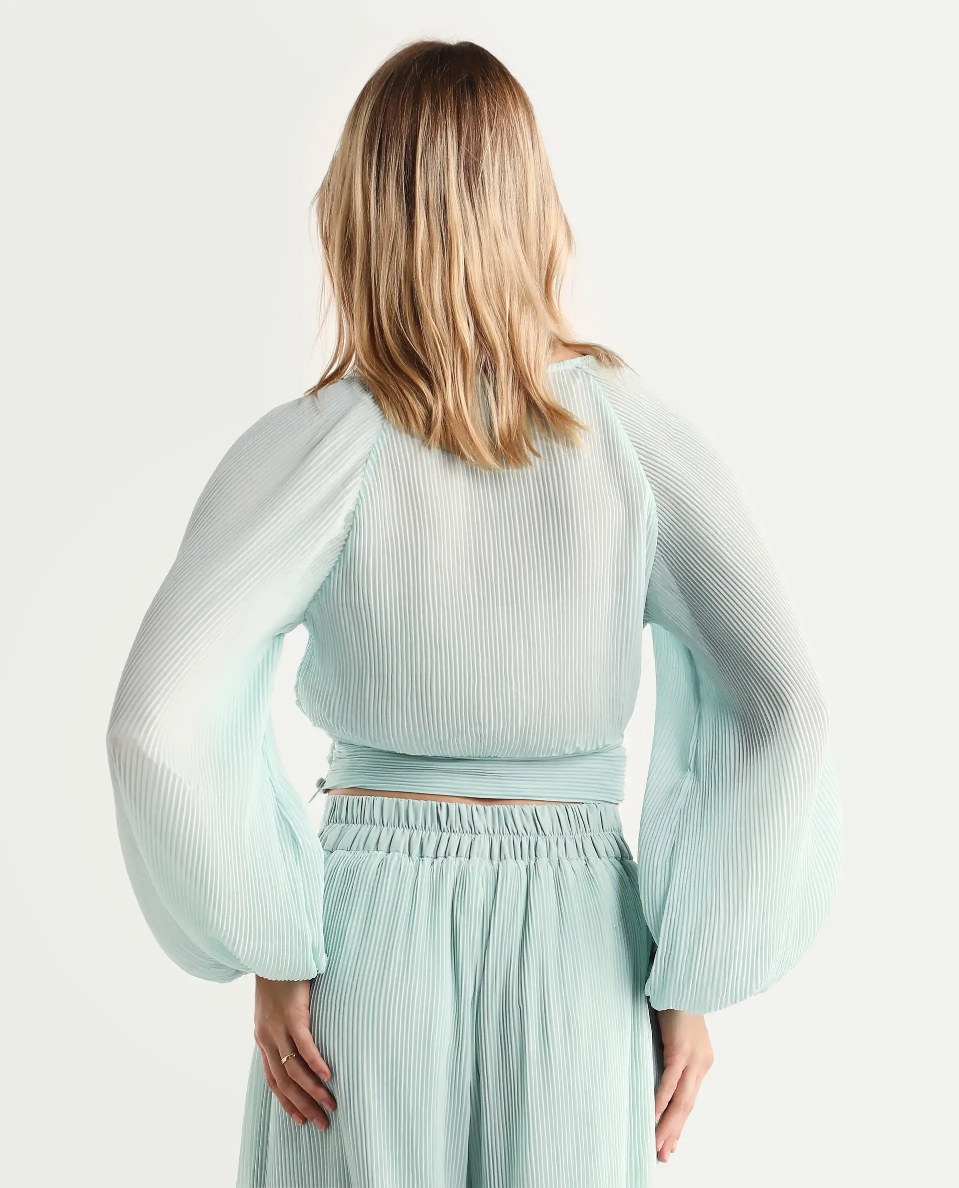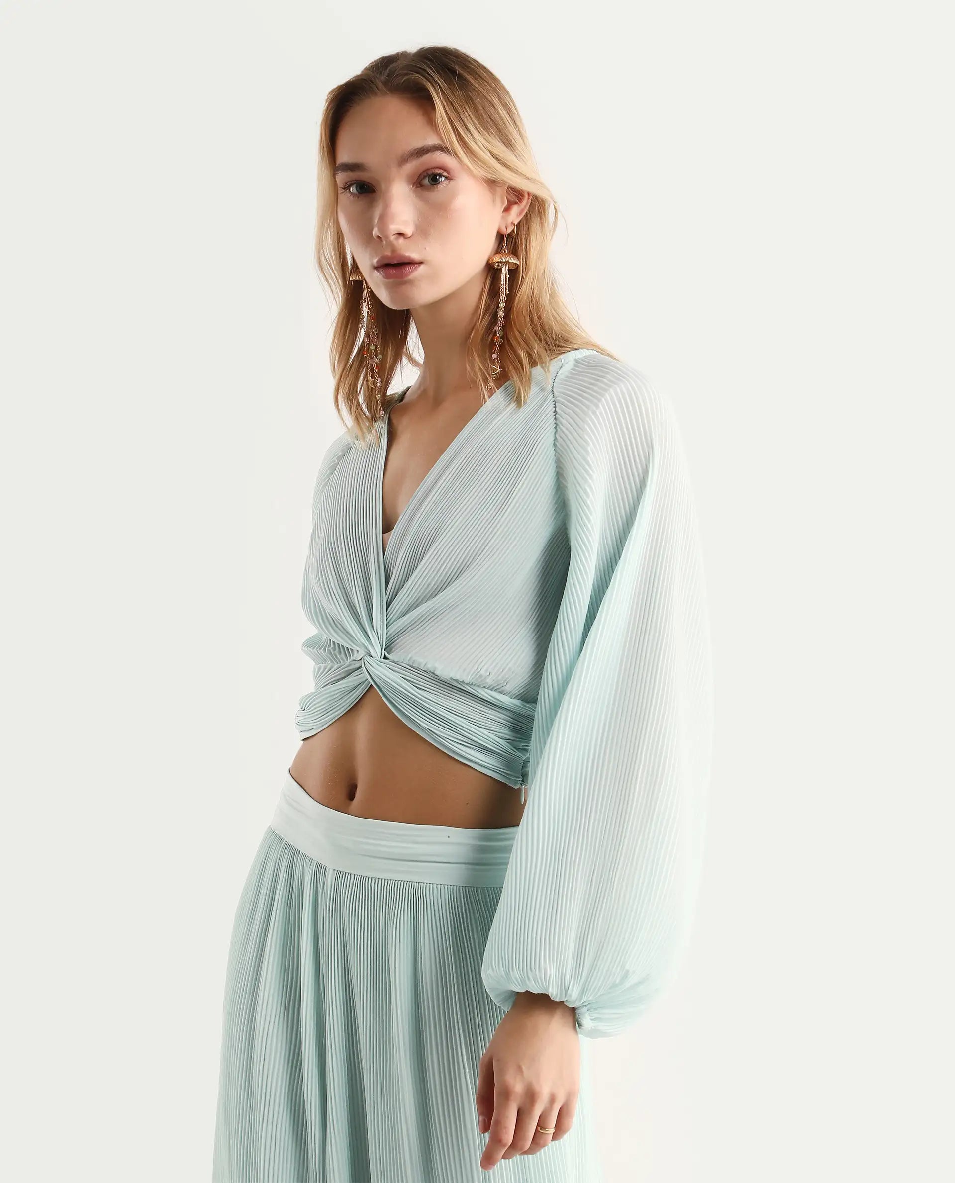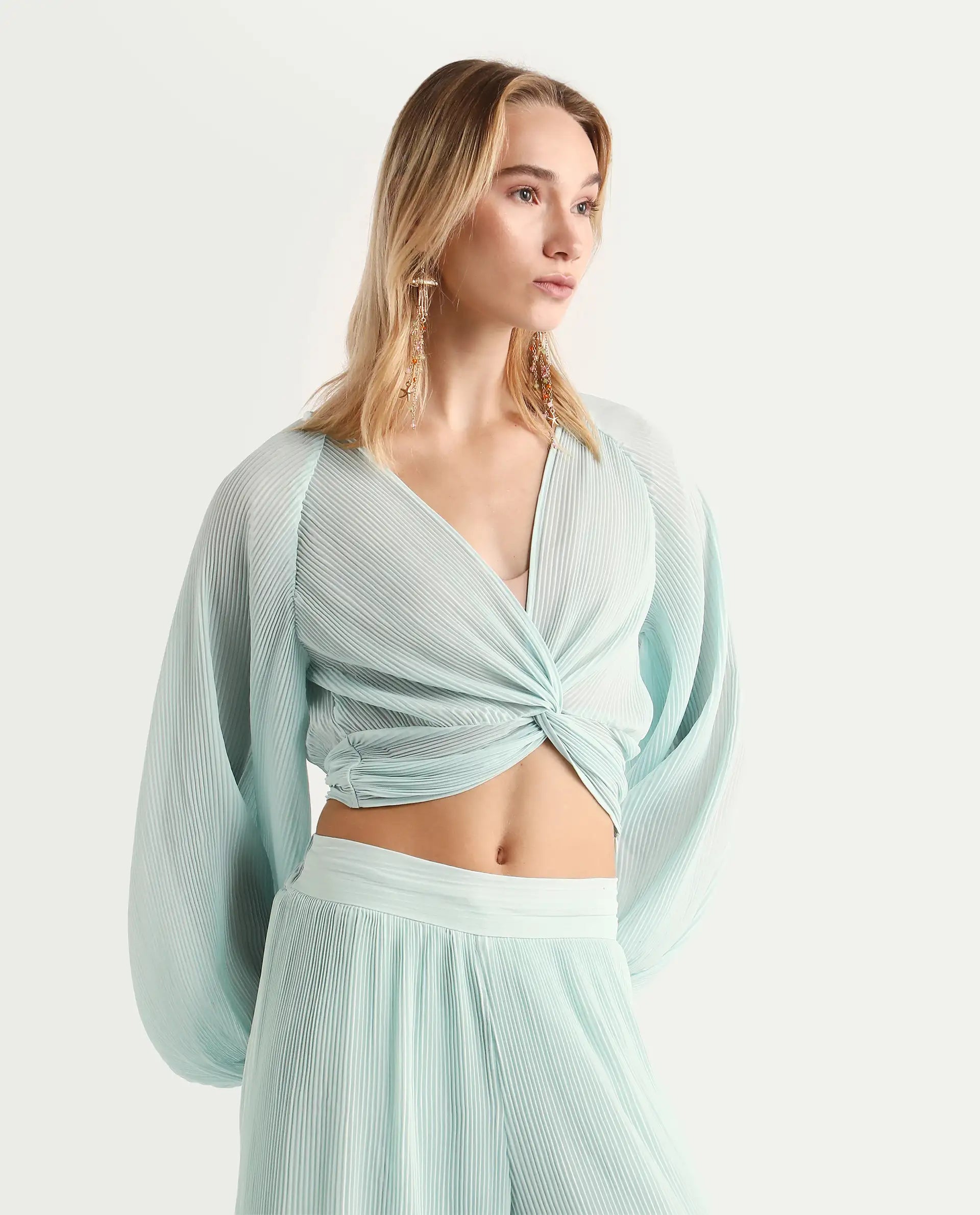 3. Pleated Raglan Sleeves: The raglan sleeves, crafted in pleated fabric, offer a unique and elegant silhouette.