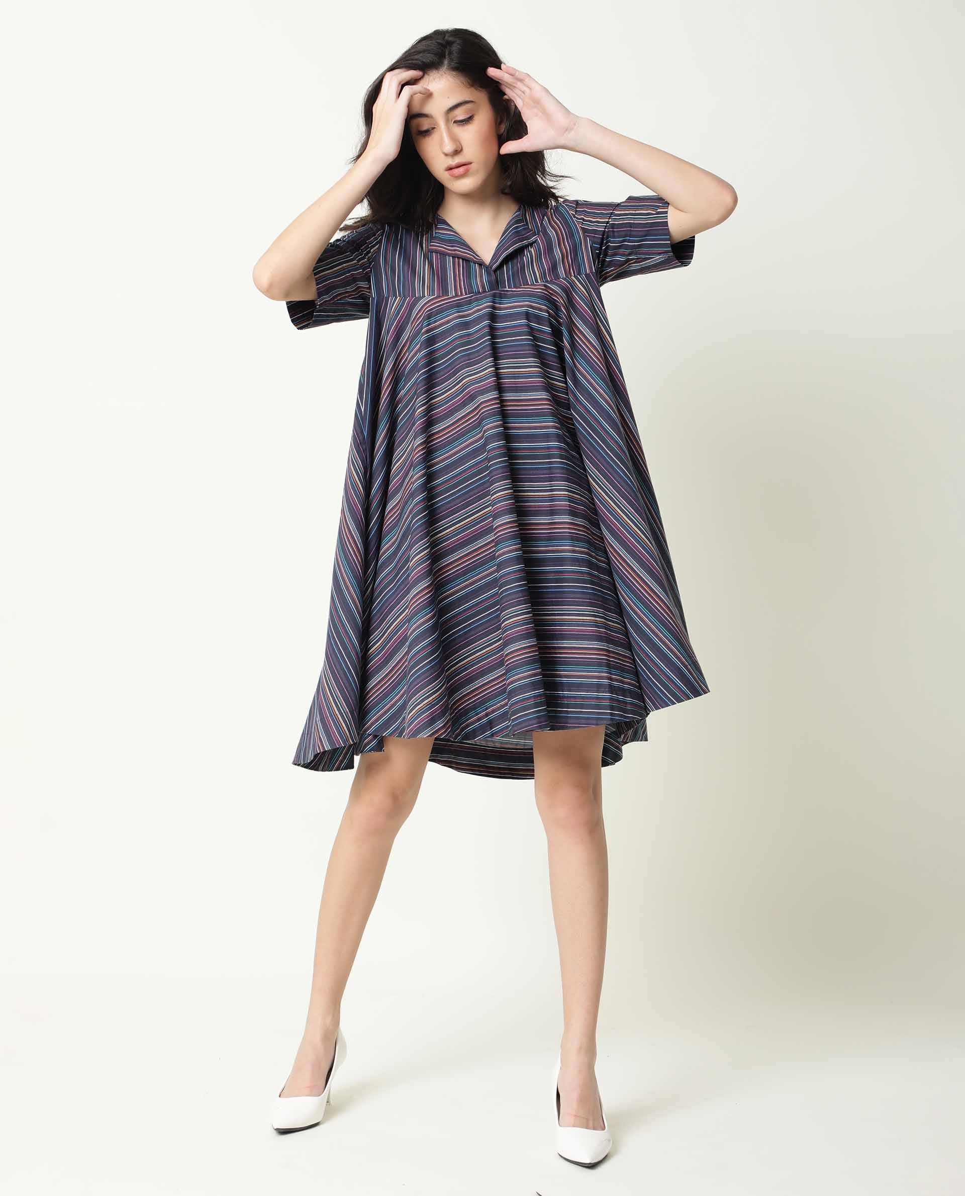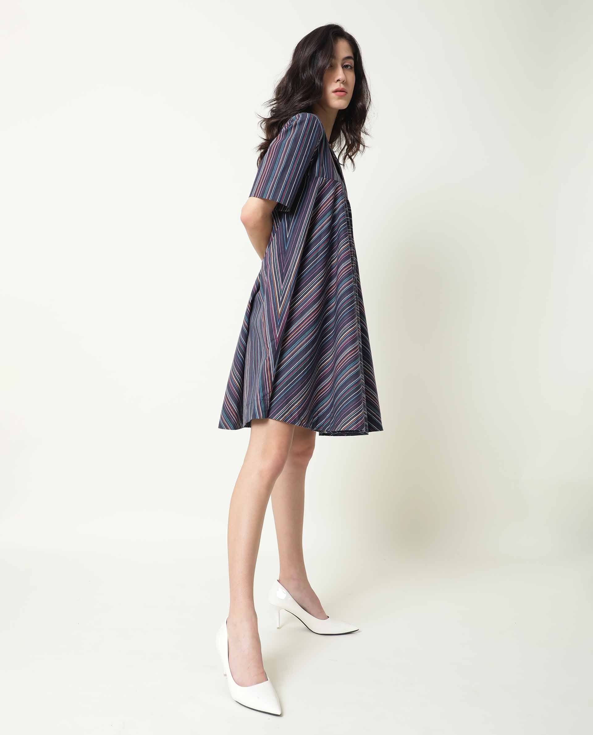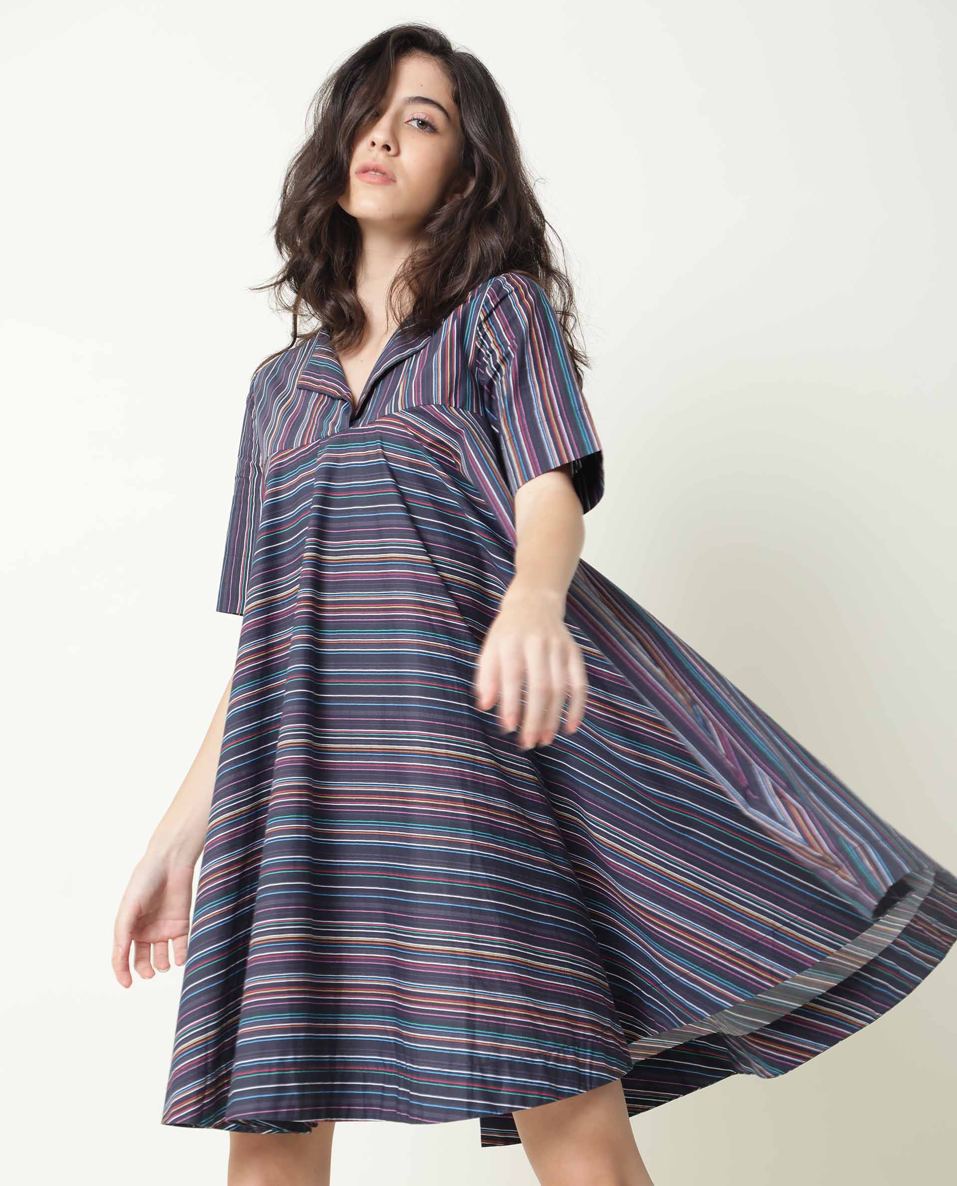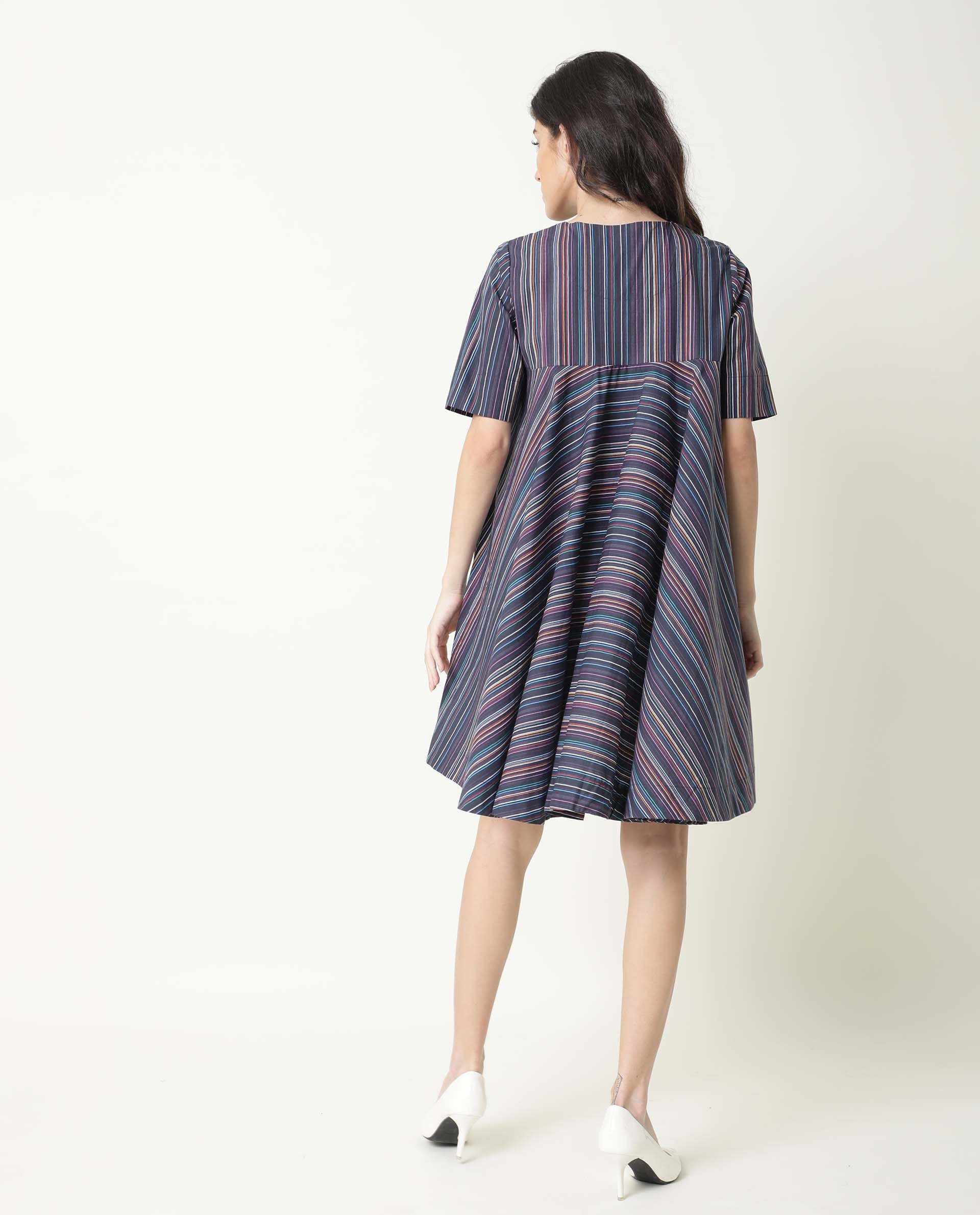 CIRCULAR FLARED STRIPED MIDI DRESS