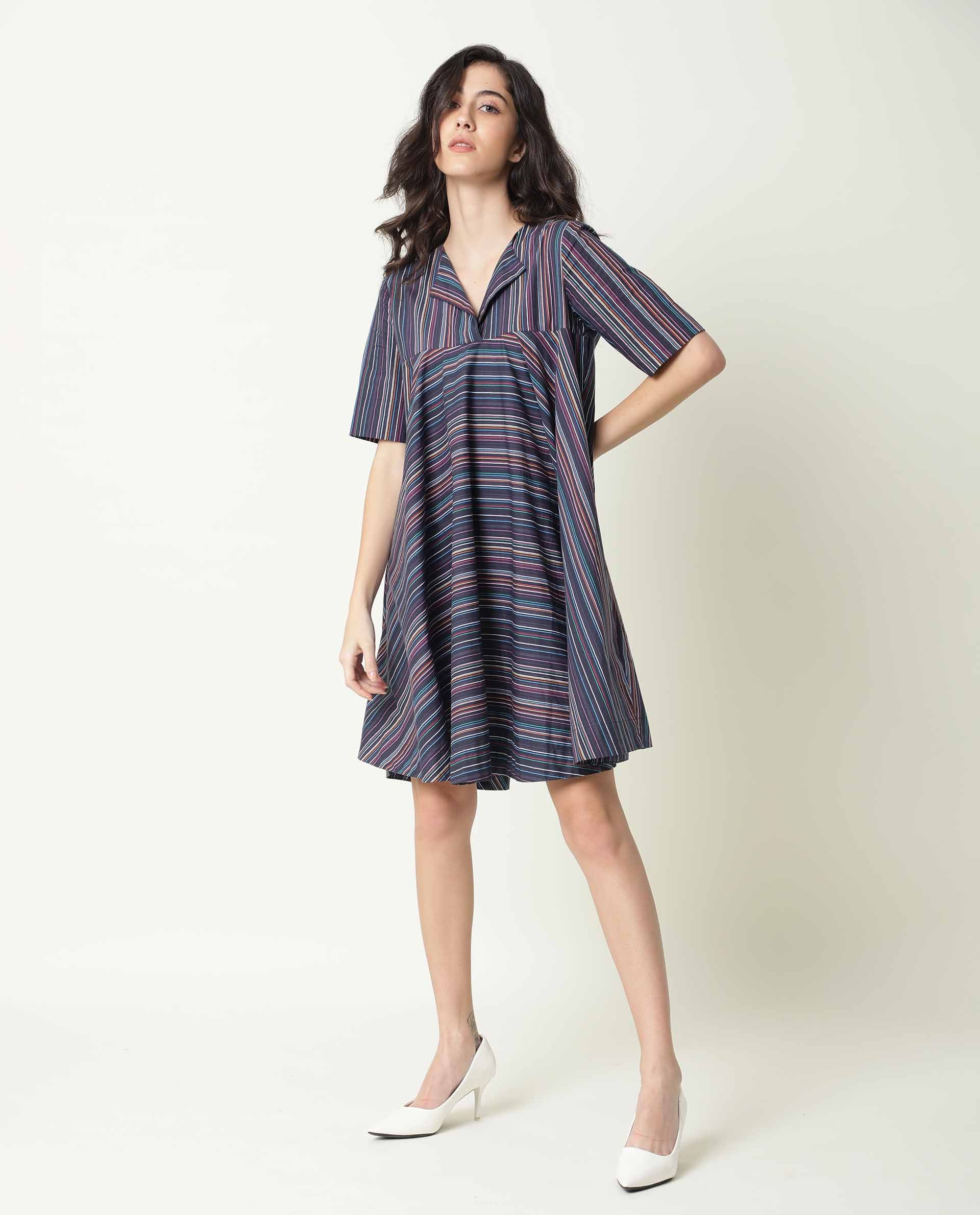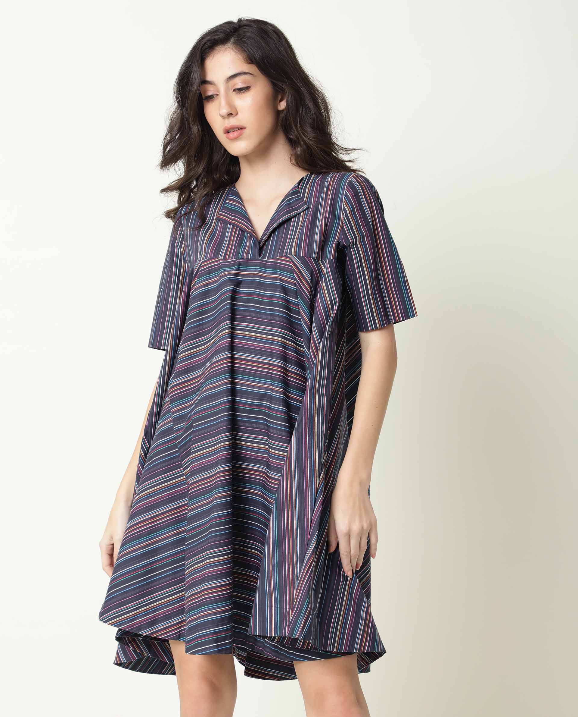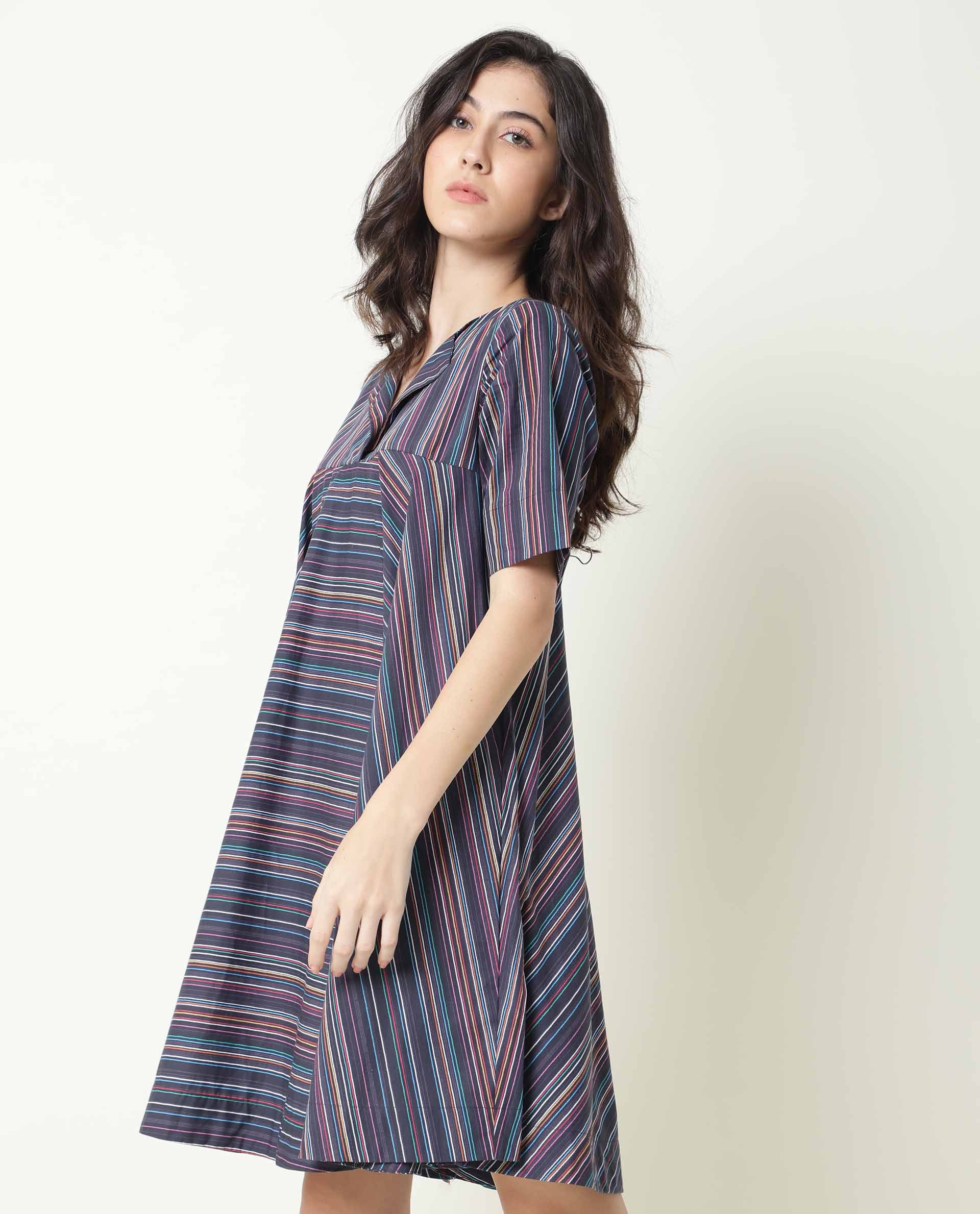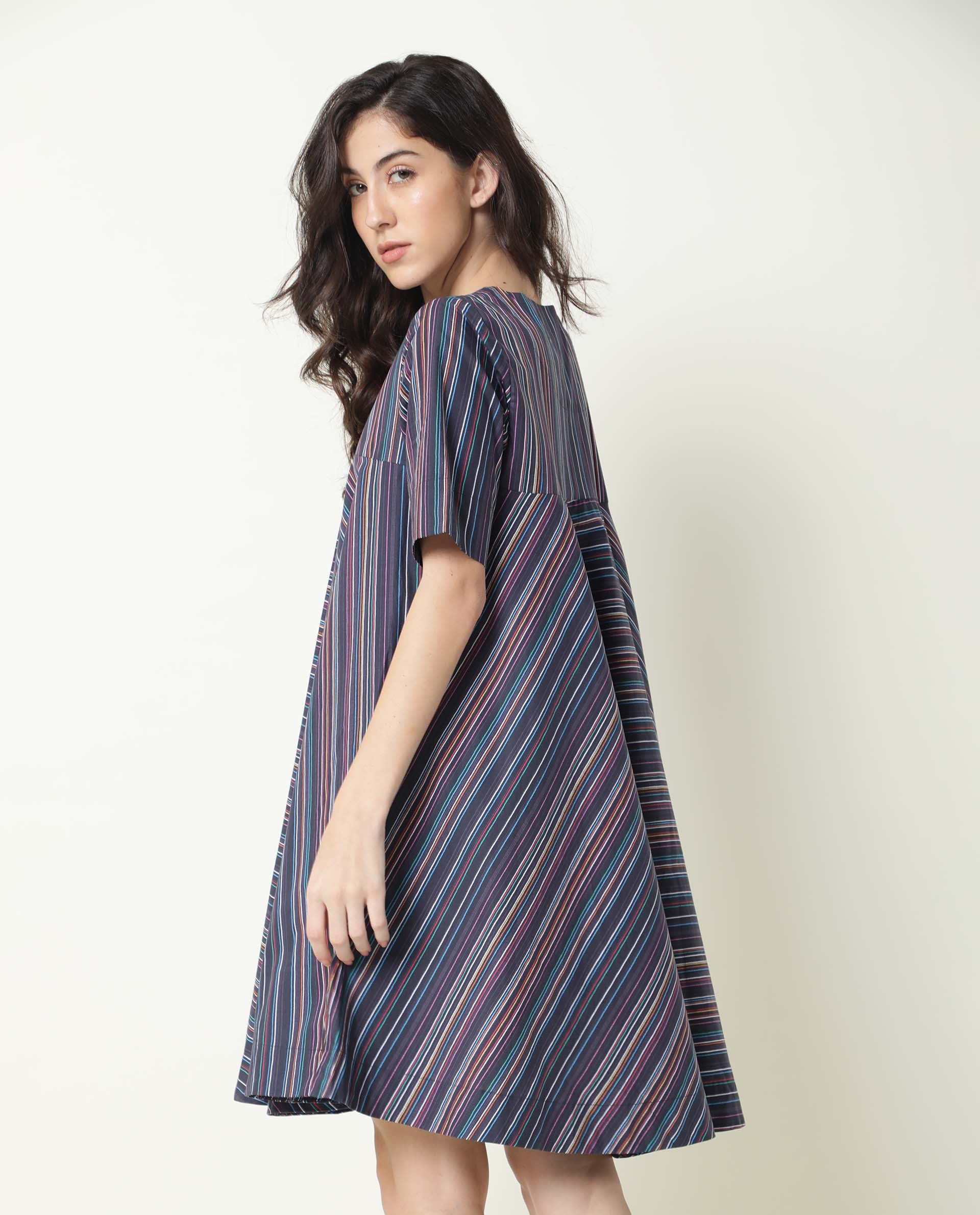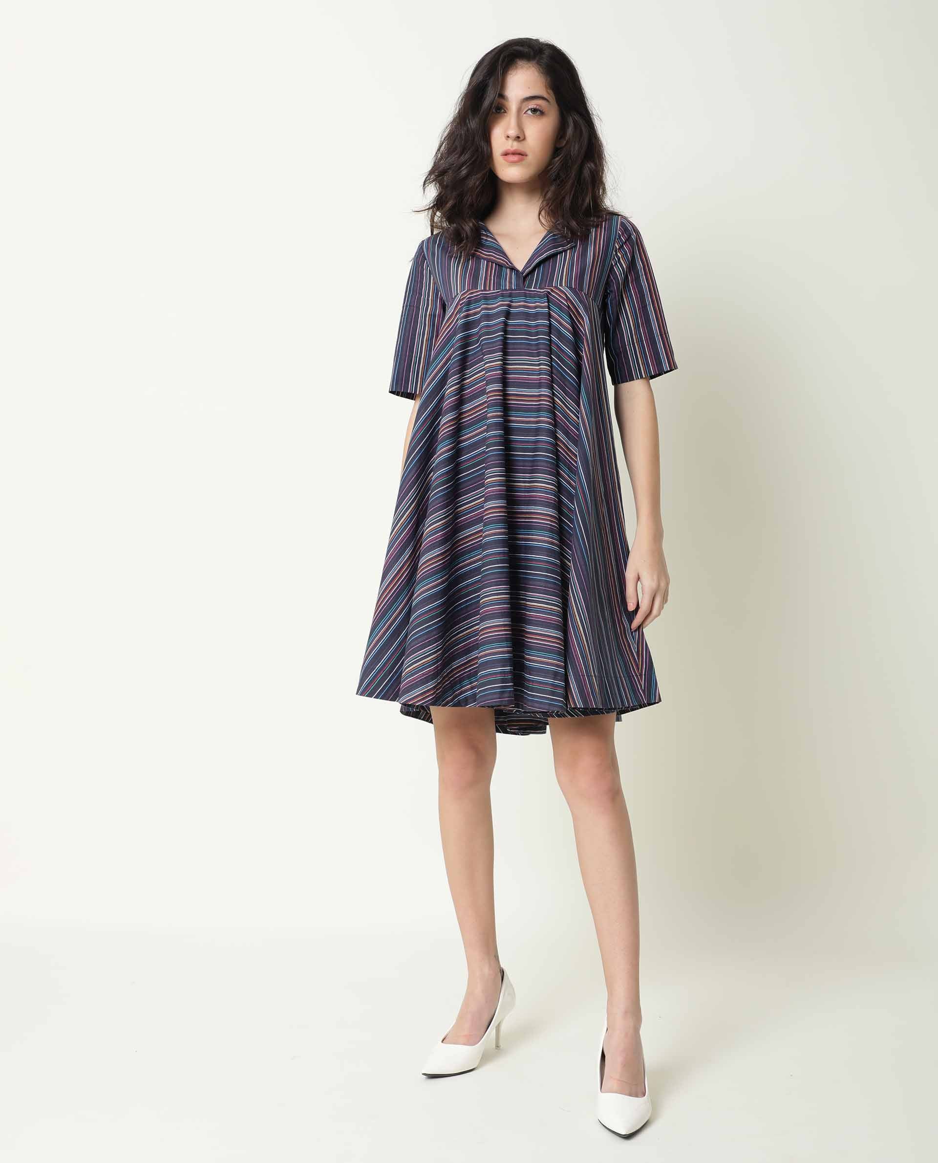 CIRCULAR FLARED STRIPED MIDI DRESS