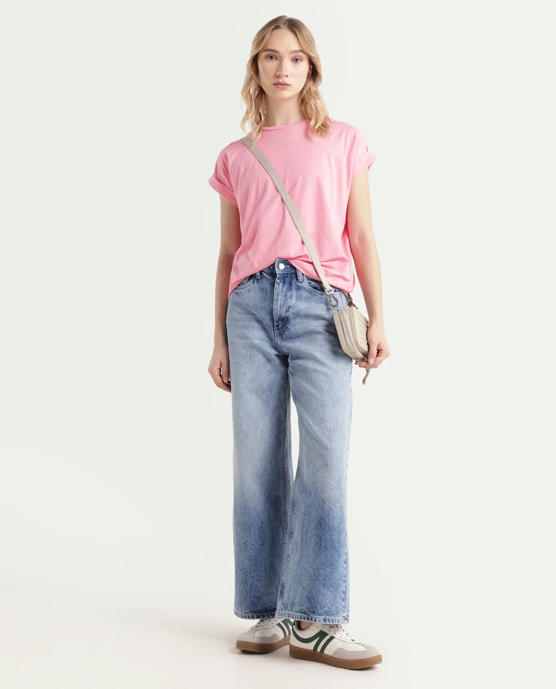 This womens t-shirt from RAREISM carries a contemporary and minimal charm. Its neat styling keeps the outfit looking fresh and composed. A reliable pick for someone who prefers a soft, modern aesthetic.