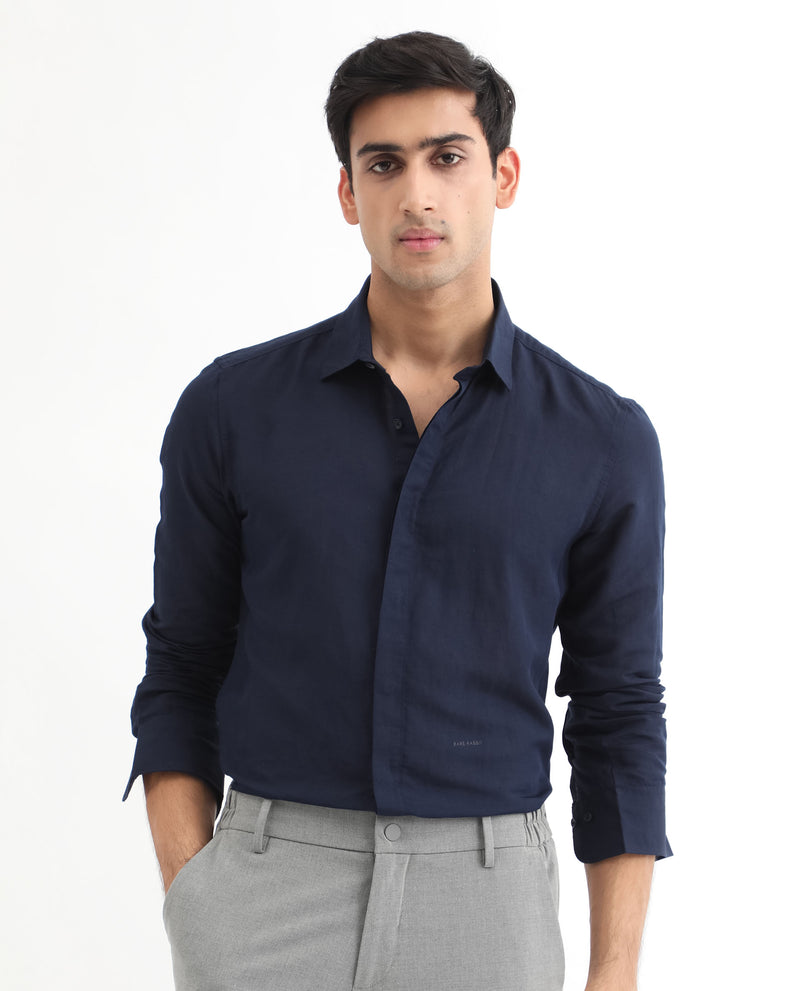 This mens shirt from RARE RABBIT carries a contemporary and minimal charm. Its neat styling keeps the outfit looking fresh and composed. A reliable pick for someone who prefers a soft, modern aesthetic.