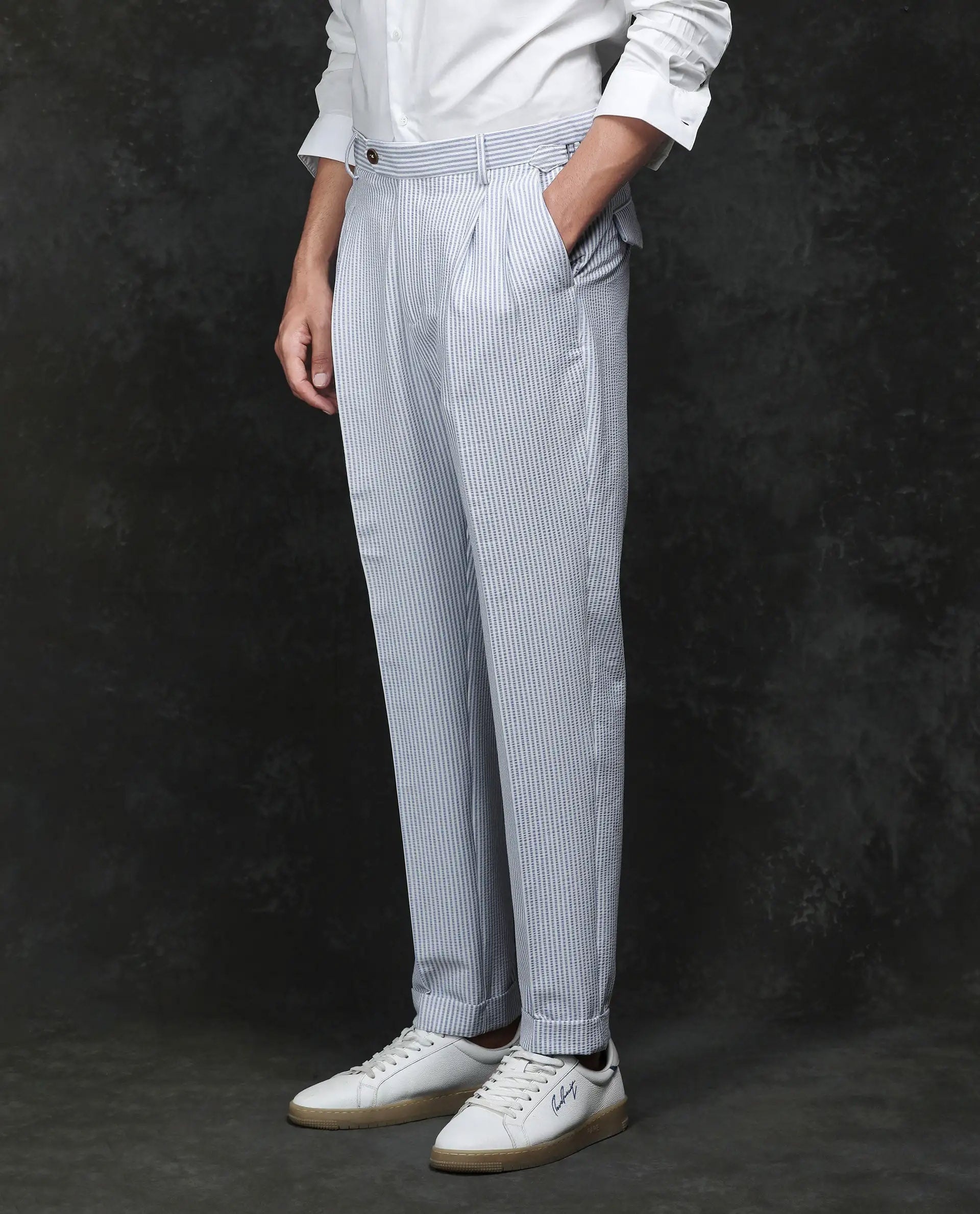 RELAXED FIT STRIPED PRINT TROUSER