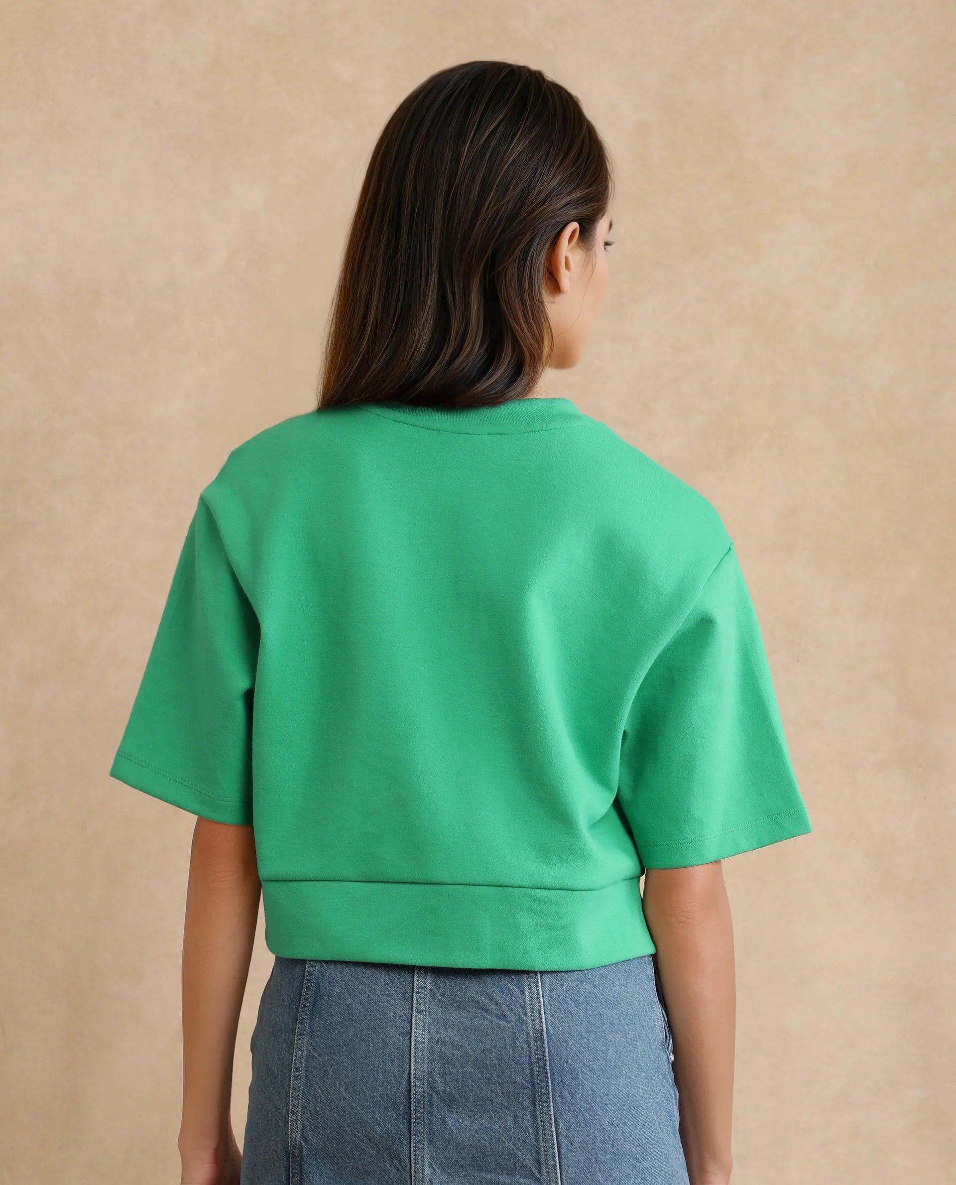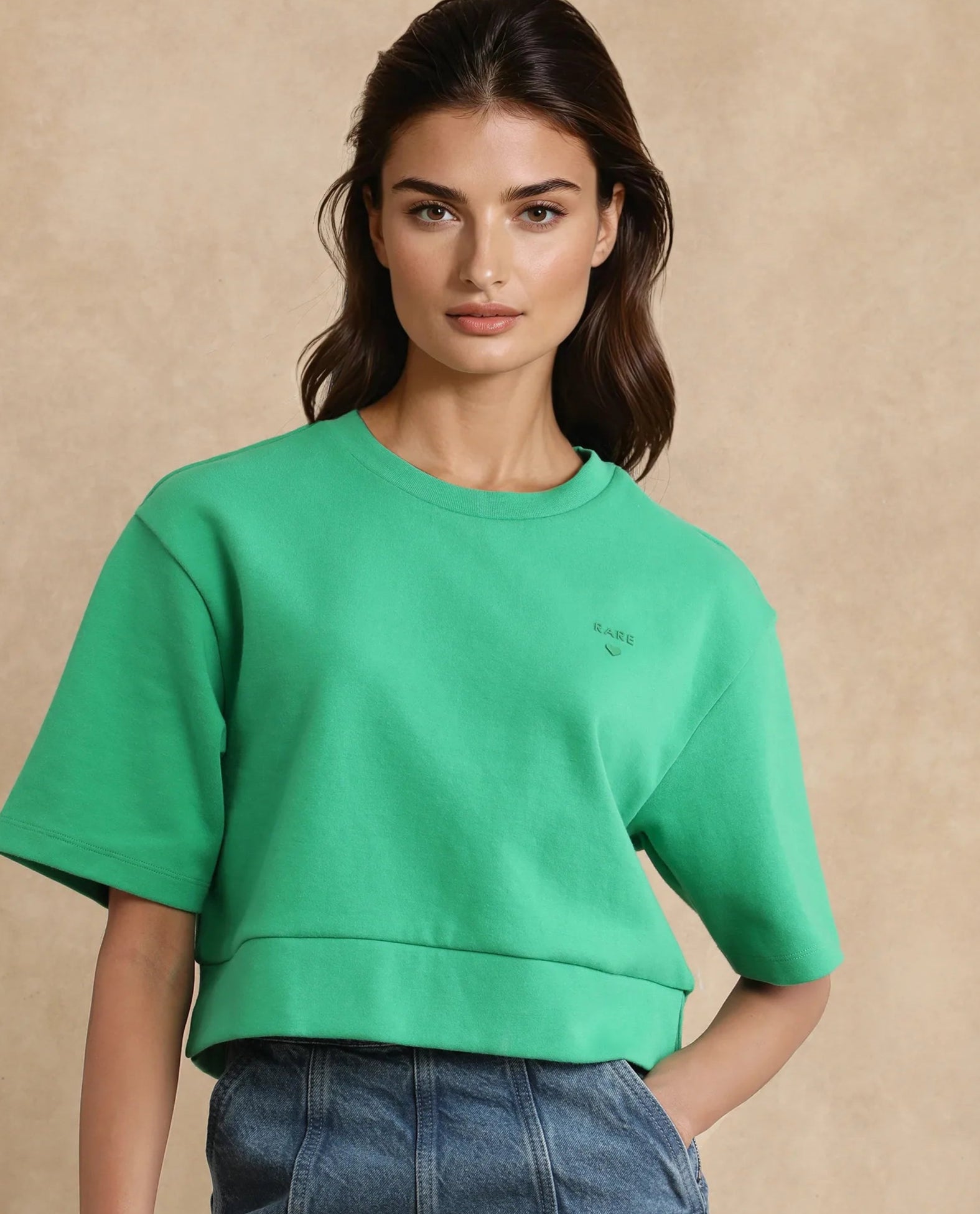 This womens t-shirt from RAREISM carries a contemporary and minimal charm. Its neat styling keeps the outfit looking fresh and composed. A reliable pick for someone who prefers a soft, modern aesthetic.