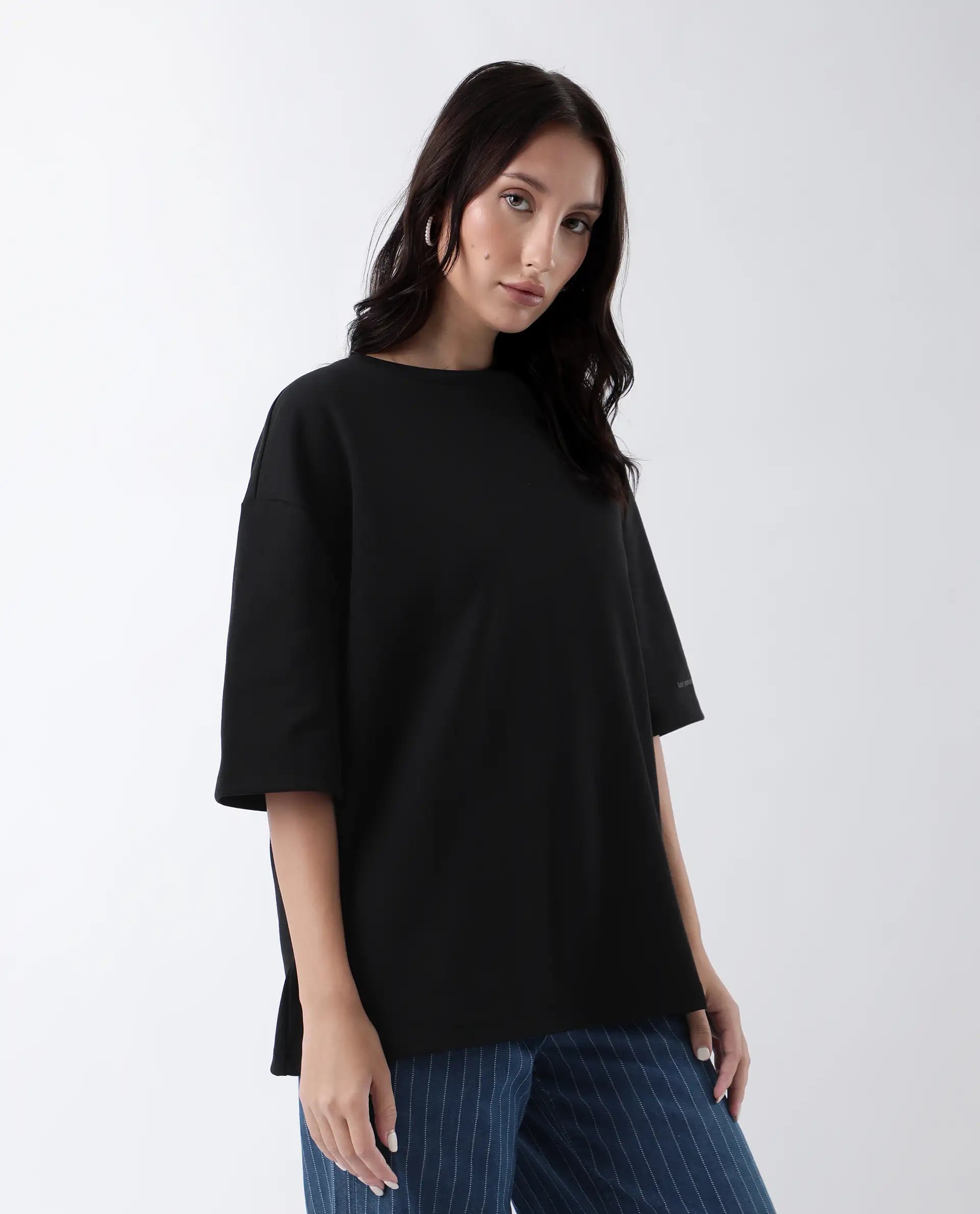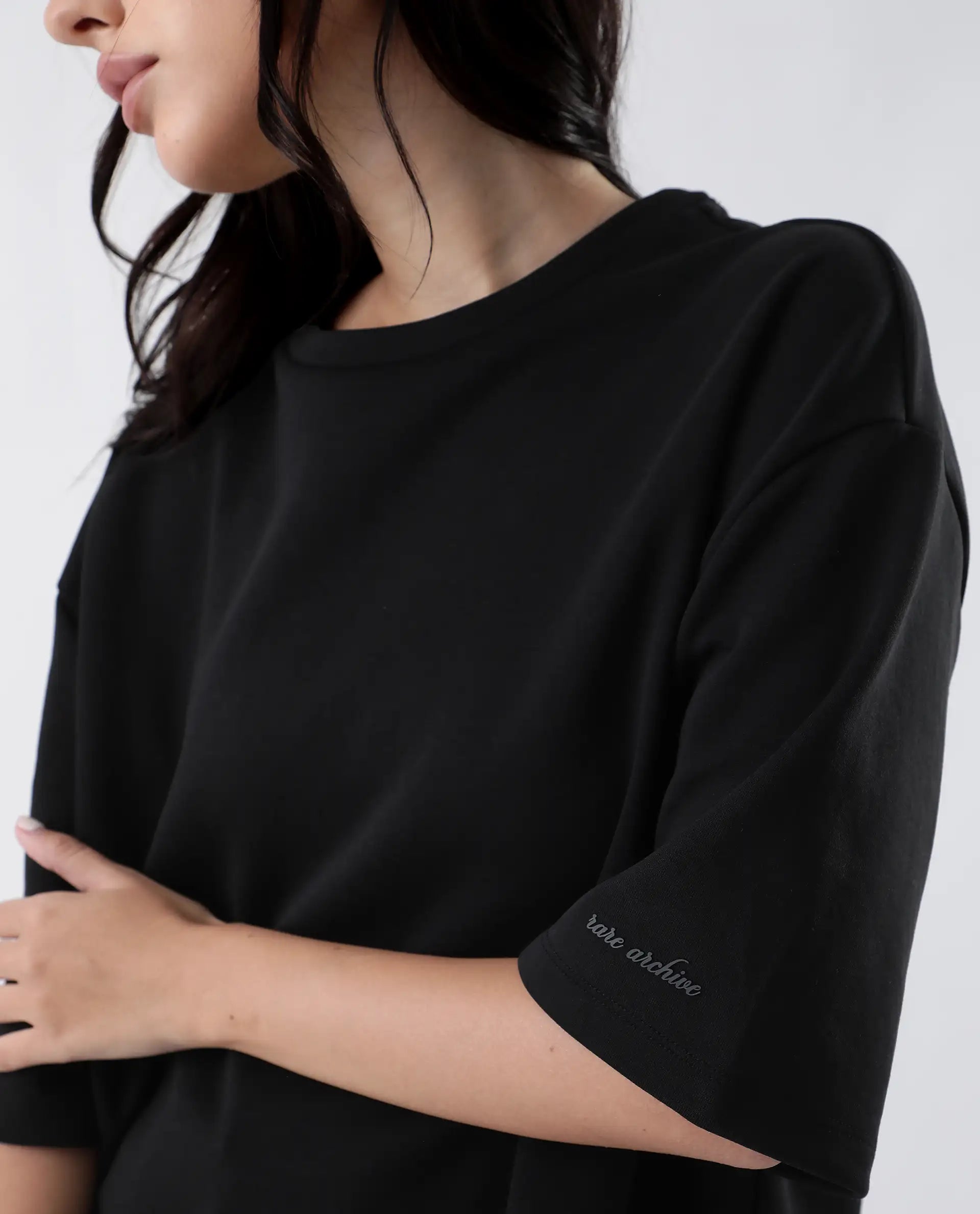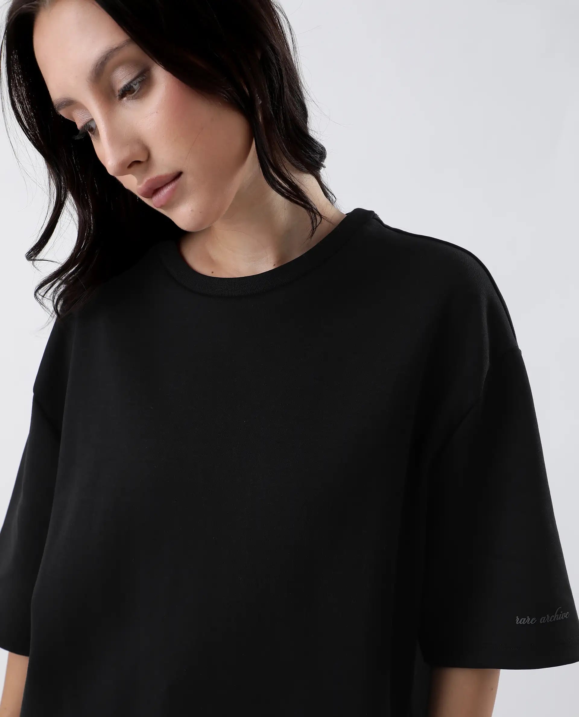 Expertly crafted from a blend of 60% cotton and 40% polyester, the Rareism Women Afsko-T Black T-Shirt offers a relaxed fit for ultimate comfort. Featuring a classic crew neck and half sleeves, this plain tee is perfect for everyday wear. Experience unmatched style and quality with this must-have wardrobe staple.