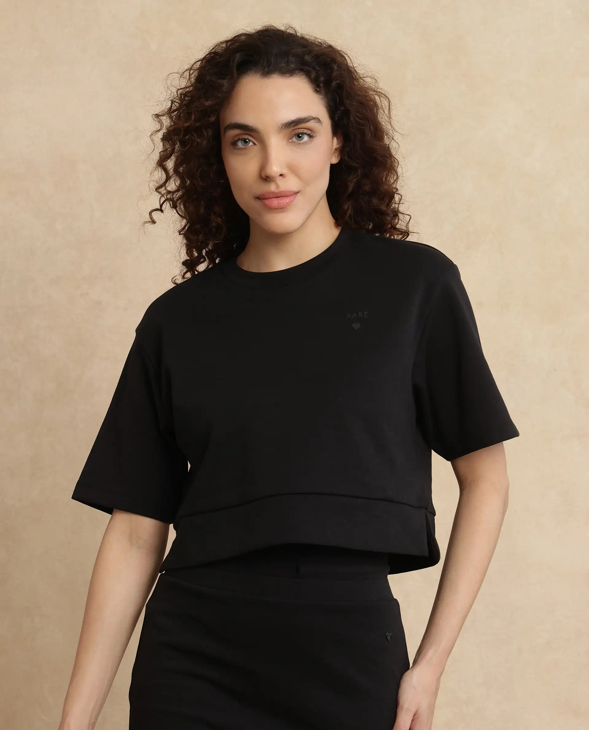 This womens t-shirt from RAREISM carries a contemporary and minimal charm. Its neat styling keeps the outfit looking fresh and composed. A reliable pick for someone who prefers a soft, modern aesthetic.
