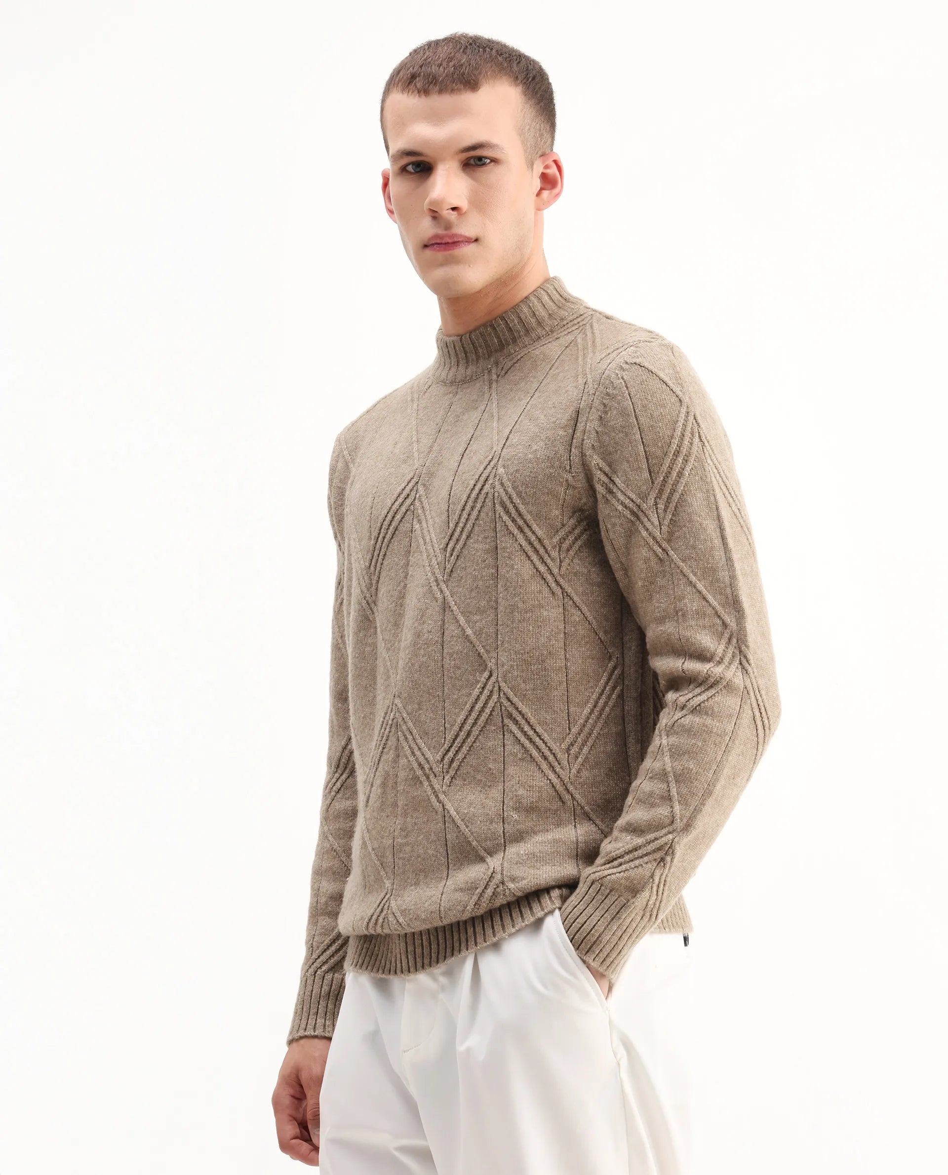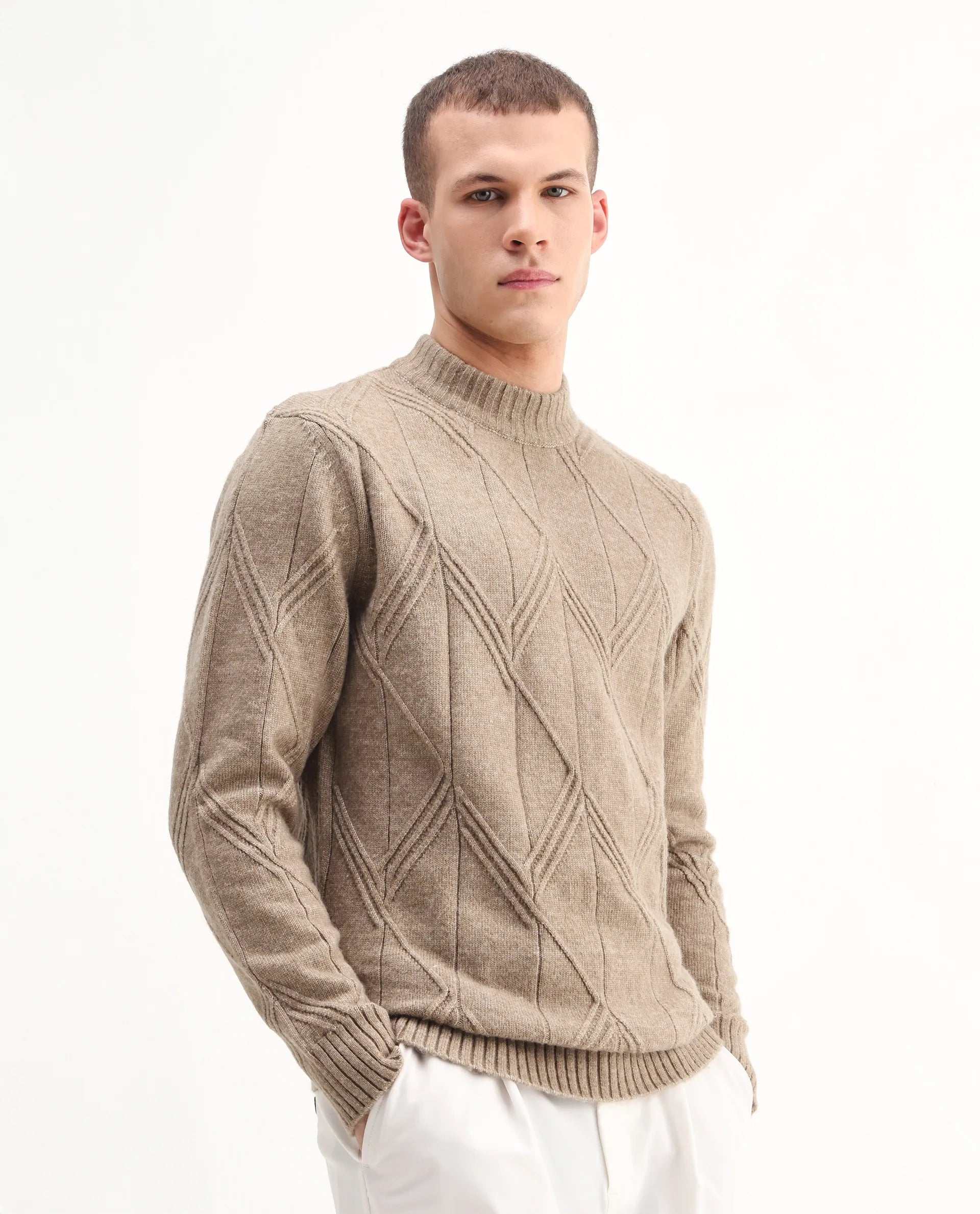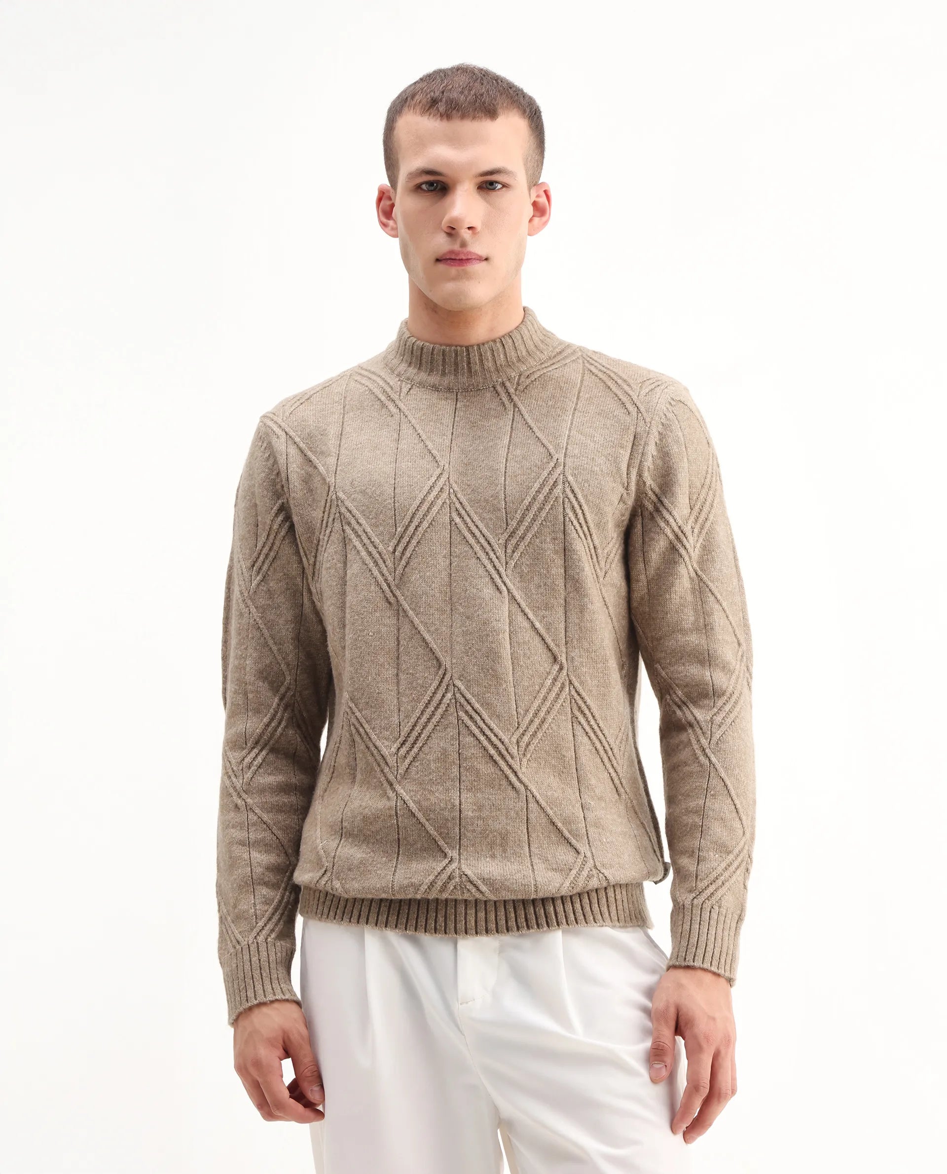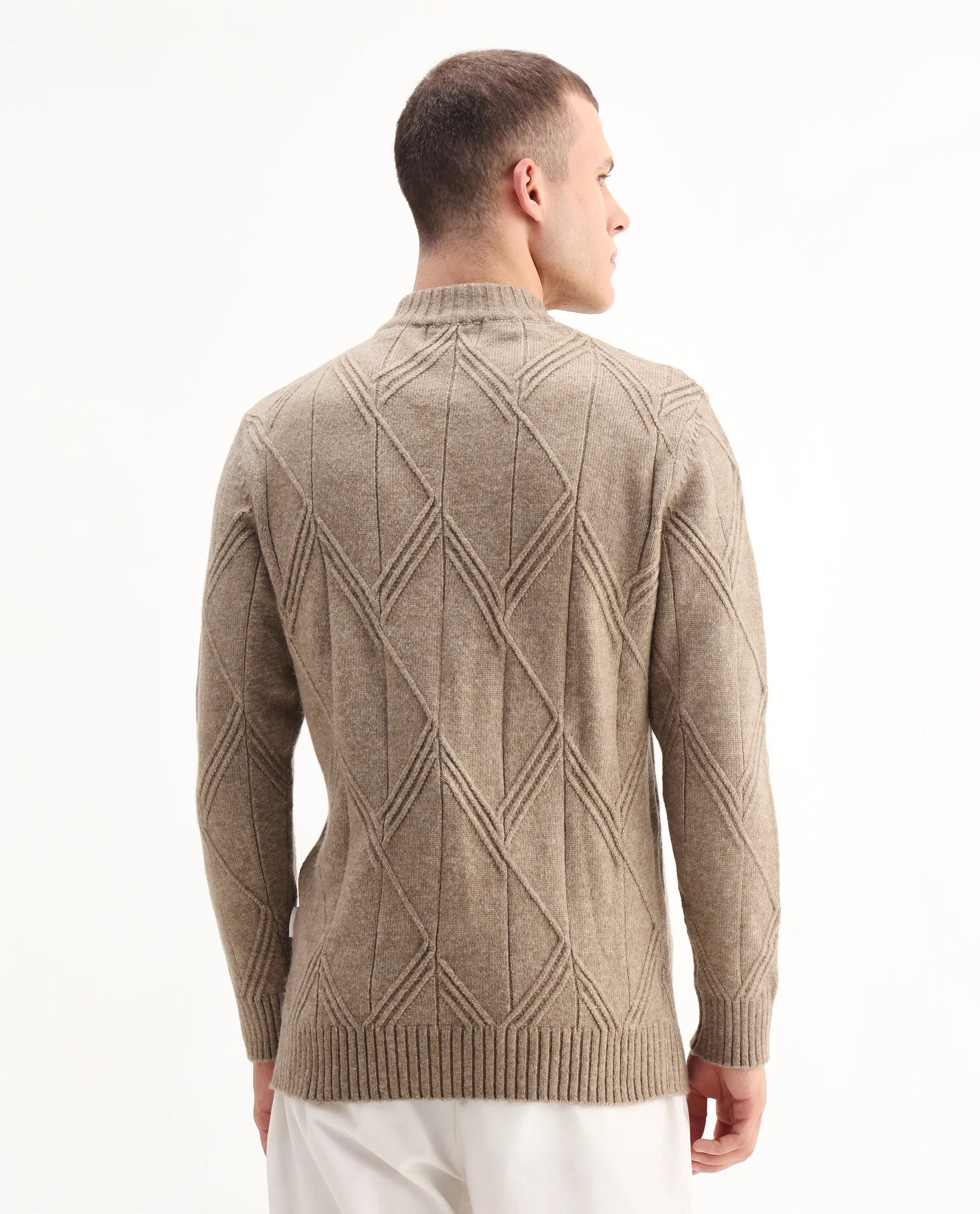 This mens sweater embraces a soft, everyday look with its subtle appeal. The design stays uncomplicated and polished, creating a smooth overall appearance. Perfect for maintaining a simple yet elevated style.