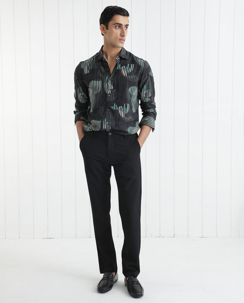 This mens shirt from RARE RABBIT carries a contemporary and minimal charm. Its neat styling keeps the outfit looking fresh and composed. A reliable pick for someone who prefers a soft, modern aesthetic.