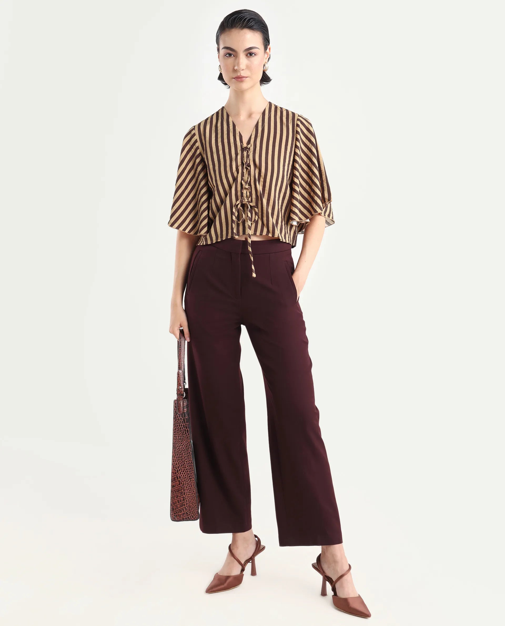 ANDRIA - BROWN STRIPED REGULAR FIT TOP