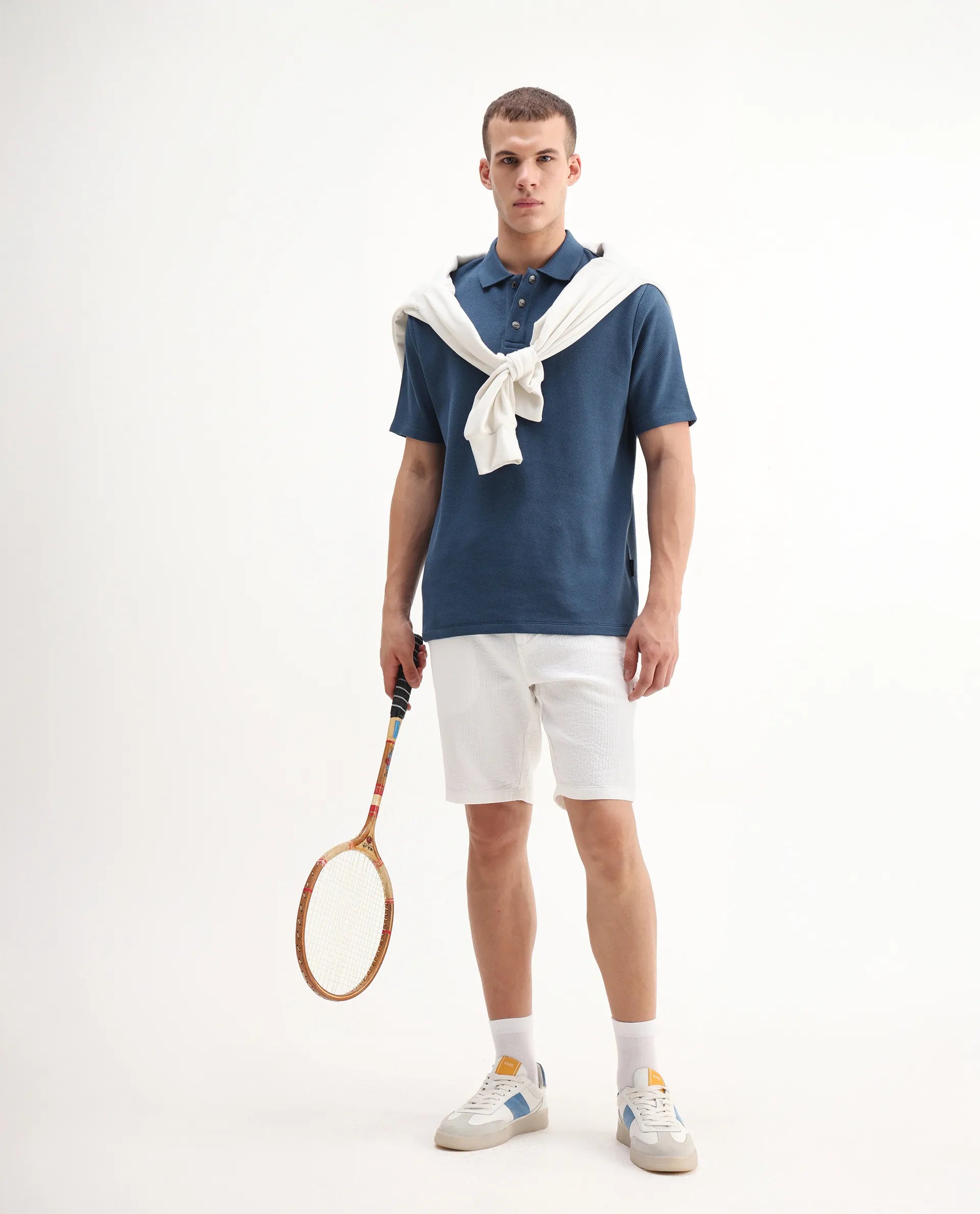 This mens polo from RARE RABBIT delivers a polished, understated look ideal for day-to-day dressing. Its smooth lines maintain a calm and collected feel. A versatile piece for those who prefer subtle styling.