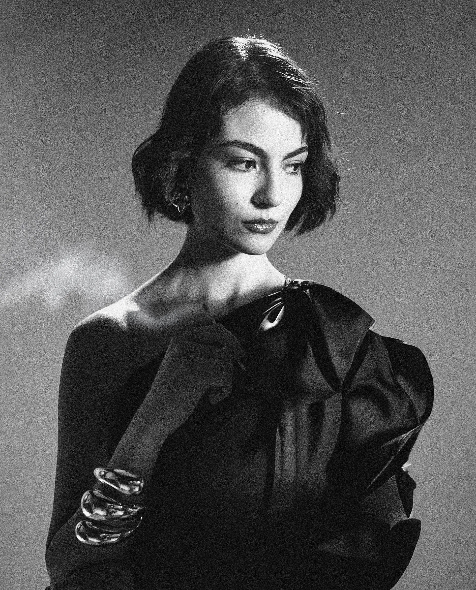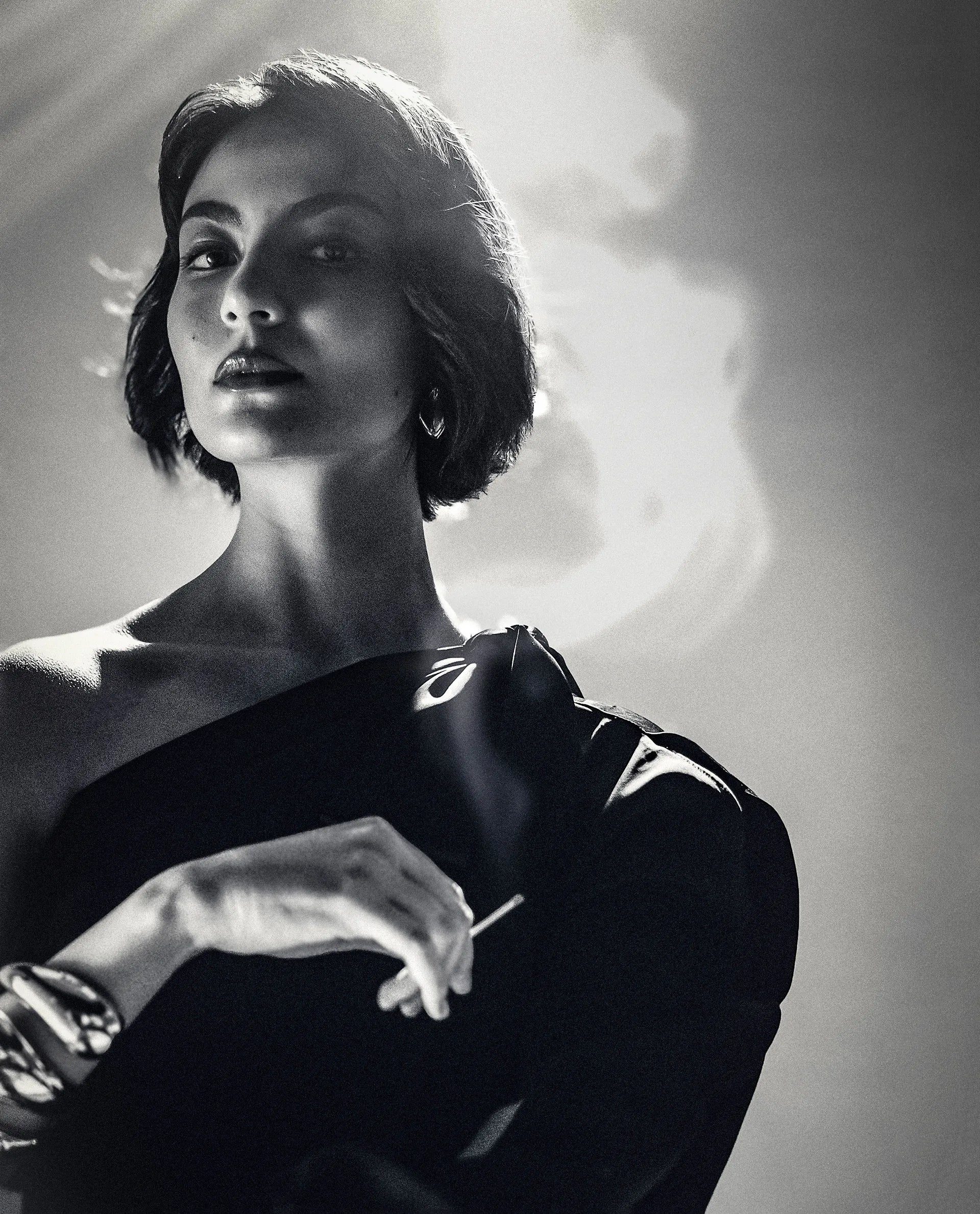 - The model (Chest-34, Waist-28, Hips-38, Height-178 cms) is wearing a size XS.
