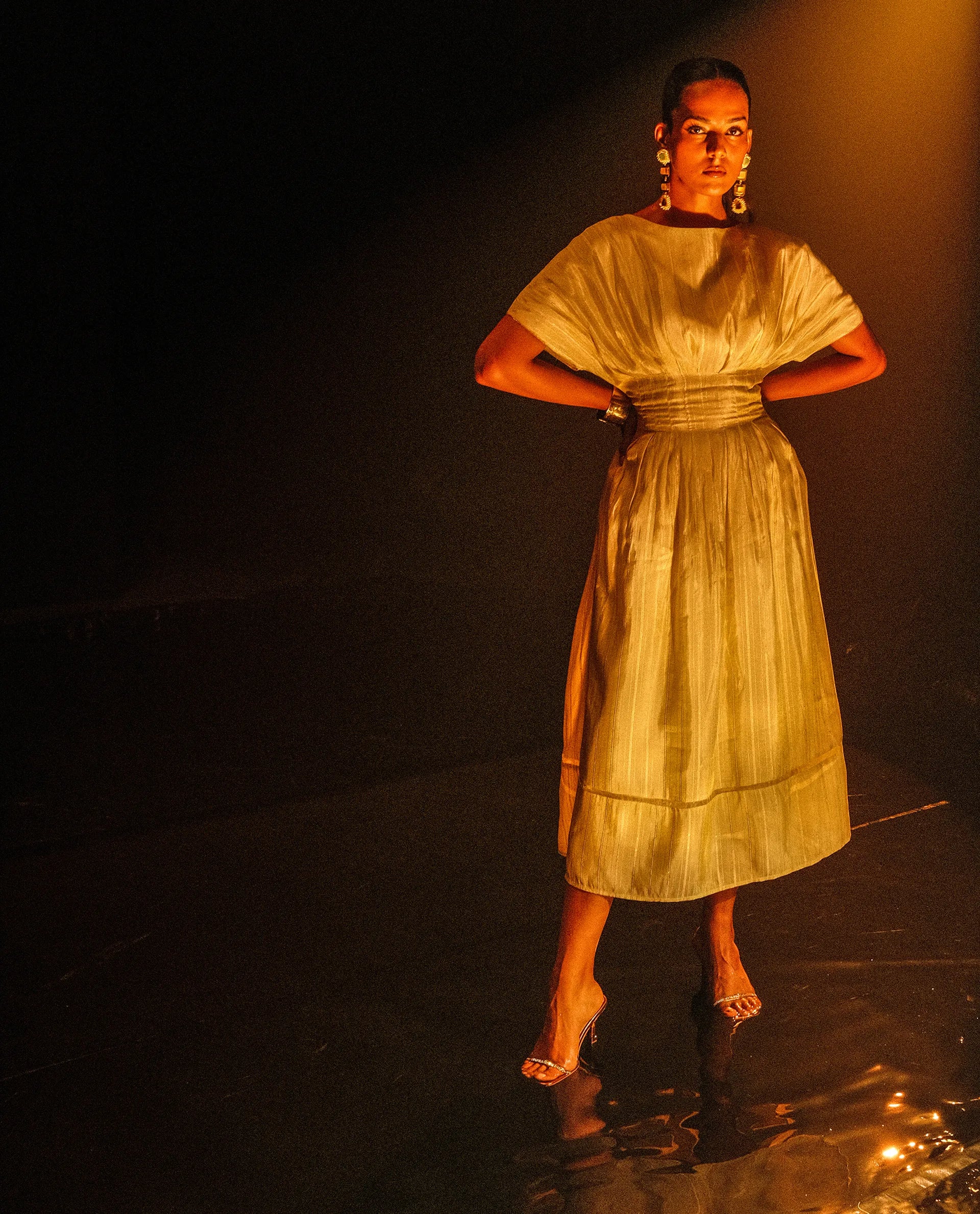 - The model (Chest-34, Waist-28, Hips-38, Height-178 cms) is wearing a size XS.
