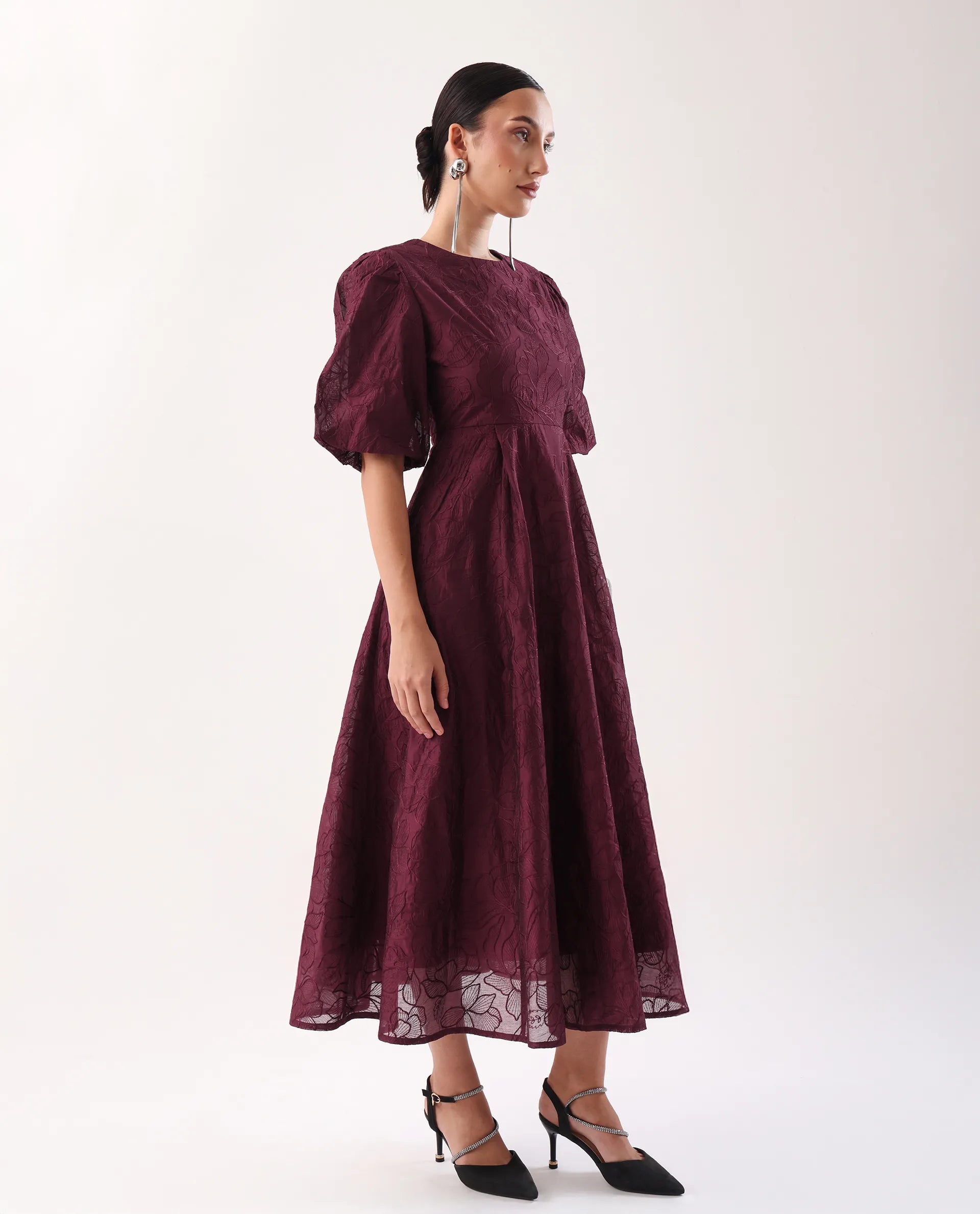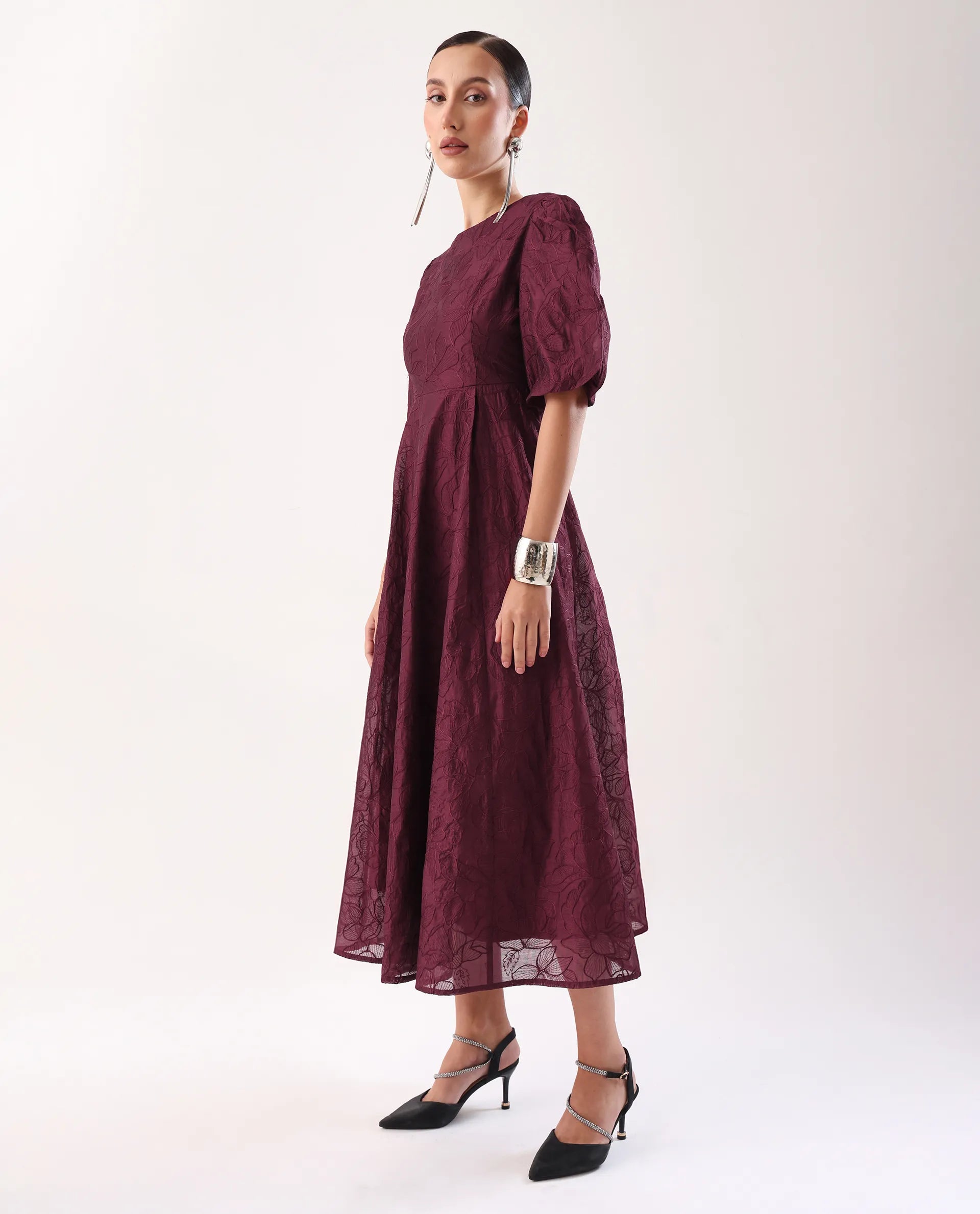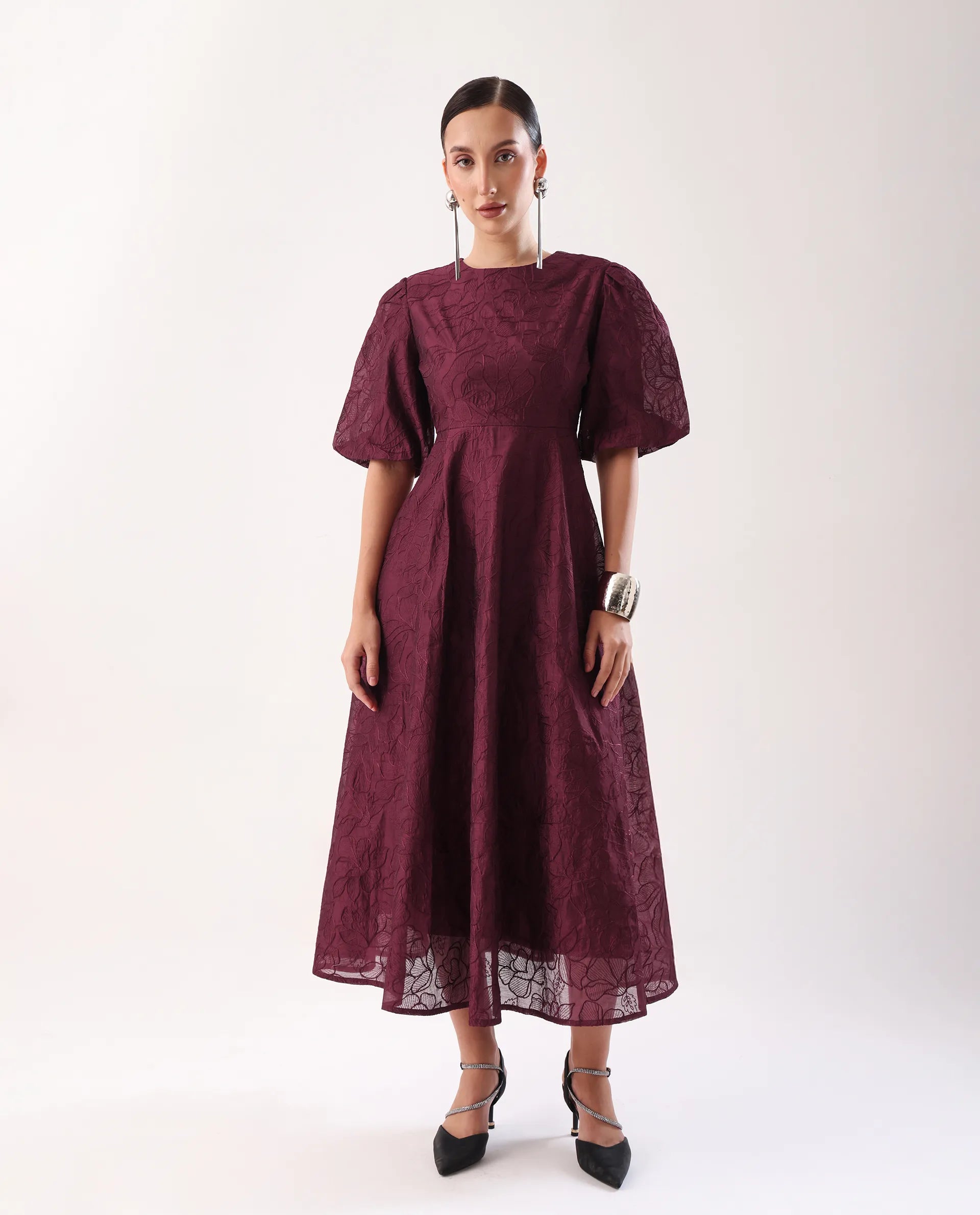 Elevate your wardrobe with this sophisticated maroon maxi dress featuring a classic round neck and convenient zipper closure. The fit and flare silhouette creates a flattering profile while the plain design offers versatile styling options. Perfect for both formal occasions and elegant everyday wear.