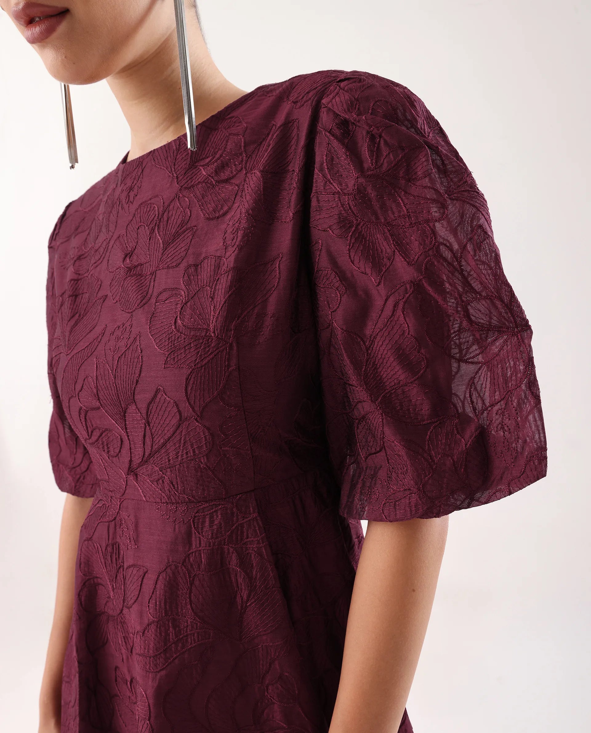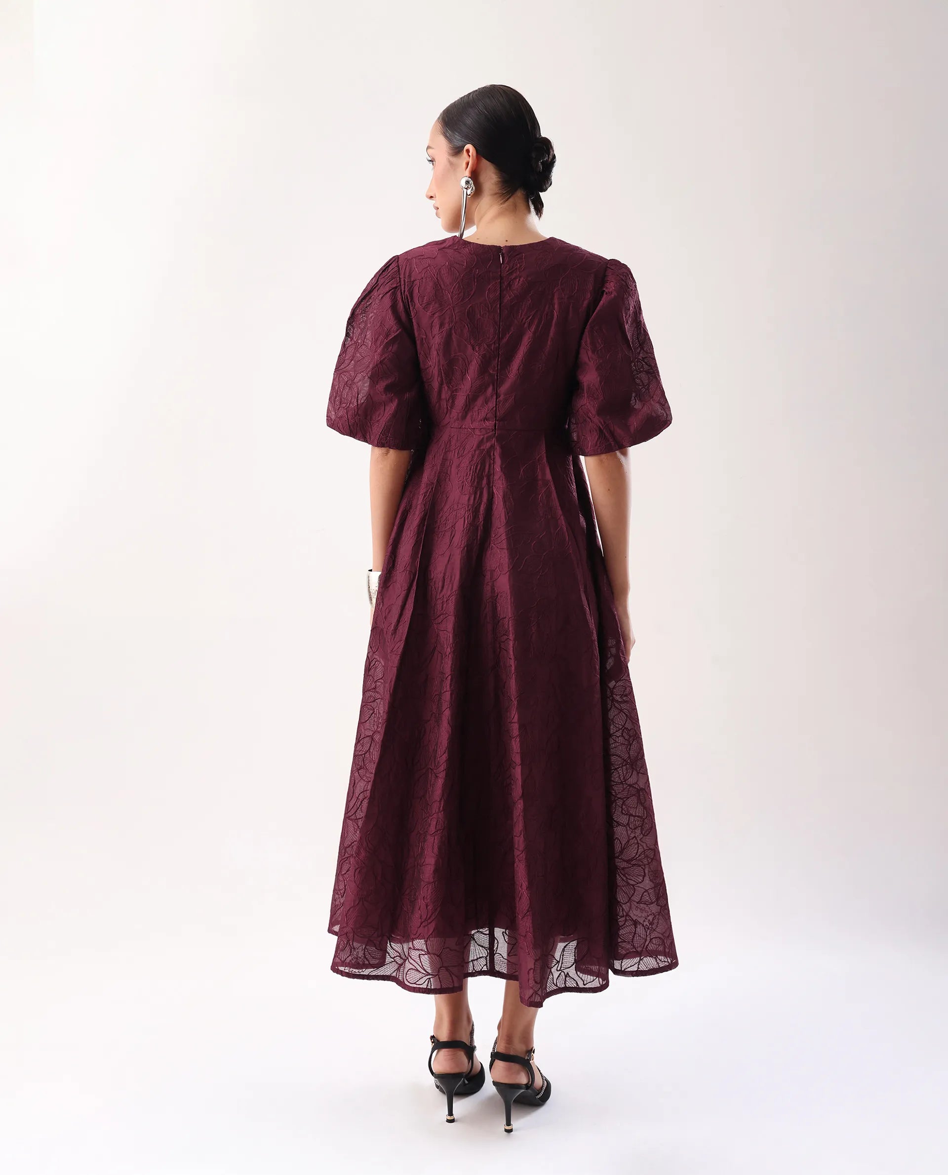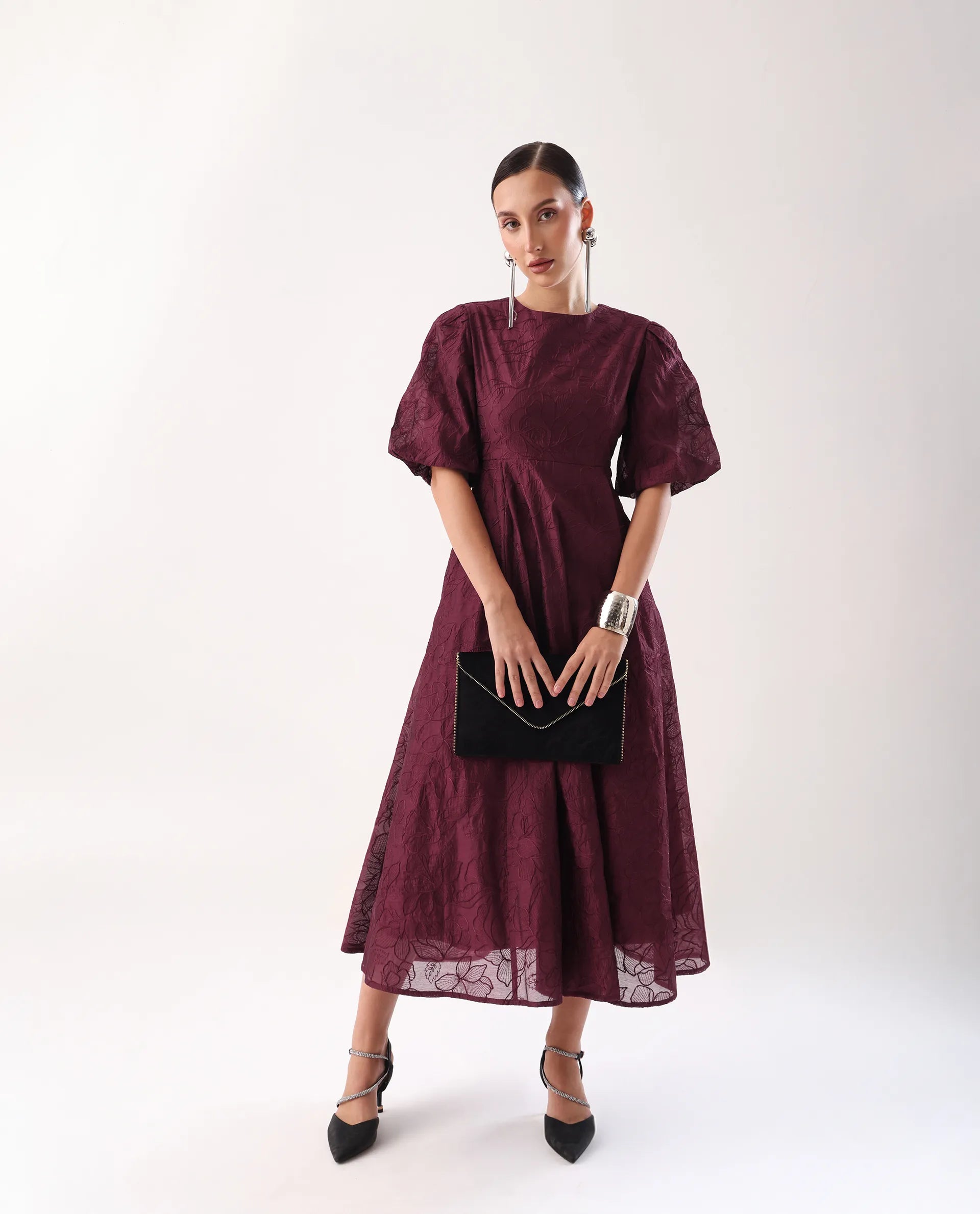 Elevate your wardrobe with this sophisticated maroon maxi dress featuring a classic round neck and convenient zipper closure. The fit and flare silhouette creates a flattering profile while the plain design offers versatile styling options. Perfect for both formal occasions and elegant everyday wear.
