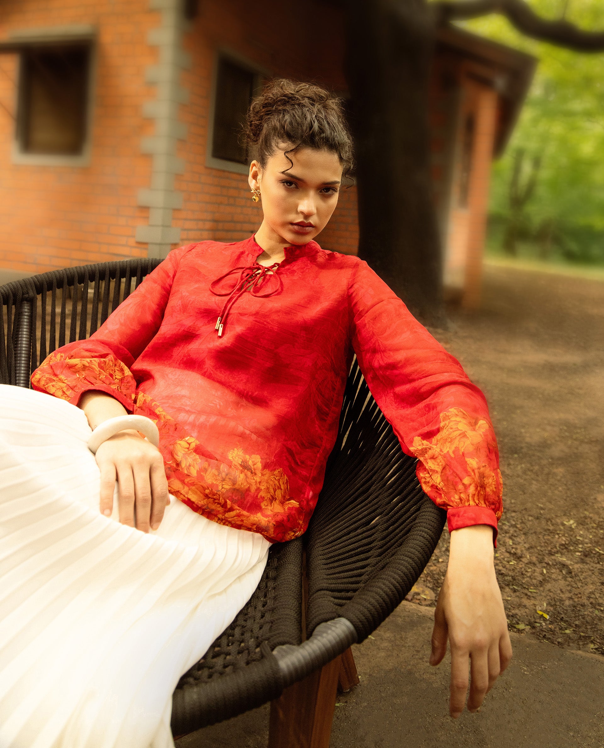 The model (Bust-31, Waist-24, Hip-34, Height-5'8") is wearing size XS.