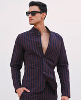 MANDARIN COLLAR STRIPED PRINT JACKET