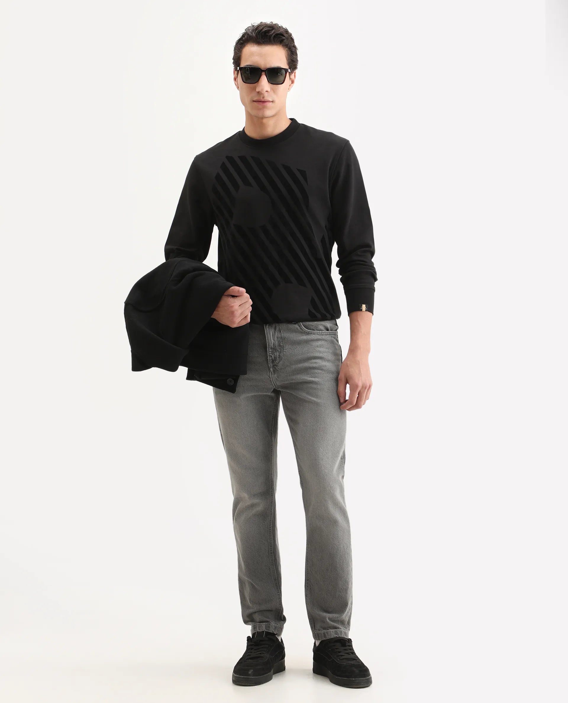 BARON - BLACK REGULAR FIT PLAIN SWEATSHIRT