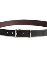- Reversible belt black and burgundy shiny nkl adjustable buckle closure.