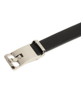 - This sleek and modern belt features textured leather.