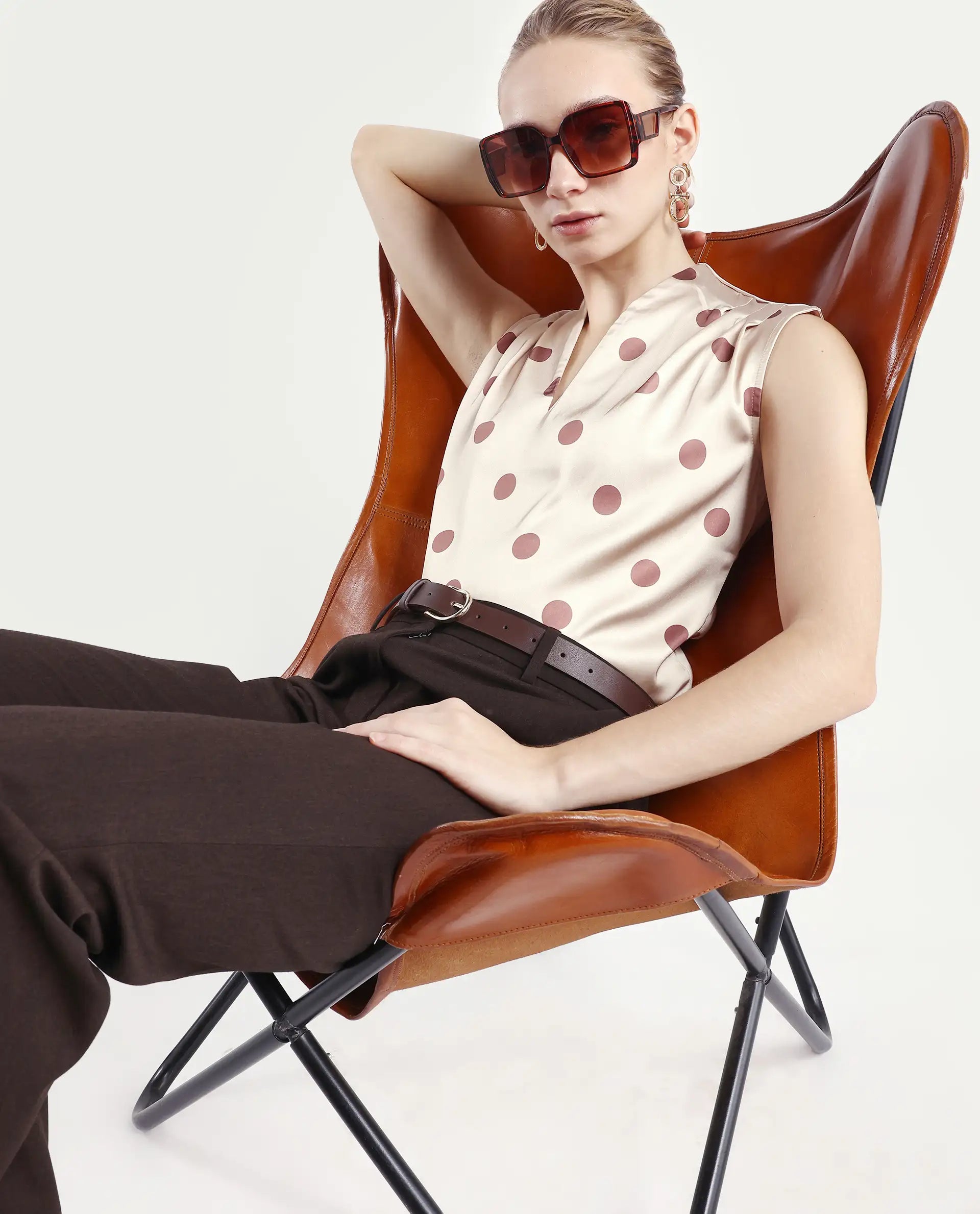 4. V-neckline with pleats at the shoulder adds subtle detail and elegance.