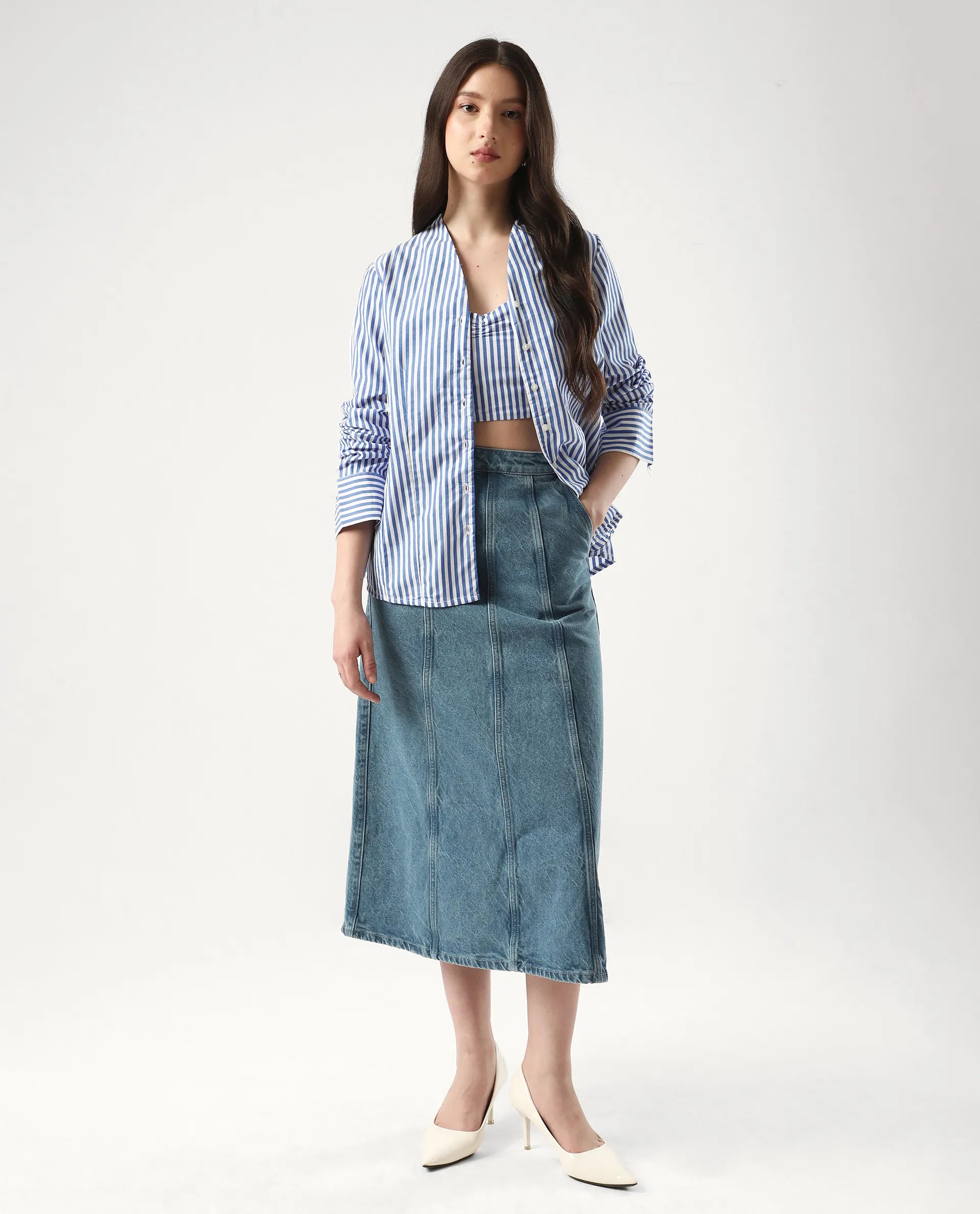 This womens shirt from RAREISM carries a contemporary and minimal charm. Its neat styling keeps the outfit looking fresh and composed. A reliable pick for someone who prefers a soft, modern aesthetic.