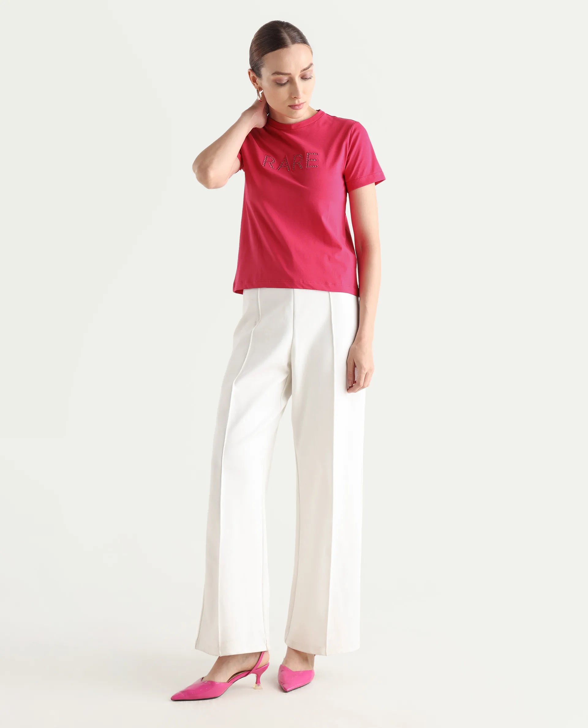 Upgrade your t-shirt game with the Rareism Bhafi Pink Typography T-Shirt. Made of a comfortable cotton blend fabric, this short sleeve t-shirt features a unique typography design and a classic crew neck. Show off your playful side with this quirky and stylish t-shirt.