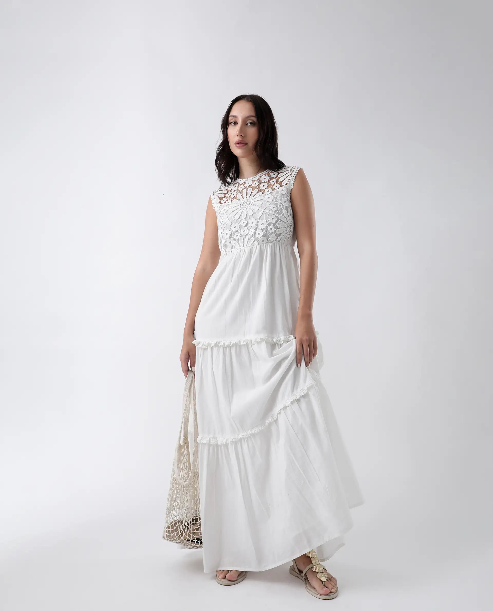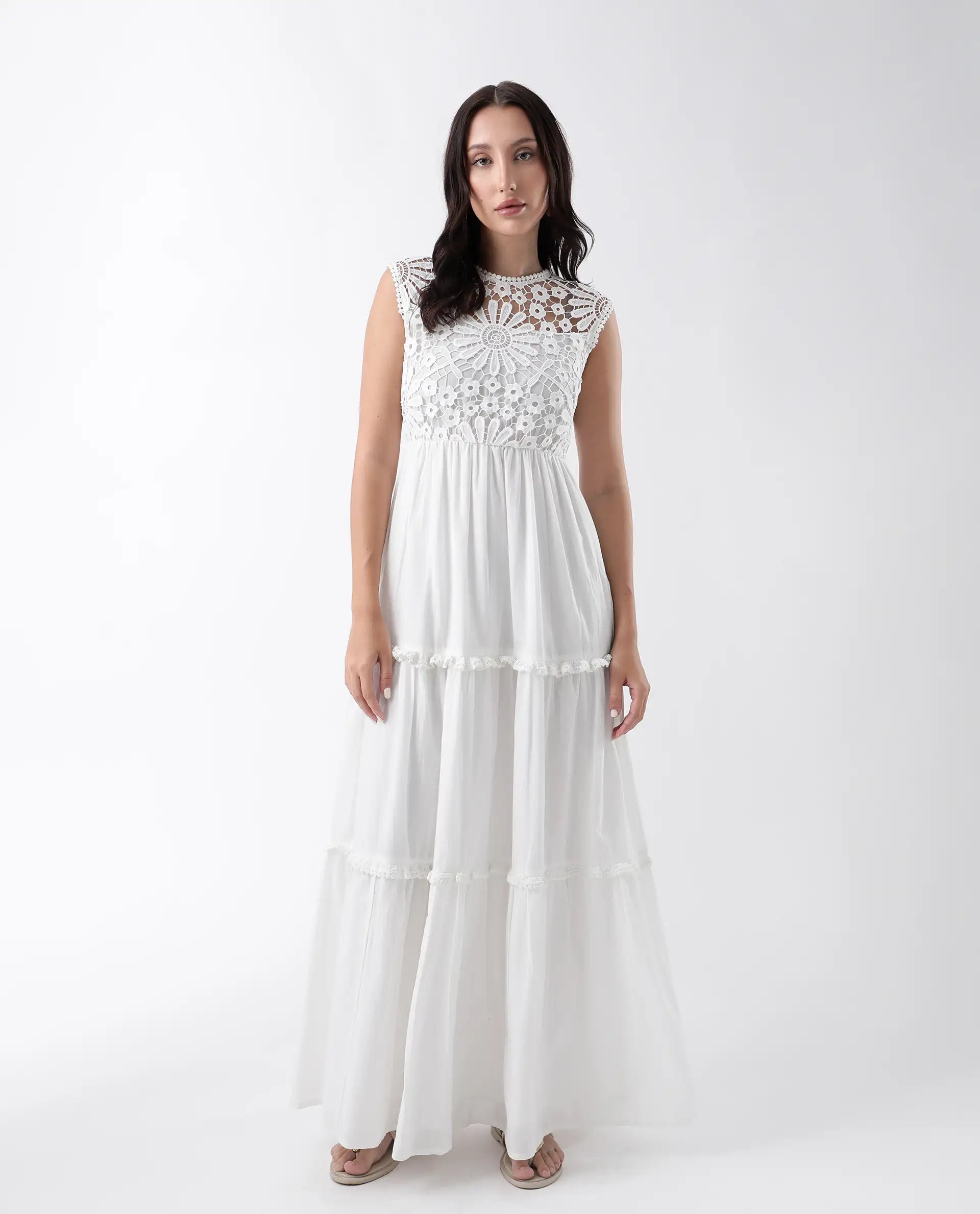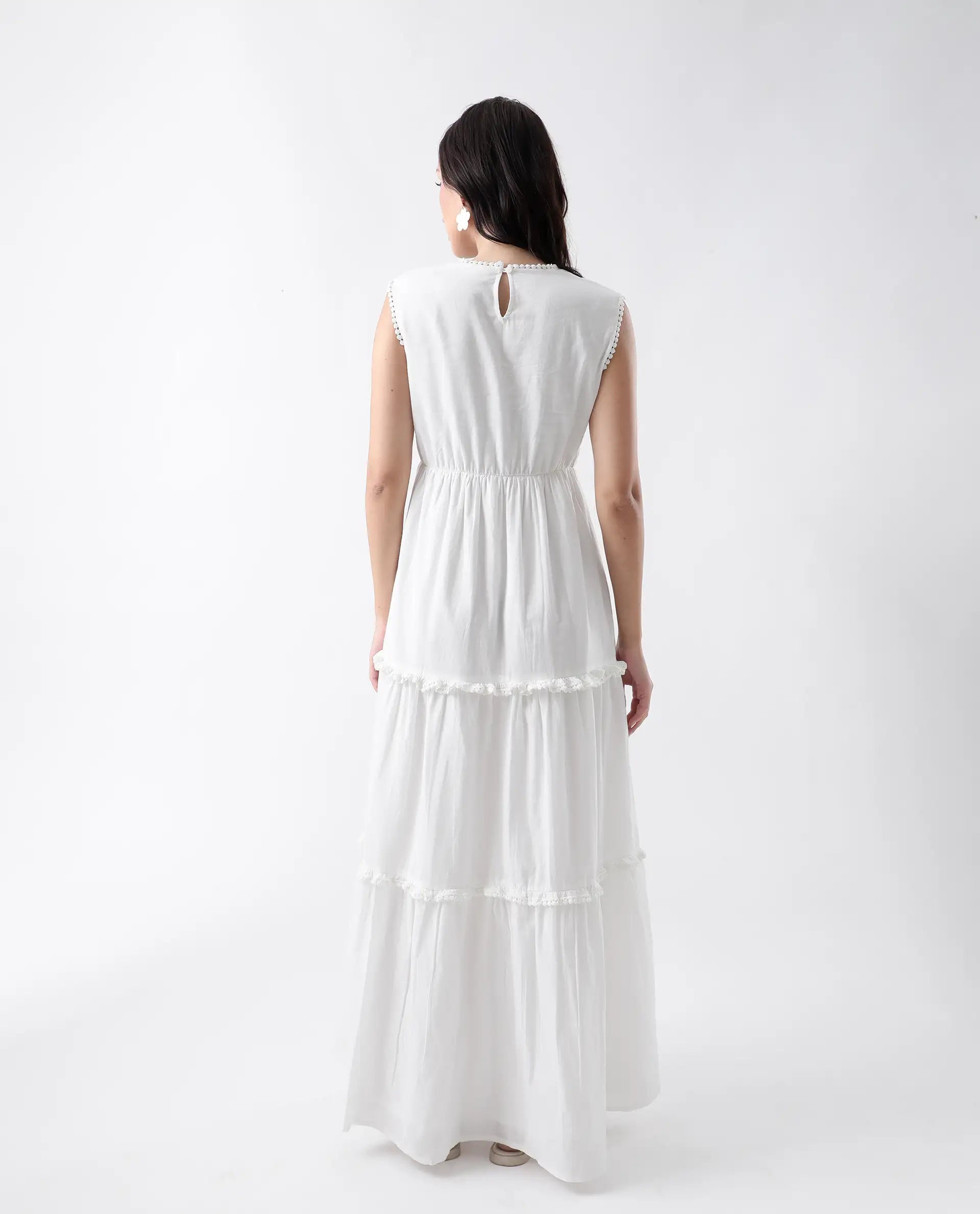 This Rareism Women Bhamona White Cotton Blend Fabric Sleeveless Crew Neck Zipper Closure Fit And Flared Maxi Plain Dress is made of 100% cotton fabric, providing a comfortable and breathable fit. The sleeveless design and crew neck style offer a classic look, while the zipper closure adds convenience. The fit and flared silhouette is flattering for all body types. Perfect for any occasion, this dress is a must-have in your wardrobe.