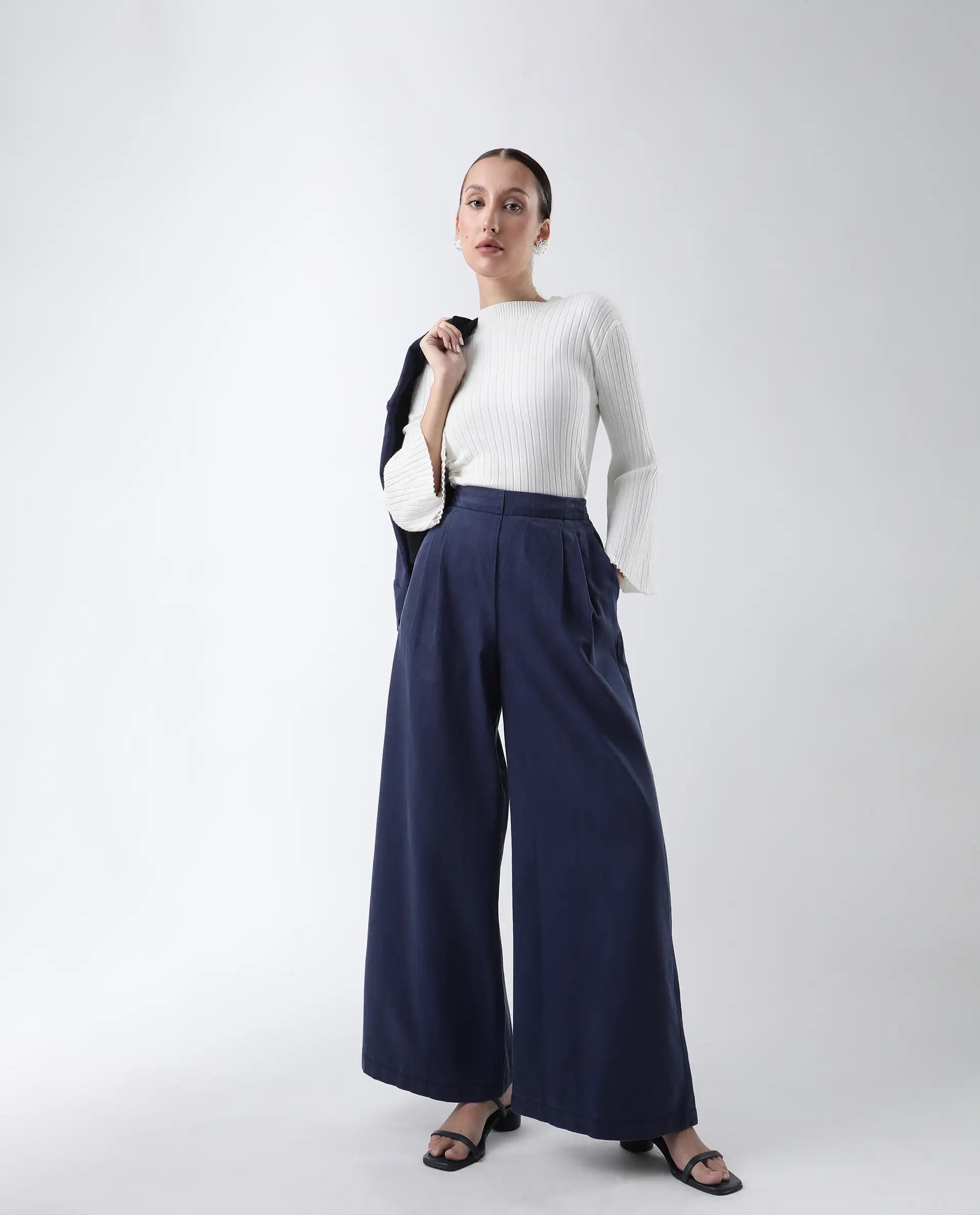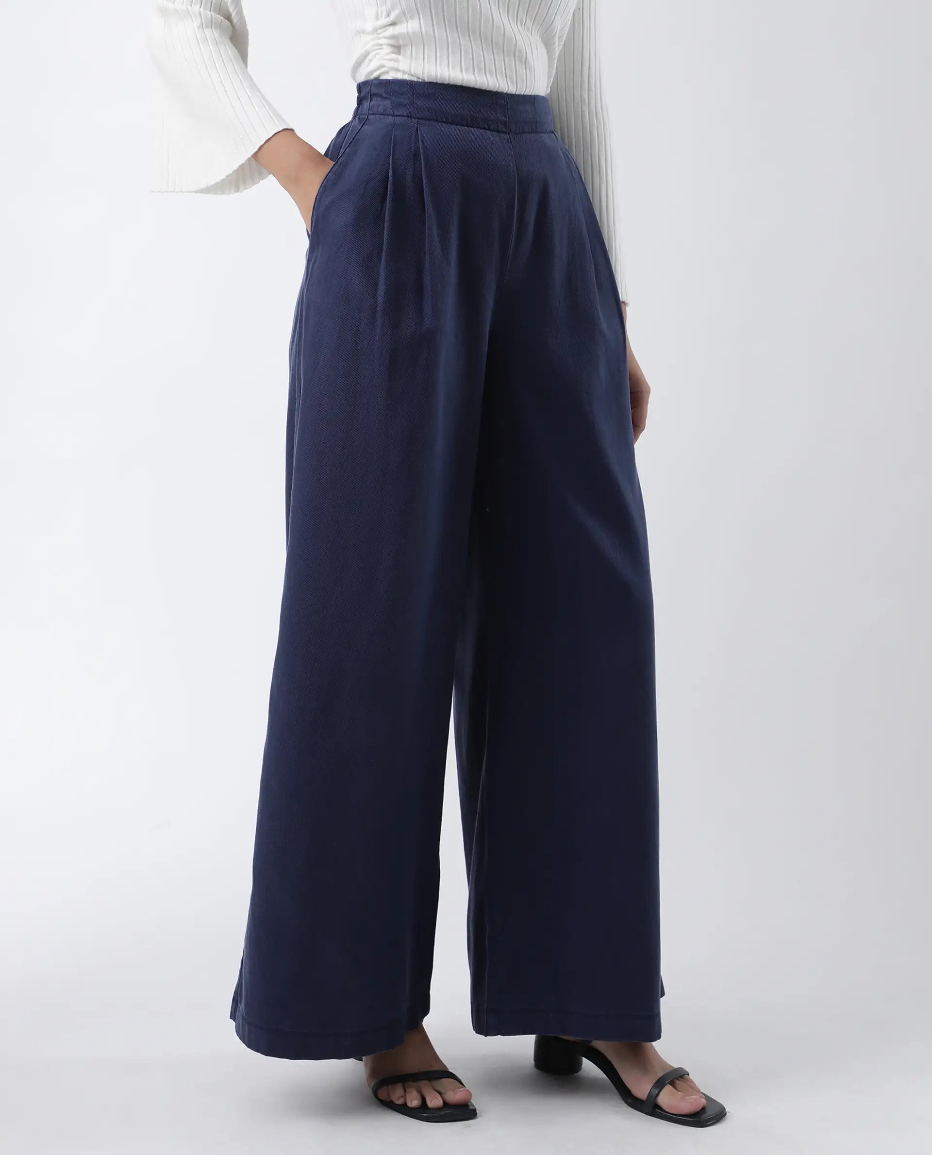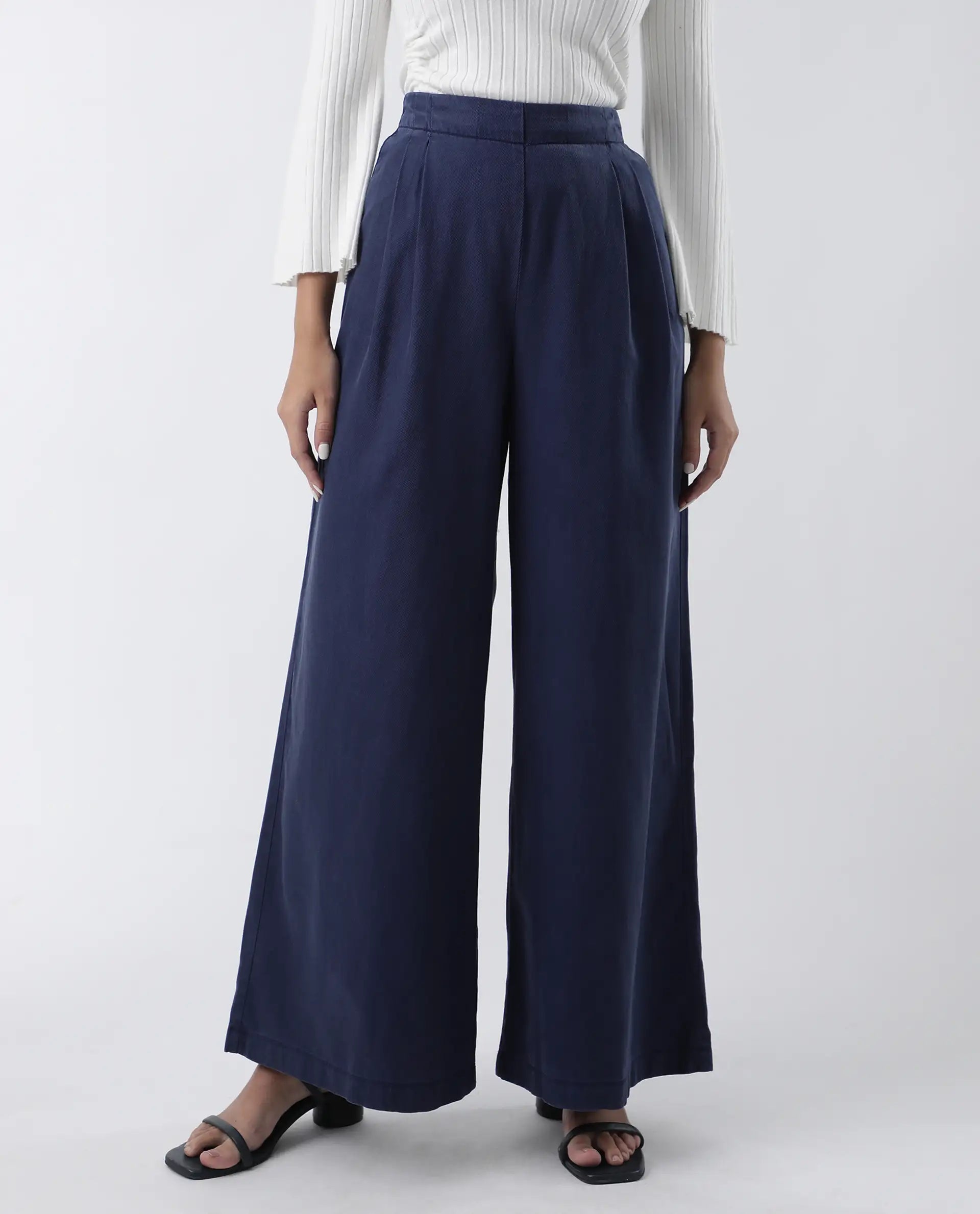 Expertly designed with a blend of 58% Tencel and 42% cotton fabric, the Rareism Bhanella-B Navy Trouser offers both style and comfort. Its zipper closure and ankle length make it a convenient addition to any wardrobe. The flared cut adds a touch of elegance to this plain trouser.