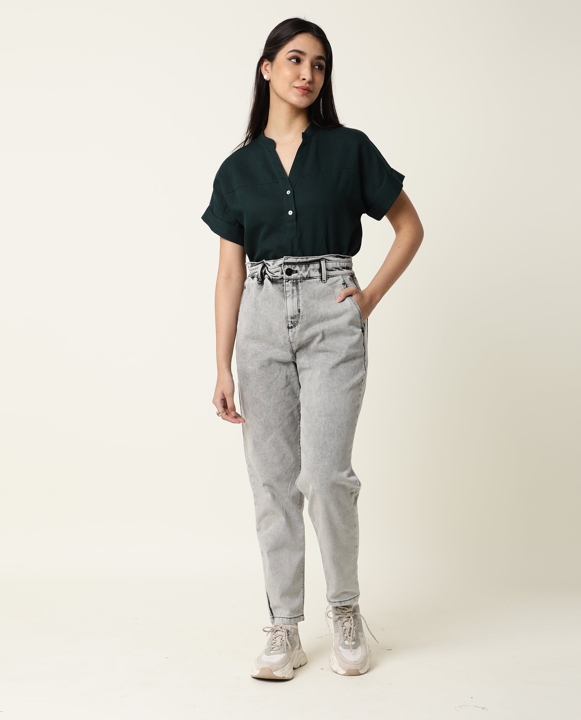 Rareism Women's Birdwing Black Cotton Blend Plain Ankle Length Tailored Jeans