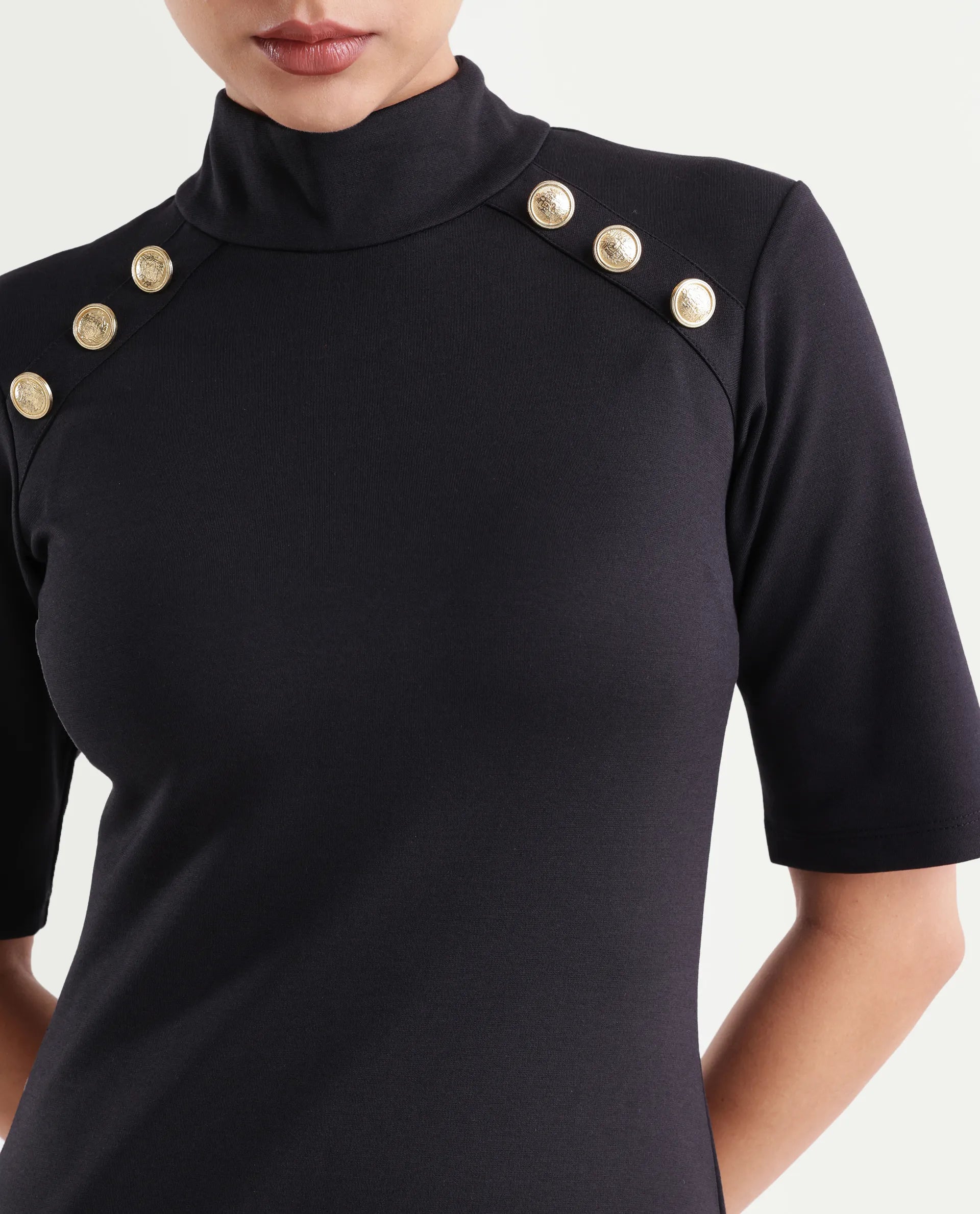 Discover the perfect blend of sophistication and style with our elegant black slim fit dress. Crafted from a premium cotton blend, this dress offers a flattering silhouette for any occasion. The chic button detailing adds a touch of elegance, making it a versatile addition to your wardrobe. Ideal for both formal and casual settings, this dress ensures you look effortlessly stylish.