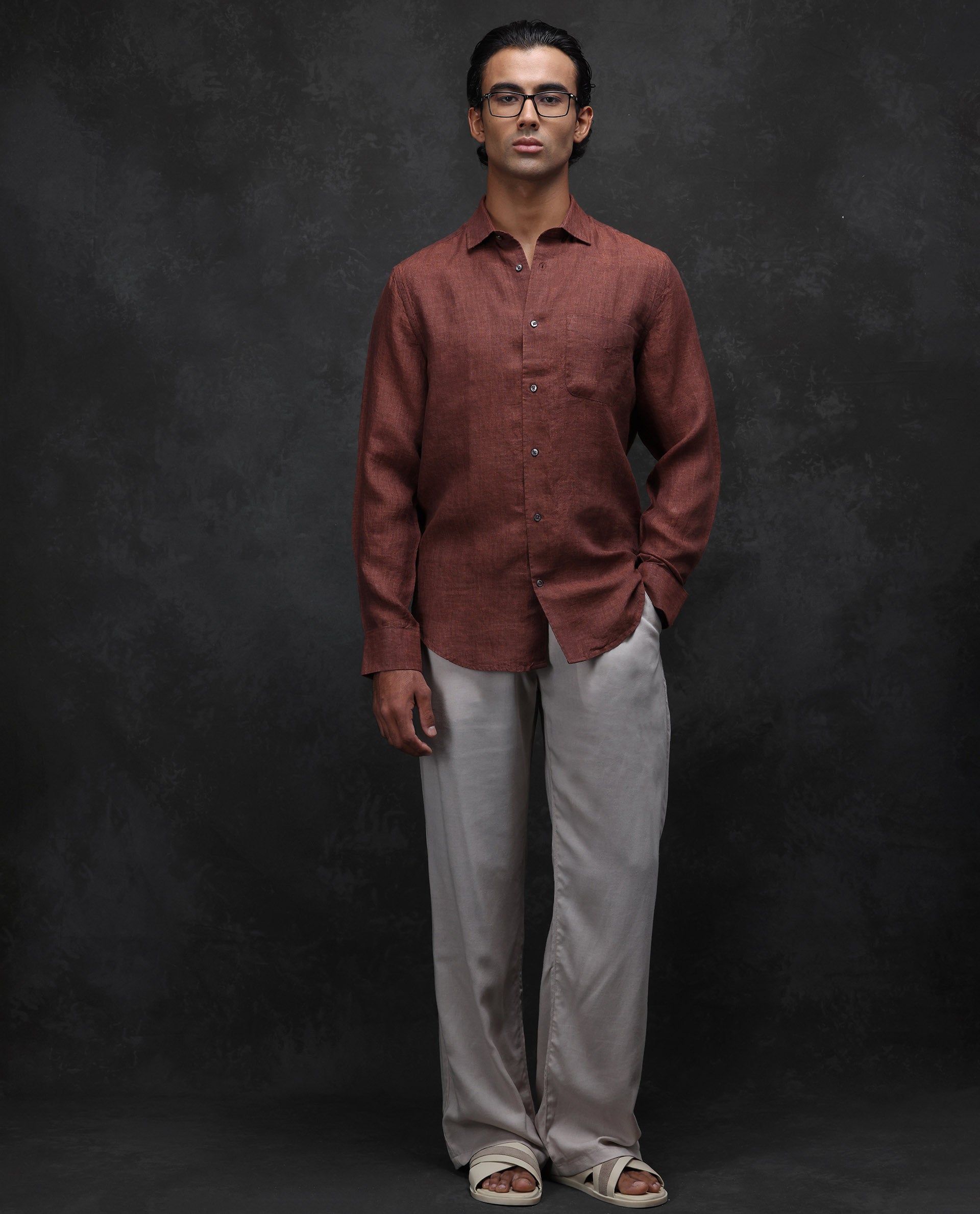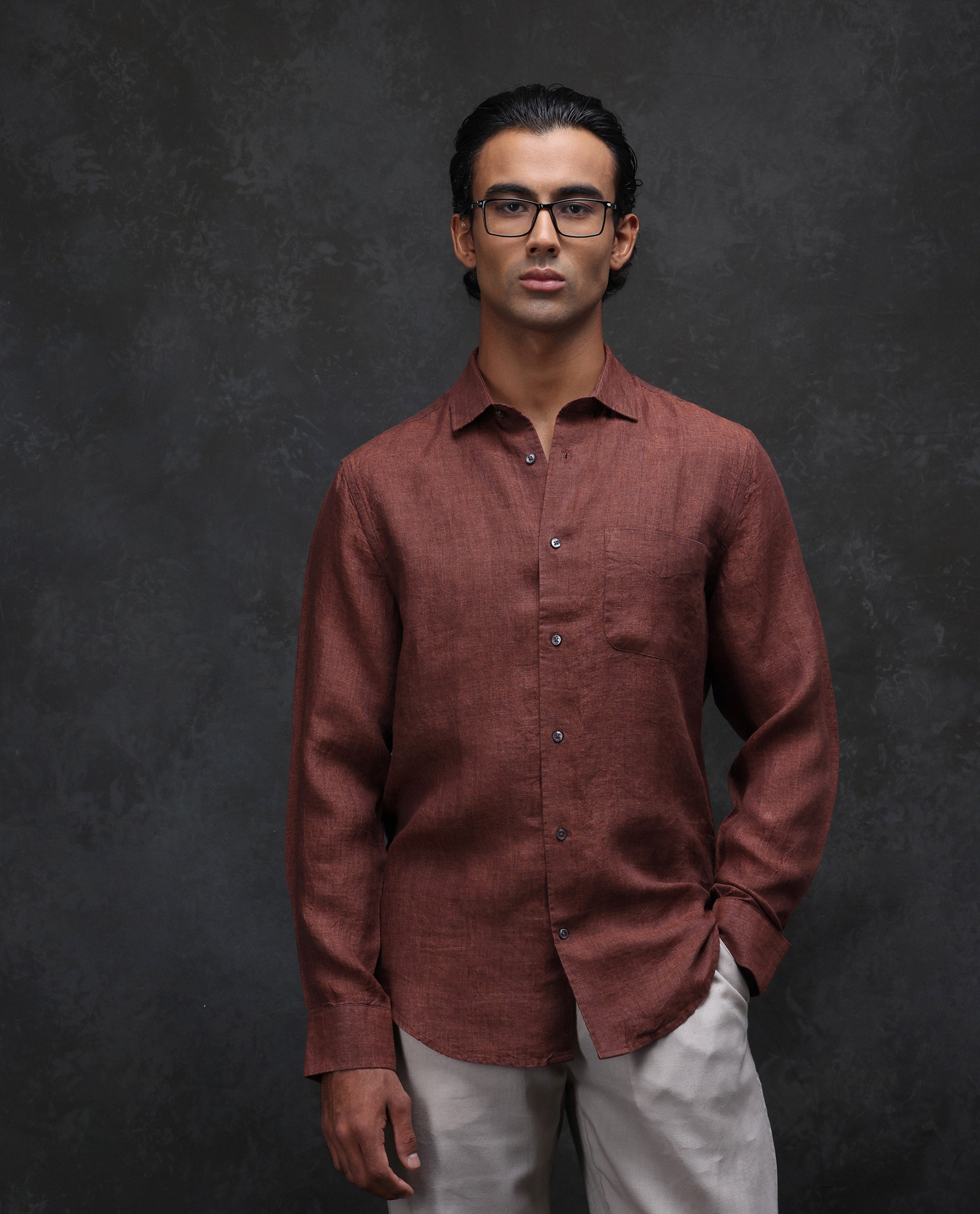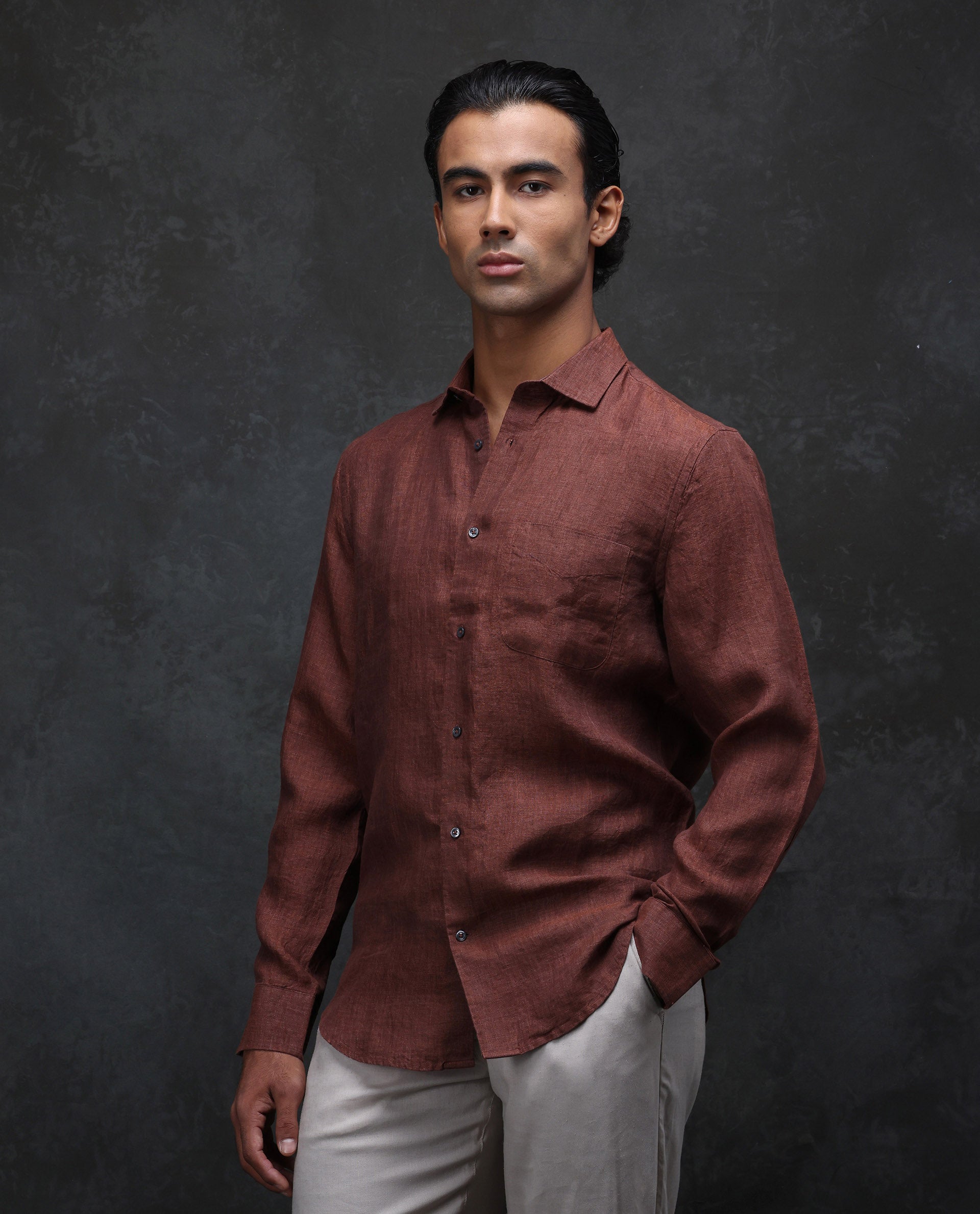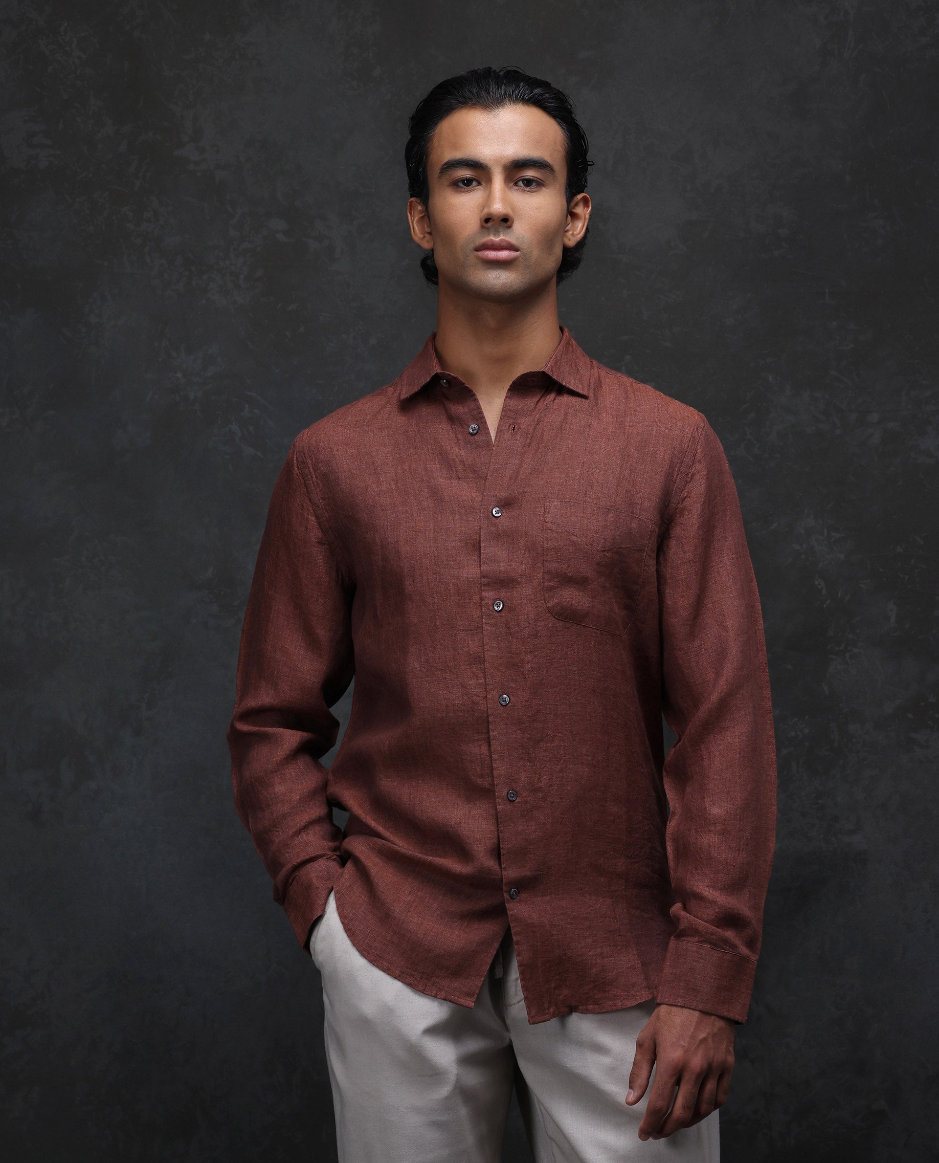 This mens shirt from RARE RABBIT carries a contemporary and minimal charm. Its neat styling keeps the outfit looking fresh and composed. A reliable pick for someone who prefers a soft, modern aesthetic.