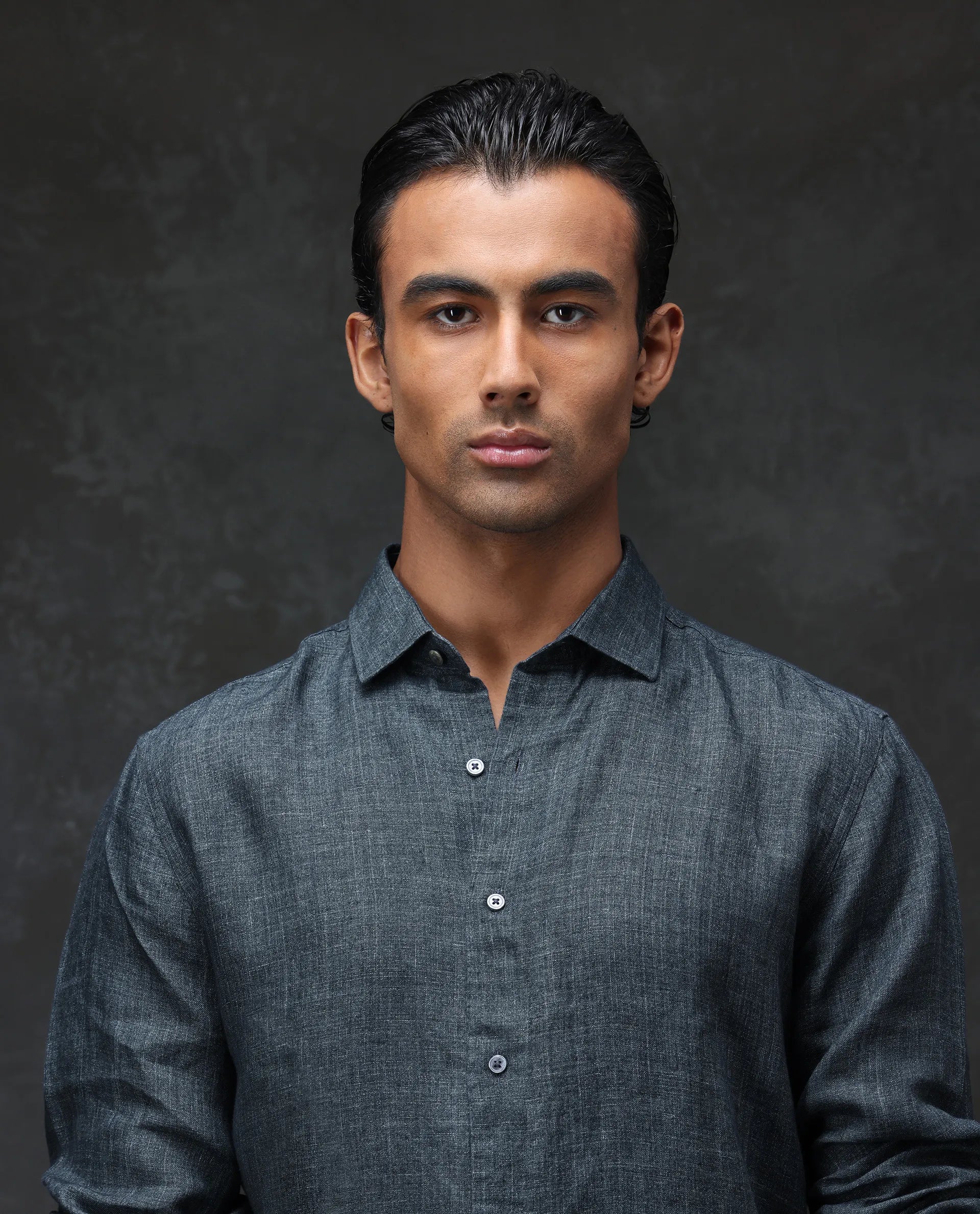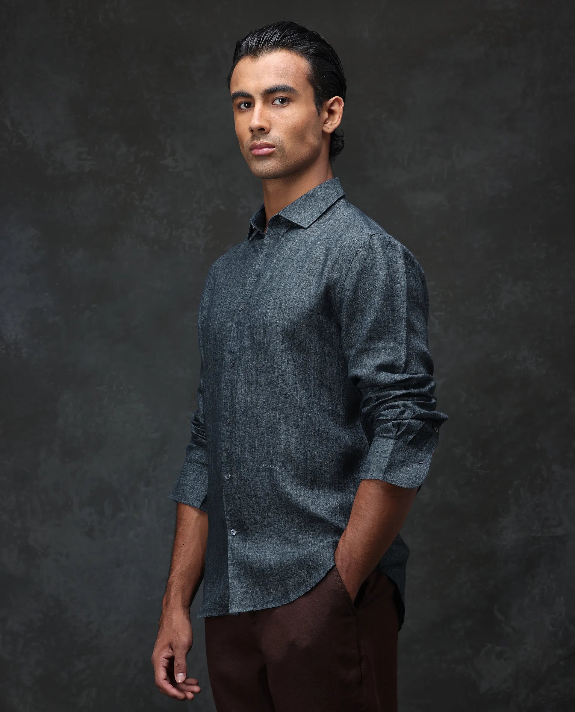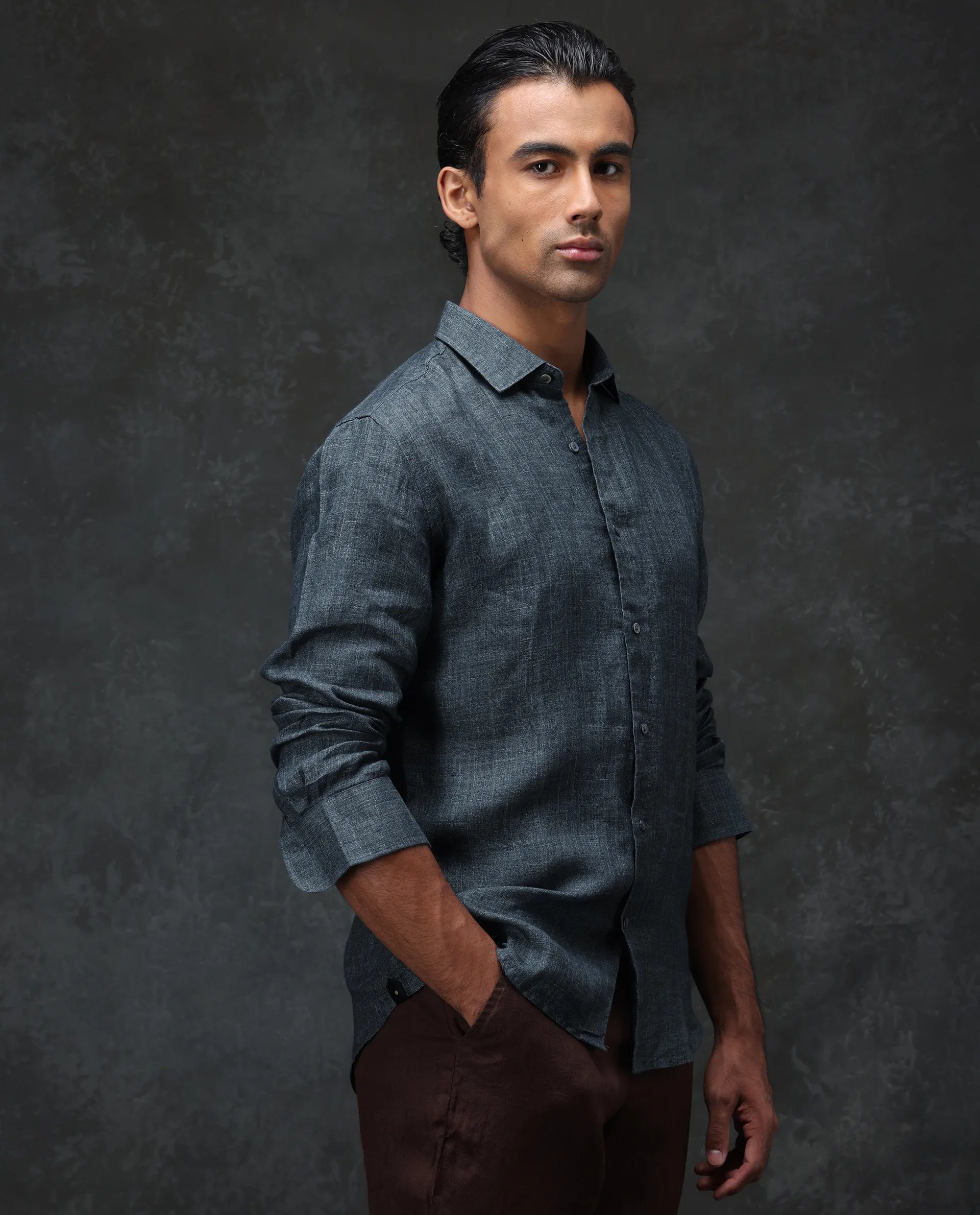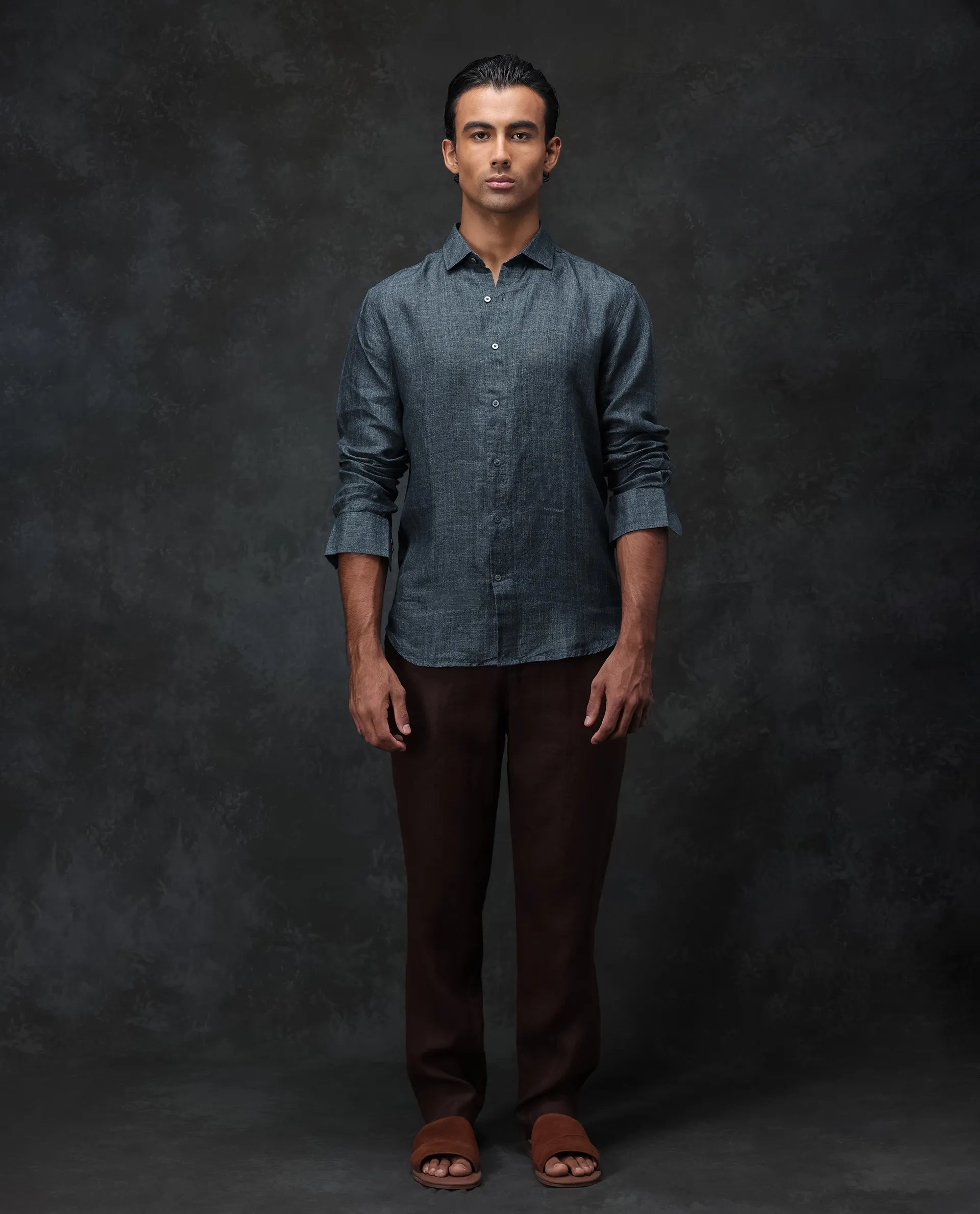 - Delave milange dyed 100% Linen shirt with regular collar and curved hem