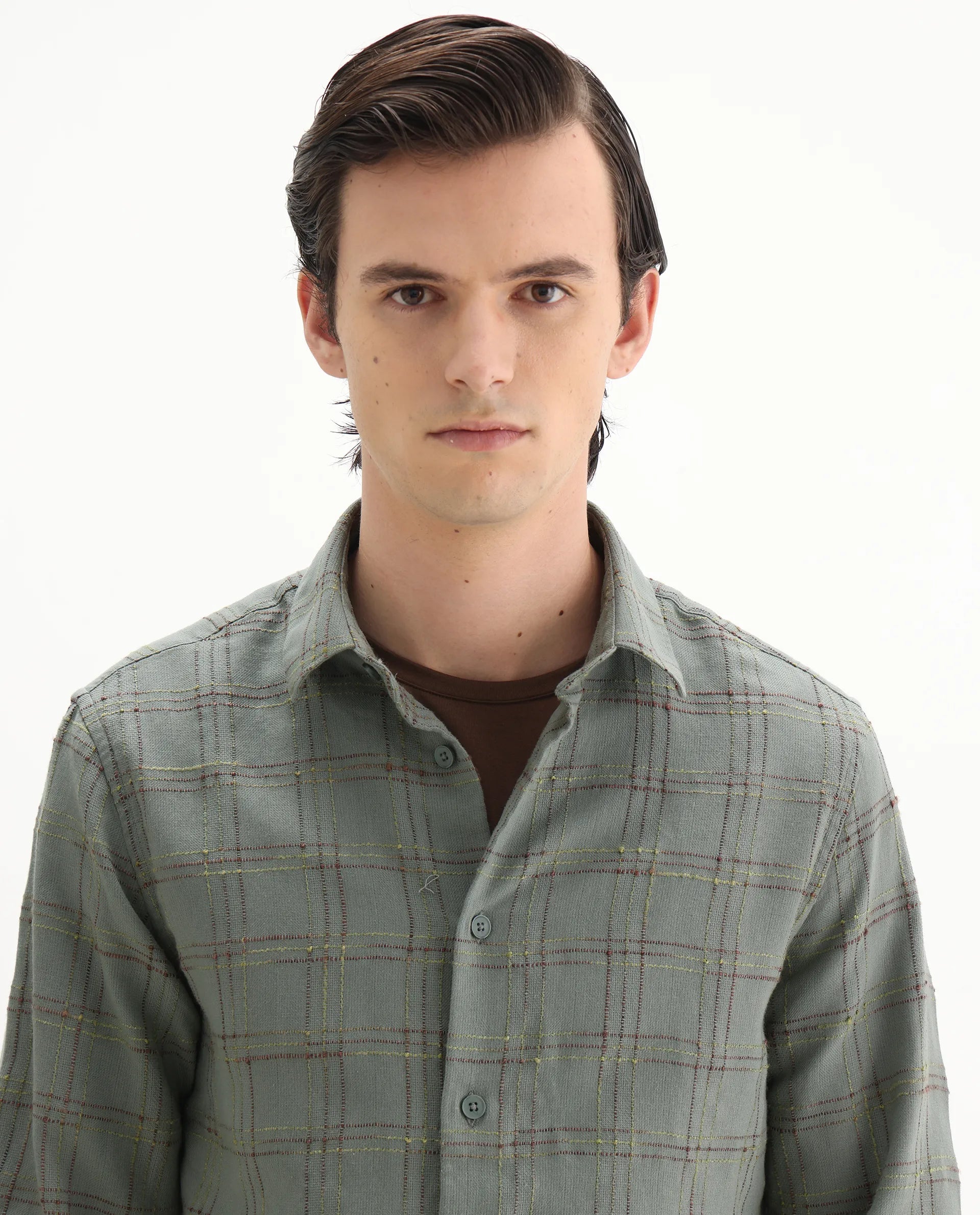 This mens shirt from RARE RABBIT carries a contemporary and minimal charm. Its neat styling keeps the outfit looking fresh and composed. A reliable pick for someone who prefers a soft, modern aesthetic.