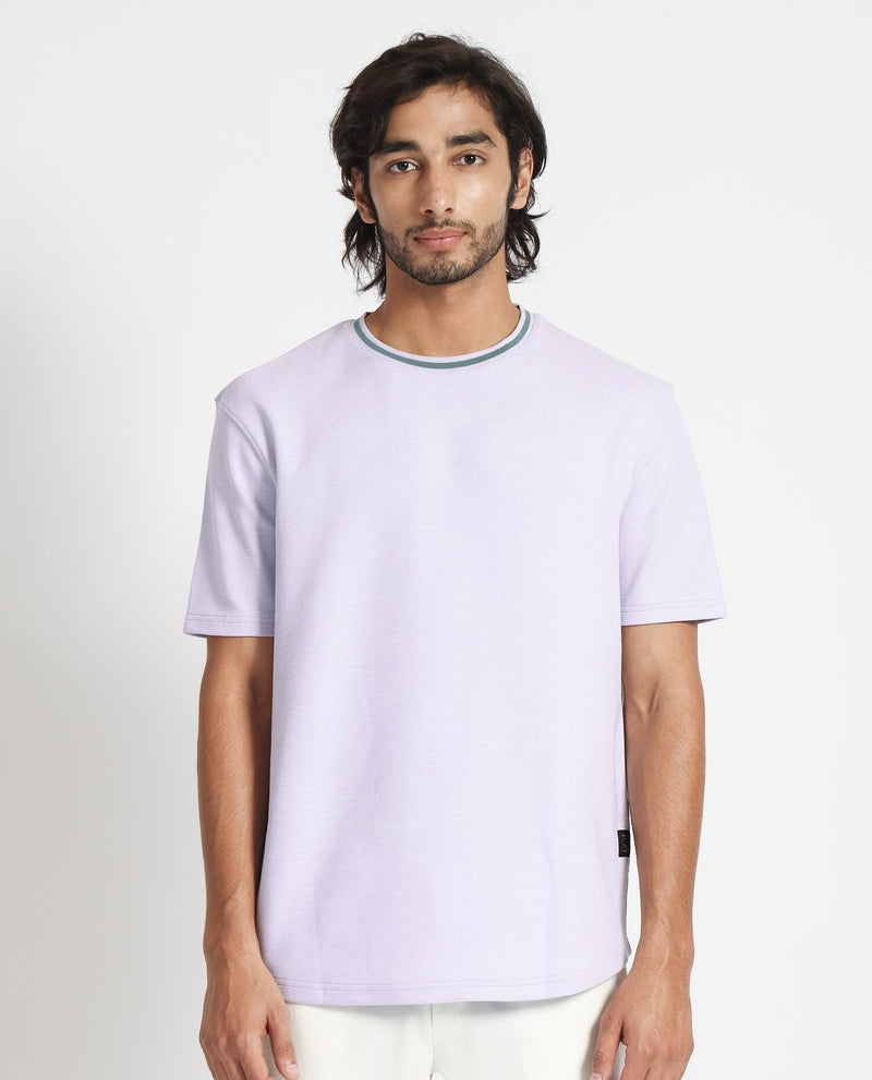 This mens t-shirt from RARE RABBIT carries a contemporary and minimal charm. Its neat styling keeps the outfit looking fresh and composed. A reliable pick for someone who prefers a soft, modern aesthetic.