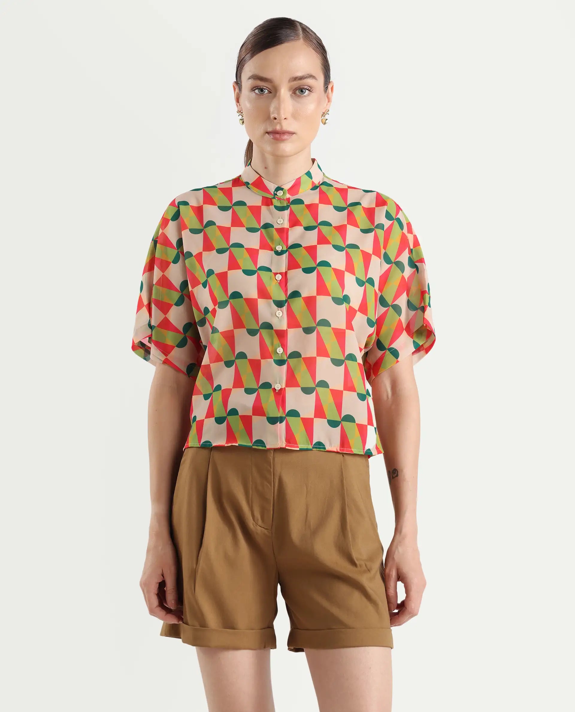 GEOMETRIC PRINT RELAXED FIT SHRUG