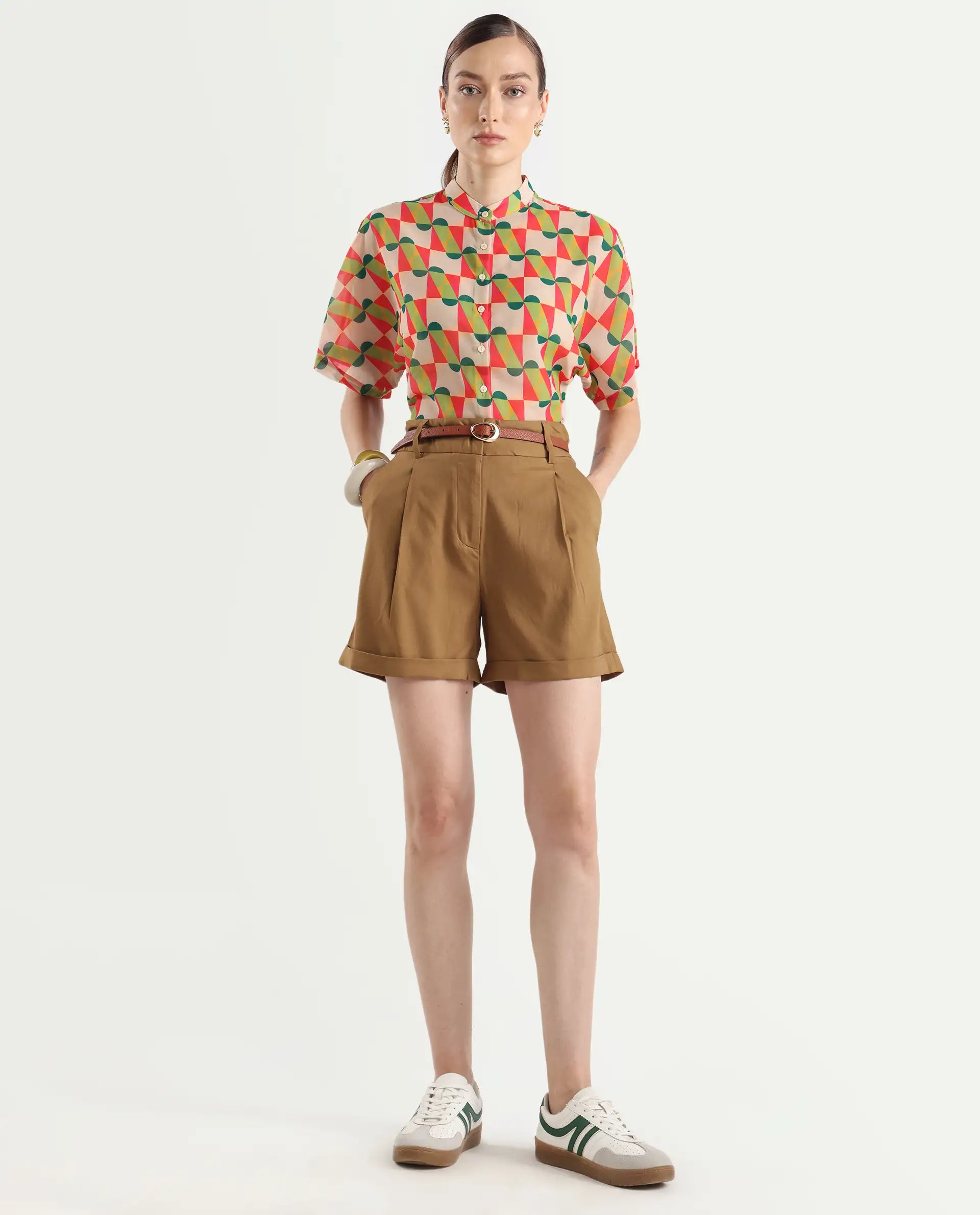 1. Bold Geometric Print: Features a unique design that adds flair and personality to any outfit.