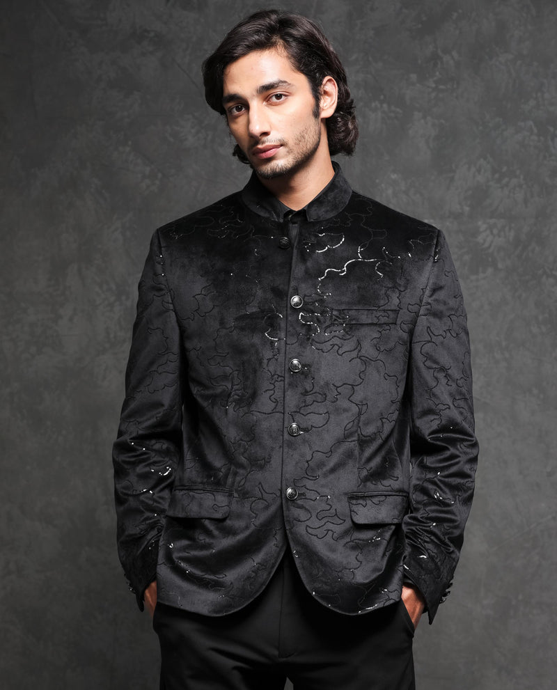 MANDARIN COLLAR EMBELLISHED BANDHGALA
