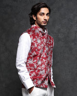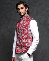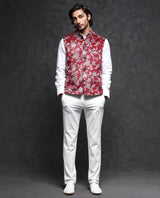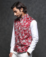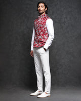 MANDARIN COLLAR FLORAL PRINT BANDHGALA
