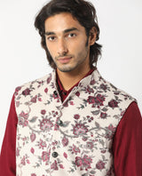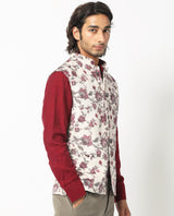 MANDARIN COLLAR FLORAL PRINT BANDHGALA