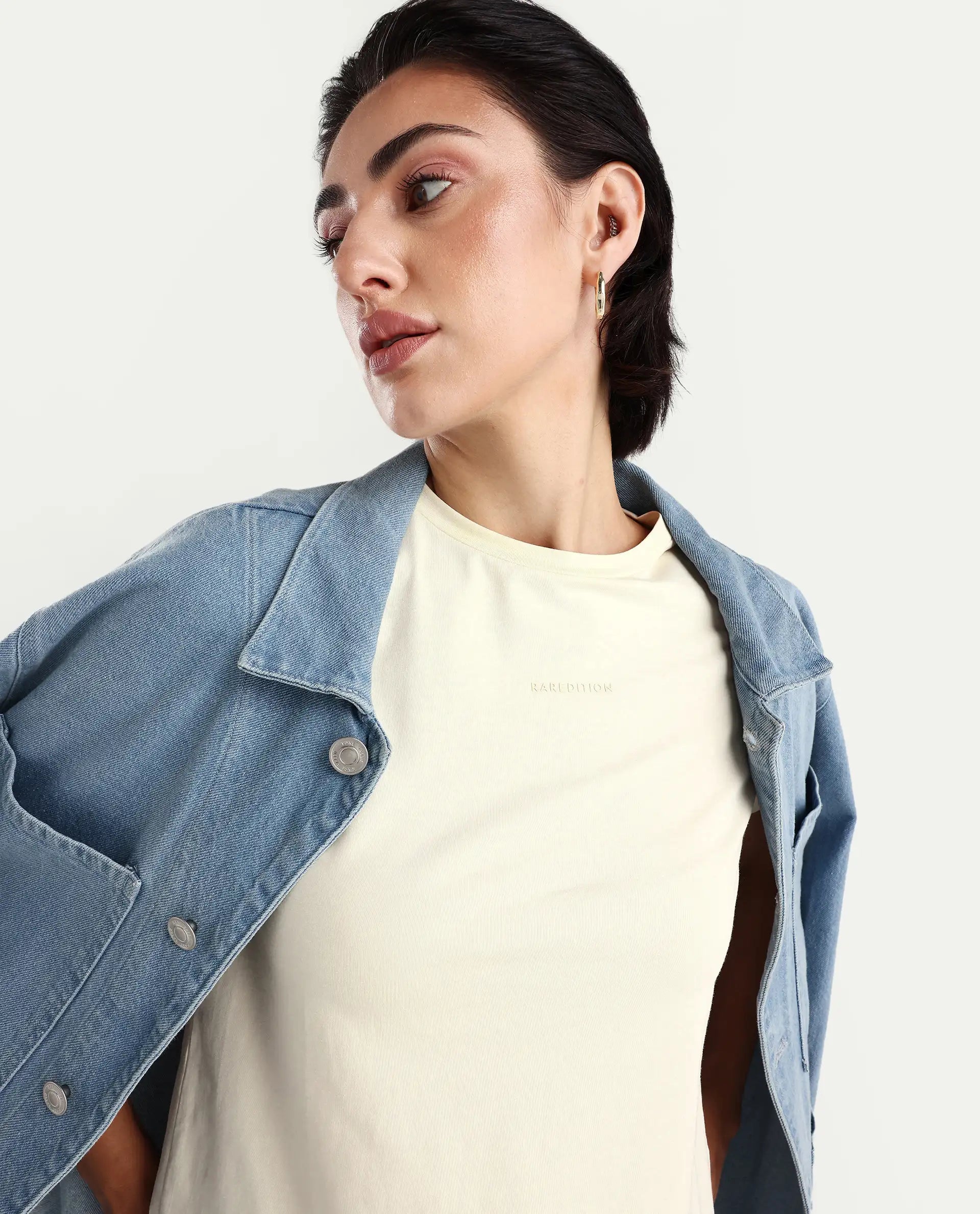 Get ready to stand out with our Rareism Carob Offwhite T-Shirt! Made from a comfy Cotton Lycra blend, this short sleeve tee features a playful print that adds a touch of fun to your wardrobe. Elevate your style game with our offbeat design.