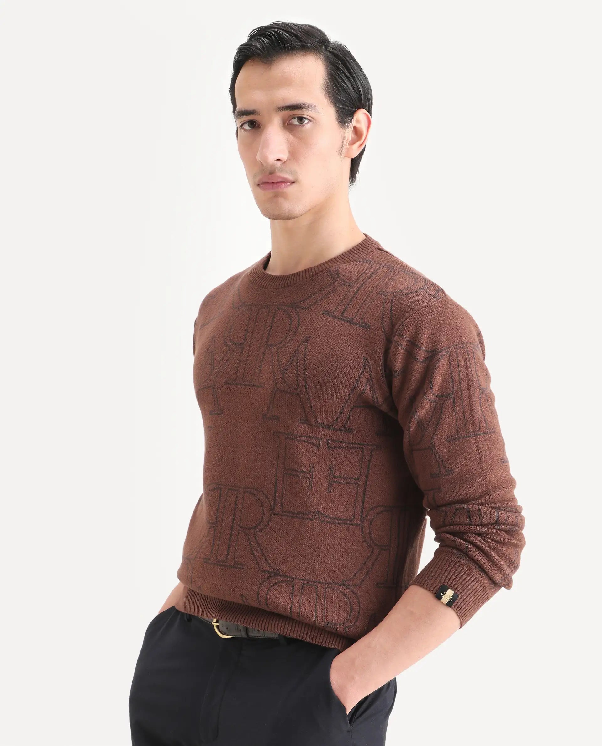 CARRIT - BROWN REGULAR FIT MONOGRAM PRINT SWEATER