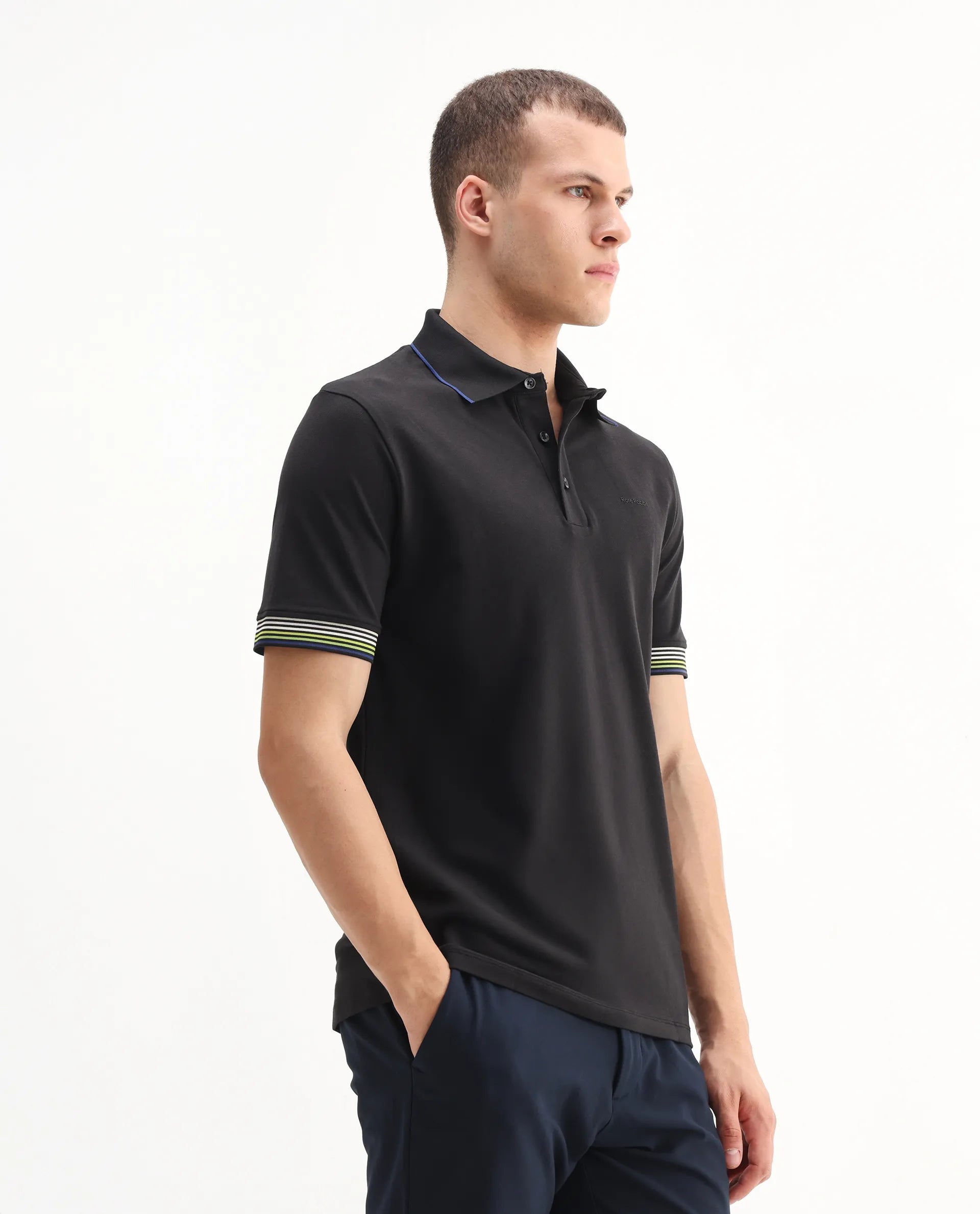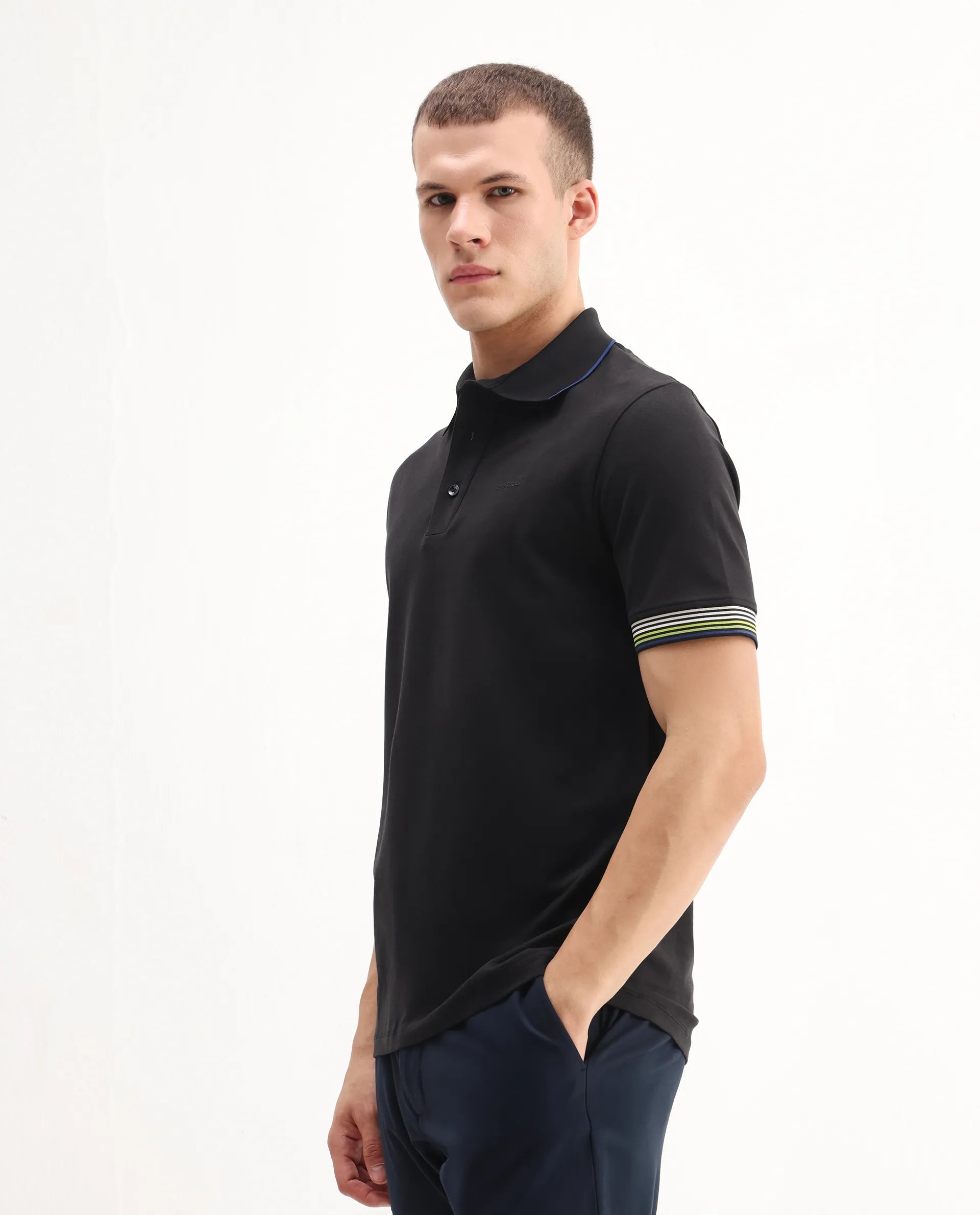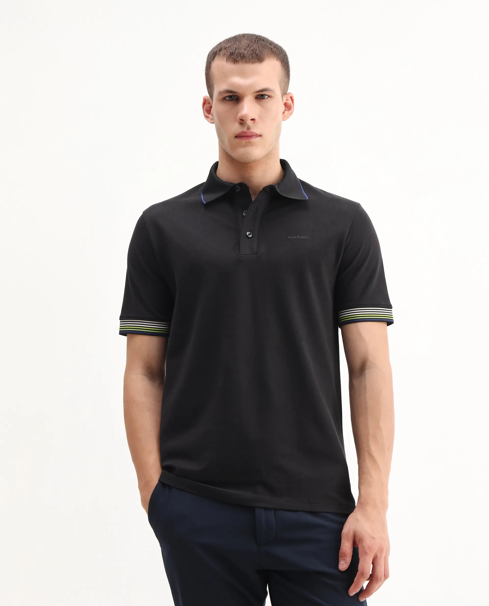 This mens polo from RARE RABBIT delivers a polished, understated look ideal for day-to-day dressing. Its smooth lines maintain a calm and collected feel. A versatile piece for those who prefer subtle styling.