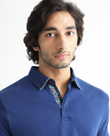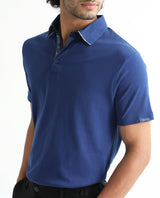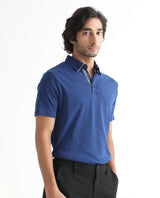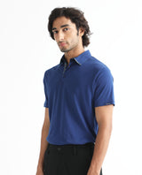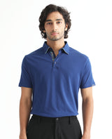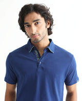 Rare Rabbit Men's Casca Dark Blue Cotton Plain Regular Fit Half Sleeve Polo