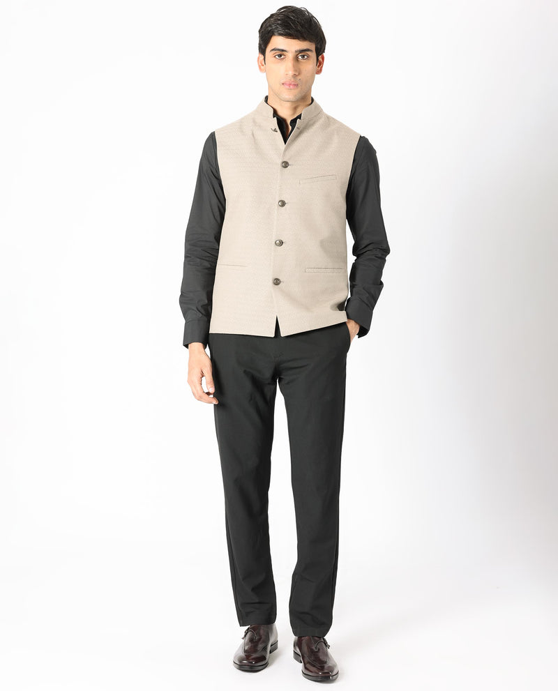 MANDARIN COLLAR JACQUARD BANDHGALA