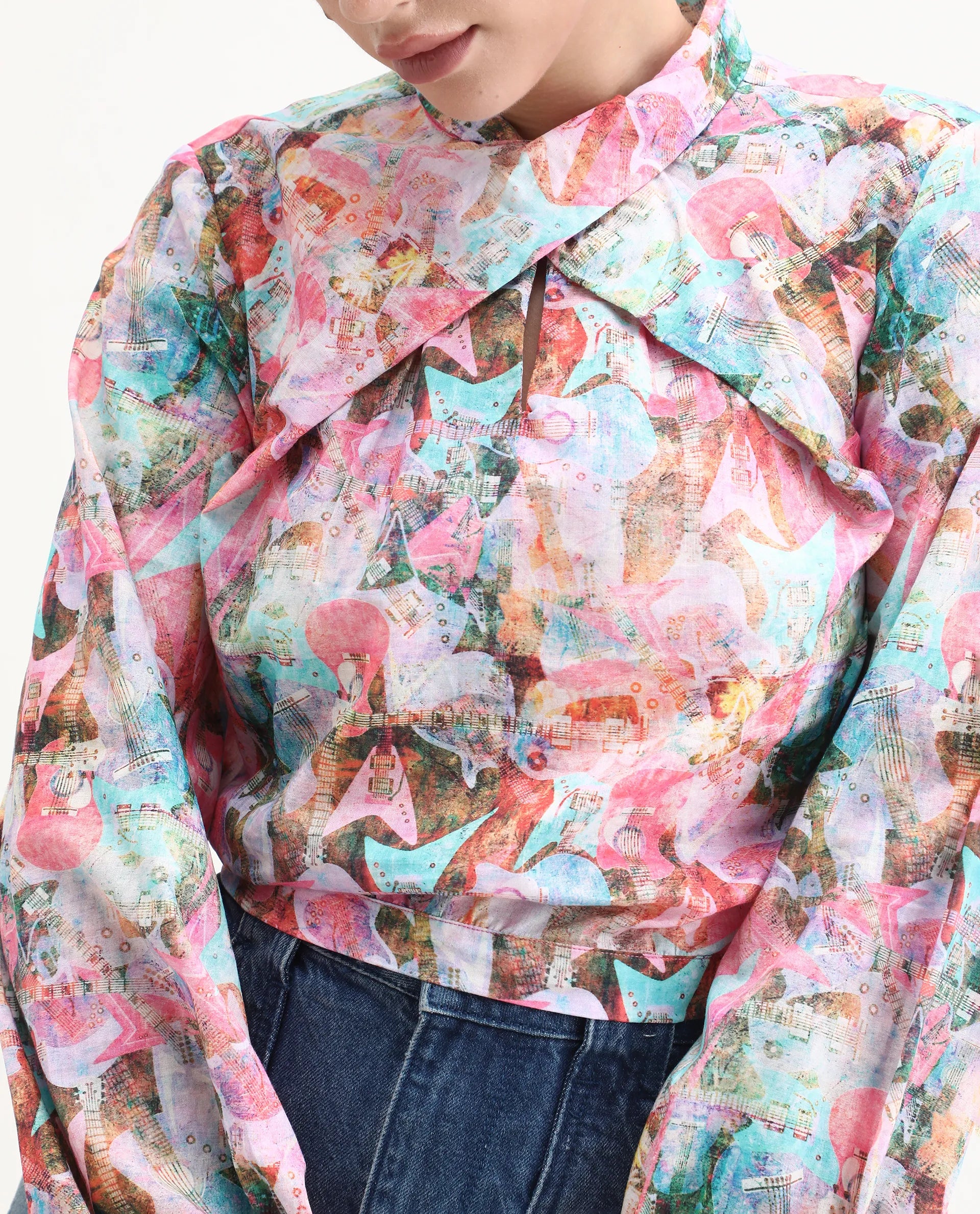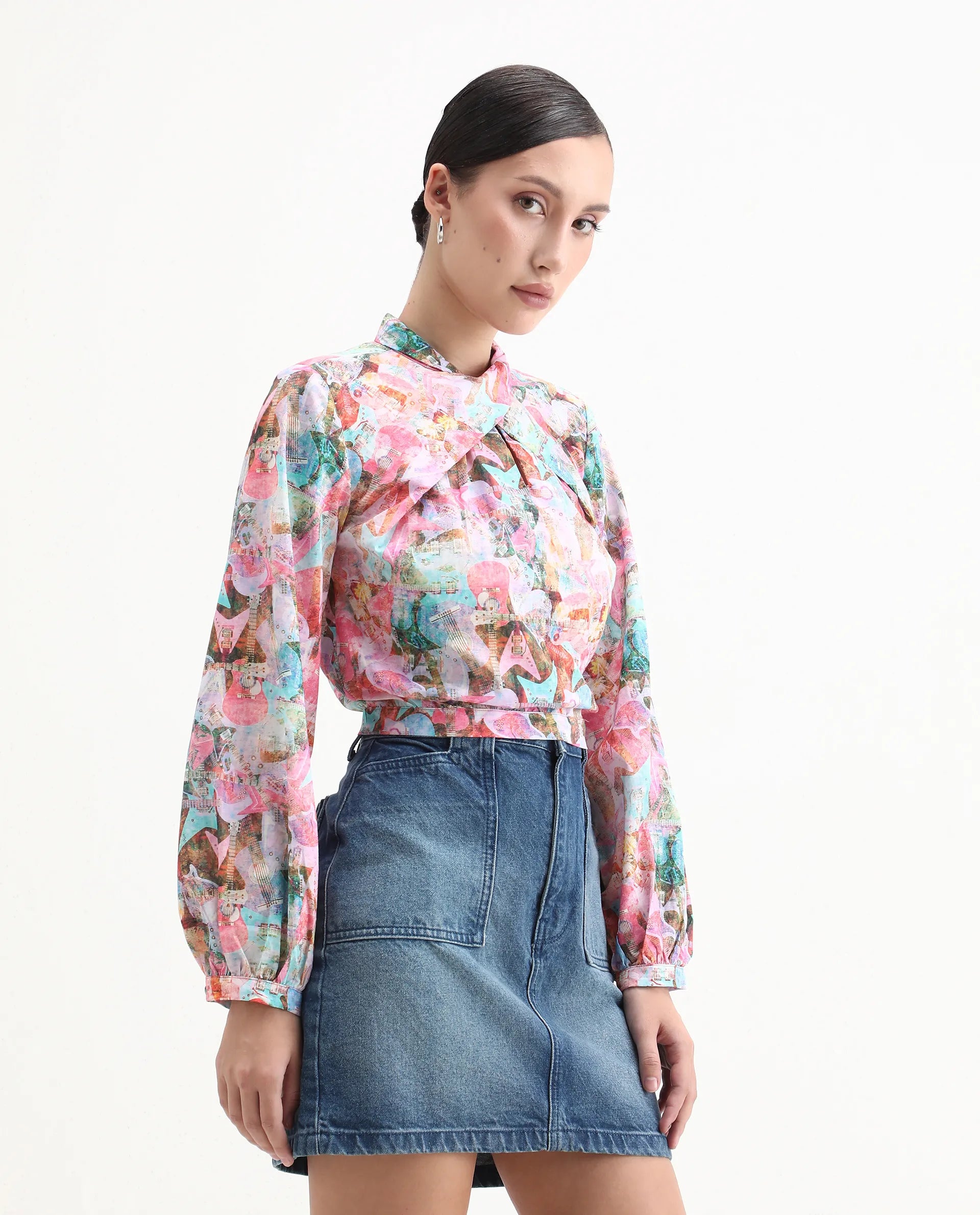 1. Bishop Sleeves: The elegant bishop sleeves add volume and sophistication, making this top a standout piece.